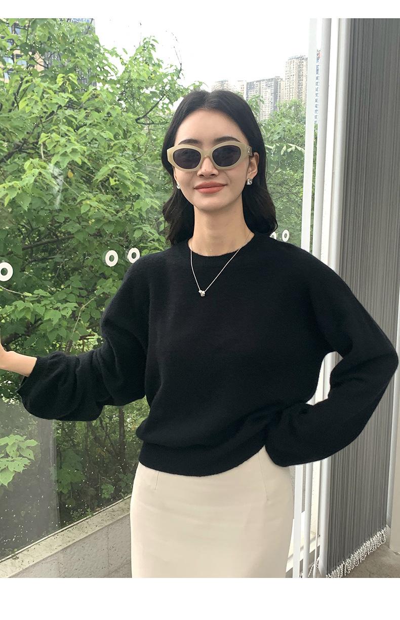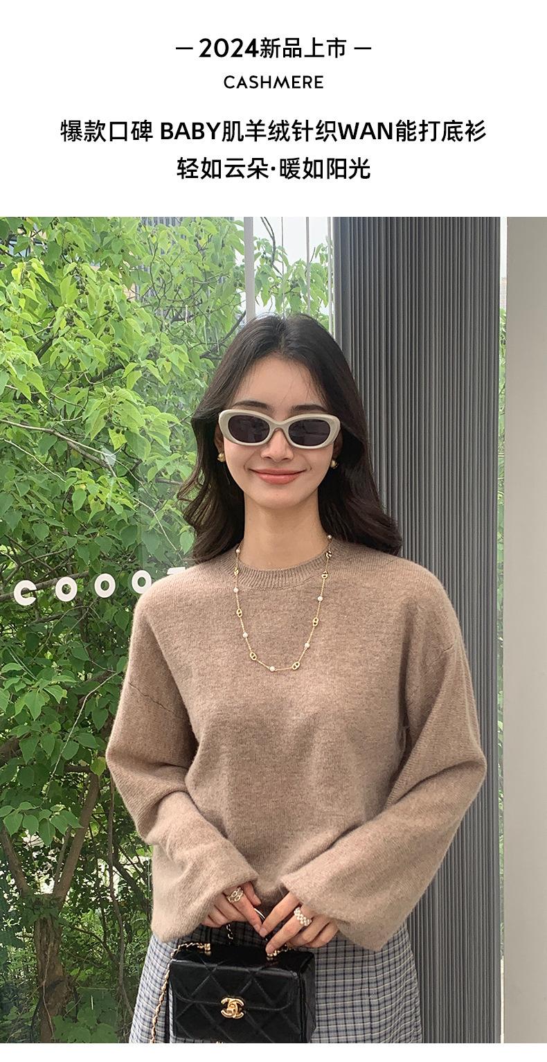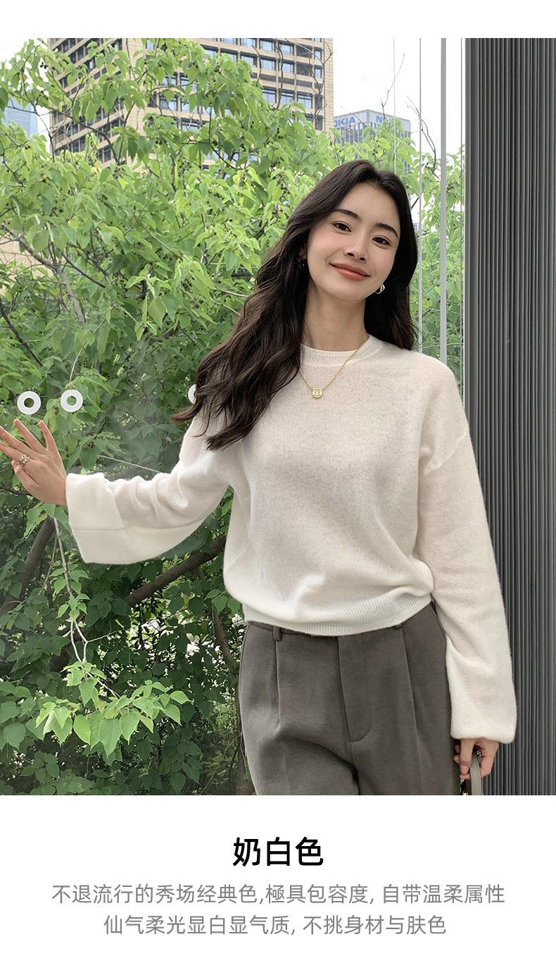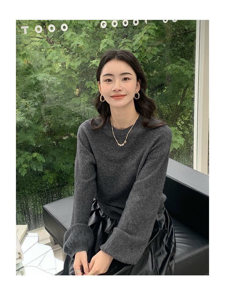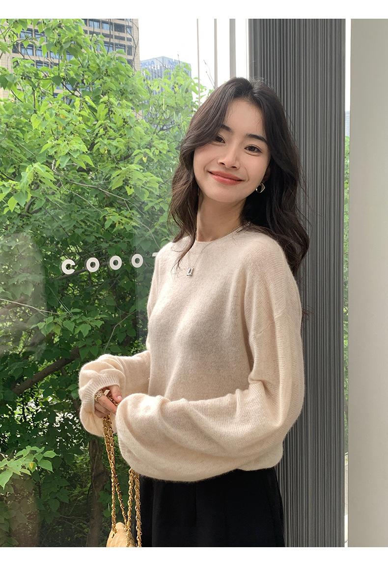 Suéter de punto de cachemira holgado con cuello redondo para mujer, suéter de otoño e invierno de color liso, jersey holgado con base de lana