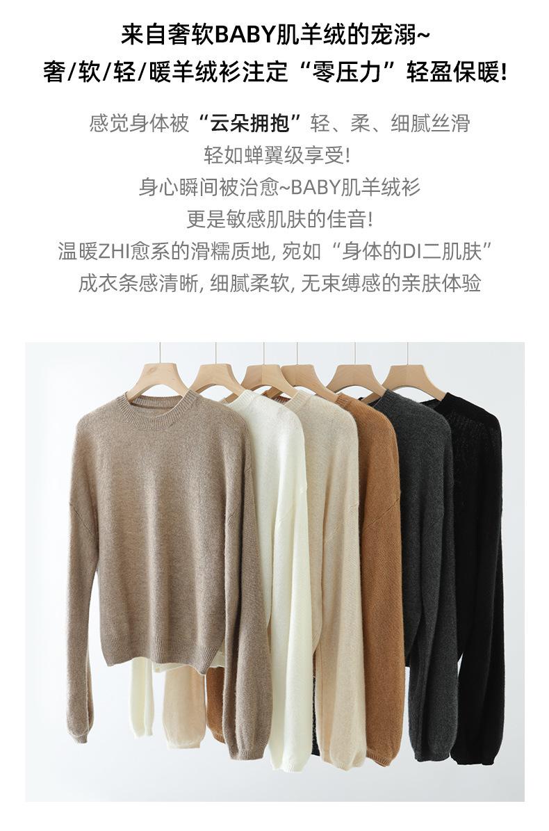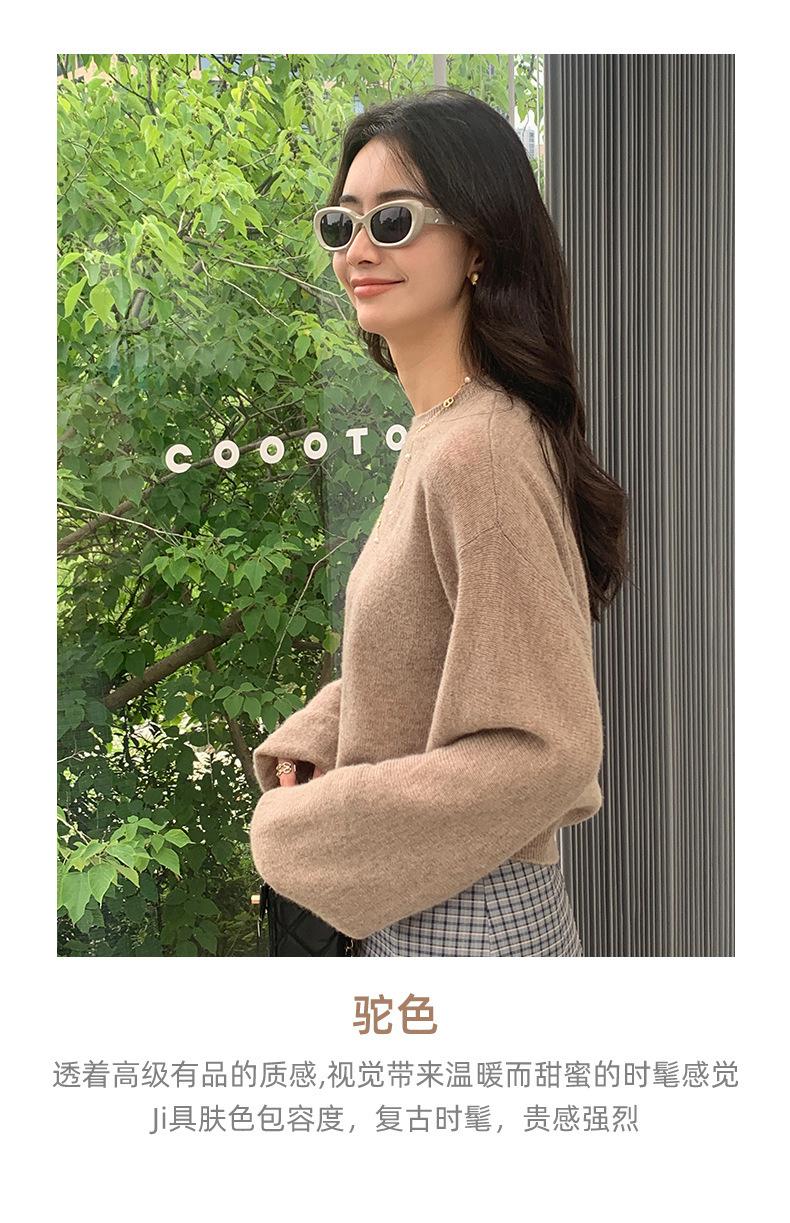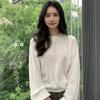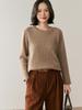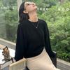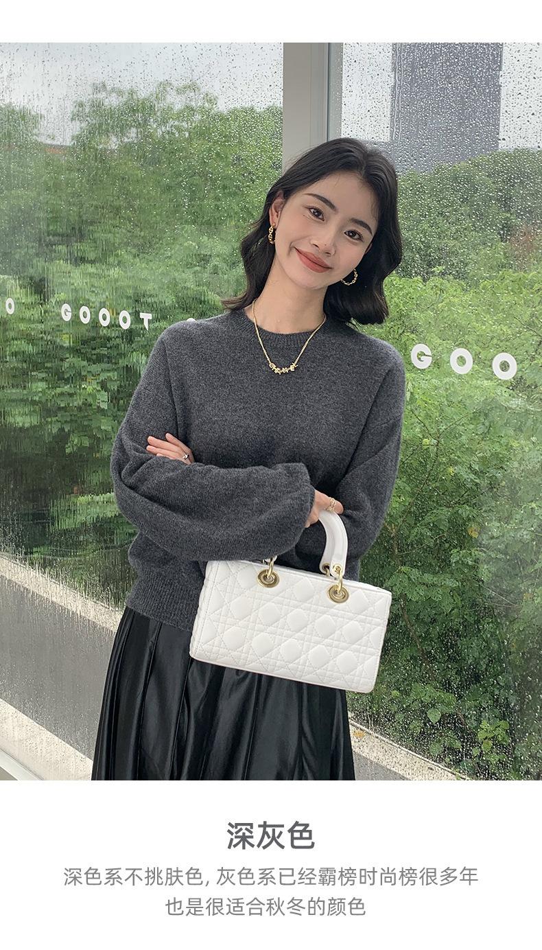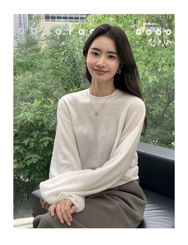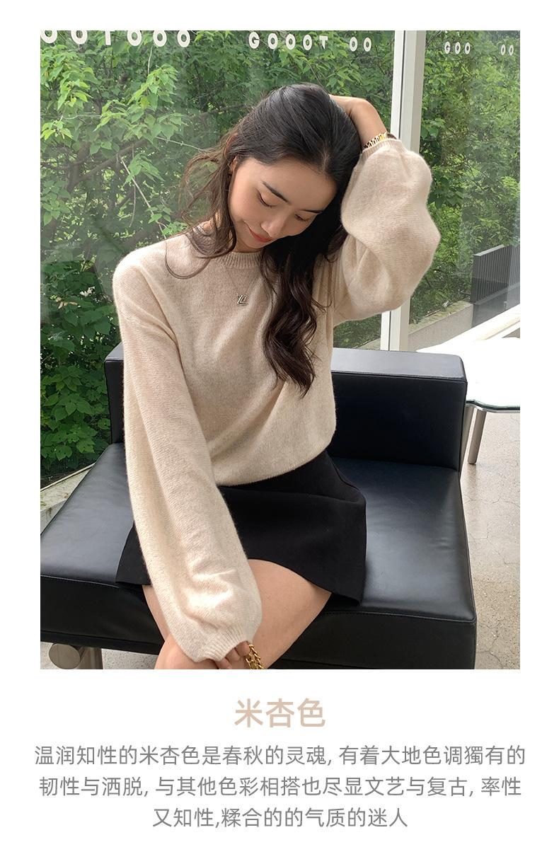 Suéter de punto de cachemira holgado con cuello redondo para mujer, suéter de otoño e invierno de color liso, jersey holgado con base de lana