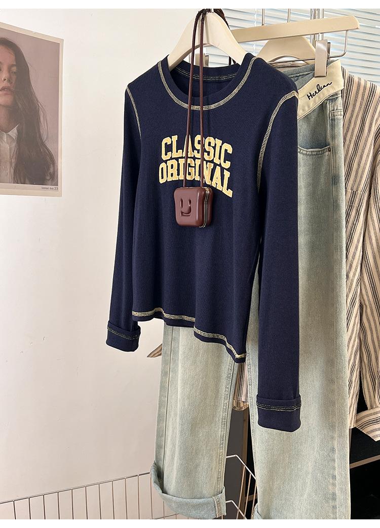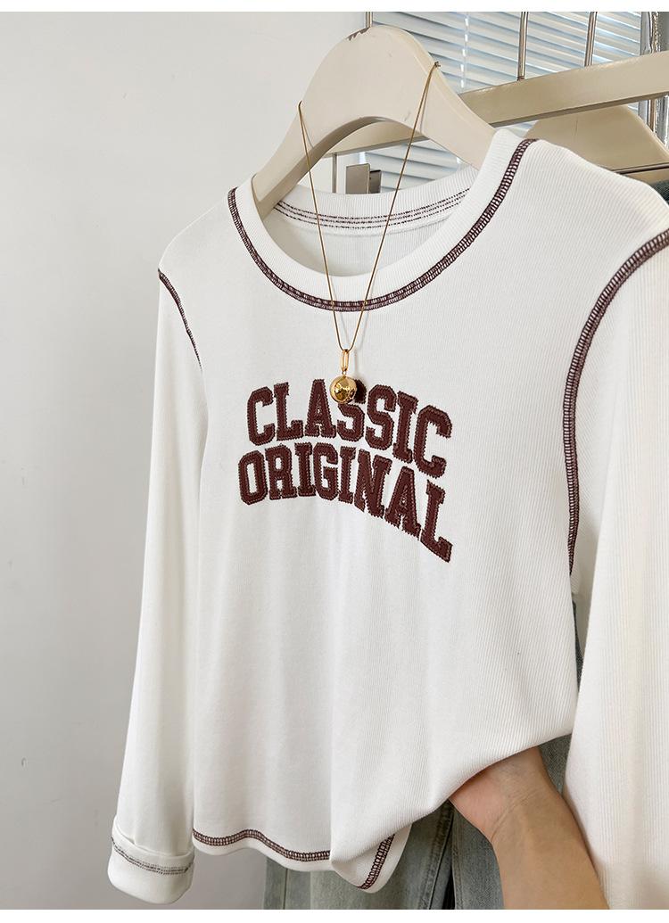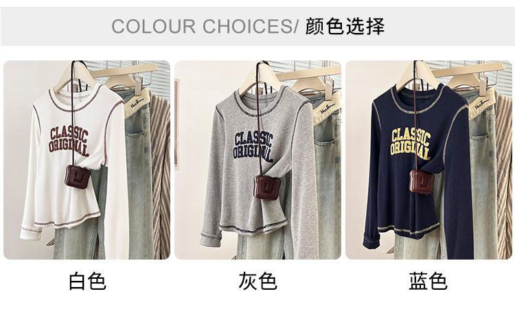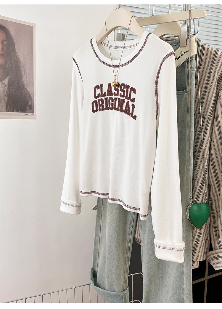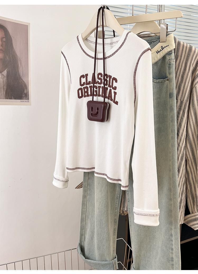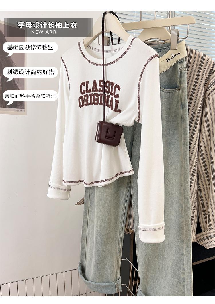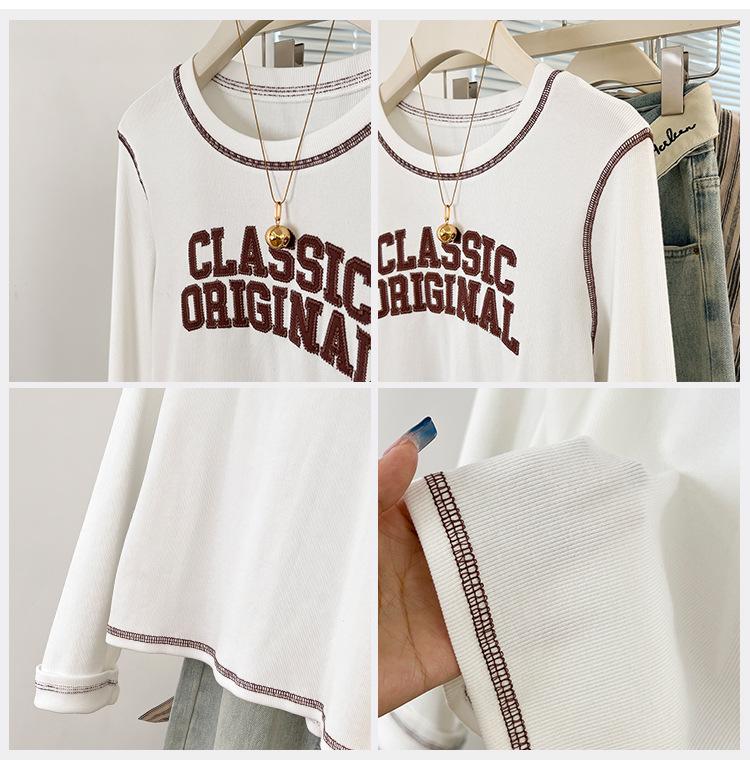 Camiseta de manga larga con estampado de letras para mujer, estilo informal, nueva moda de otoño de 2024, ropa para mujer, camiseta básica que combina con todo y que reduce la edad.