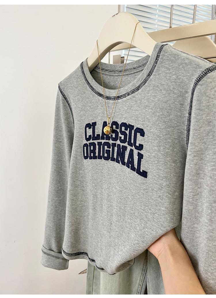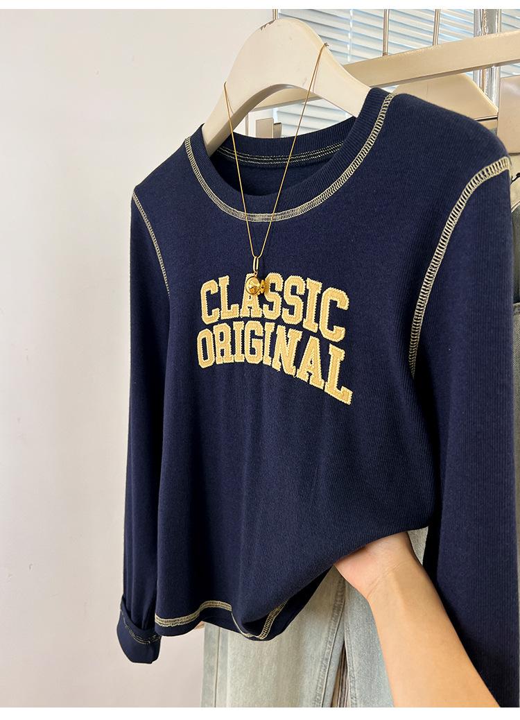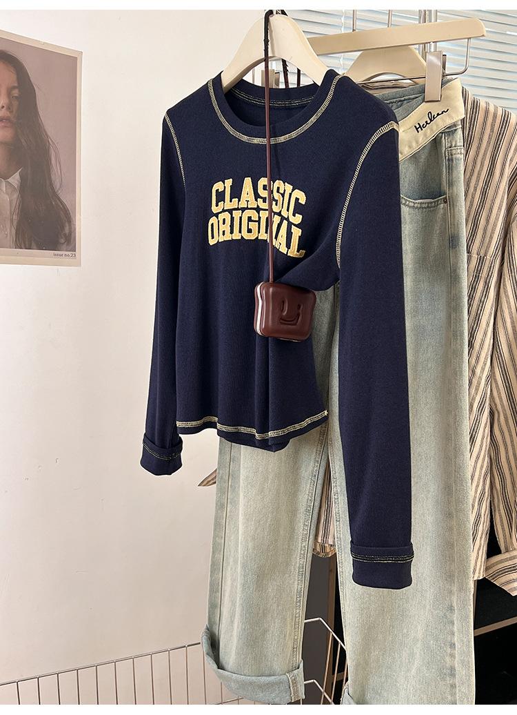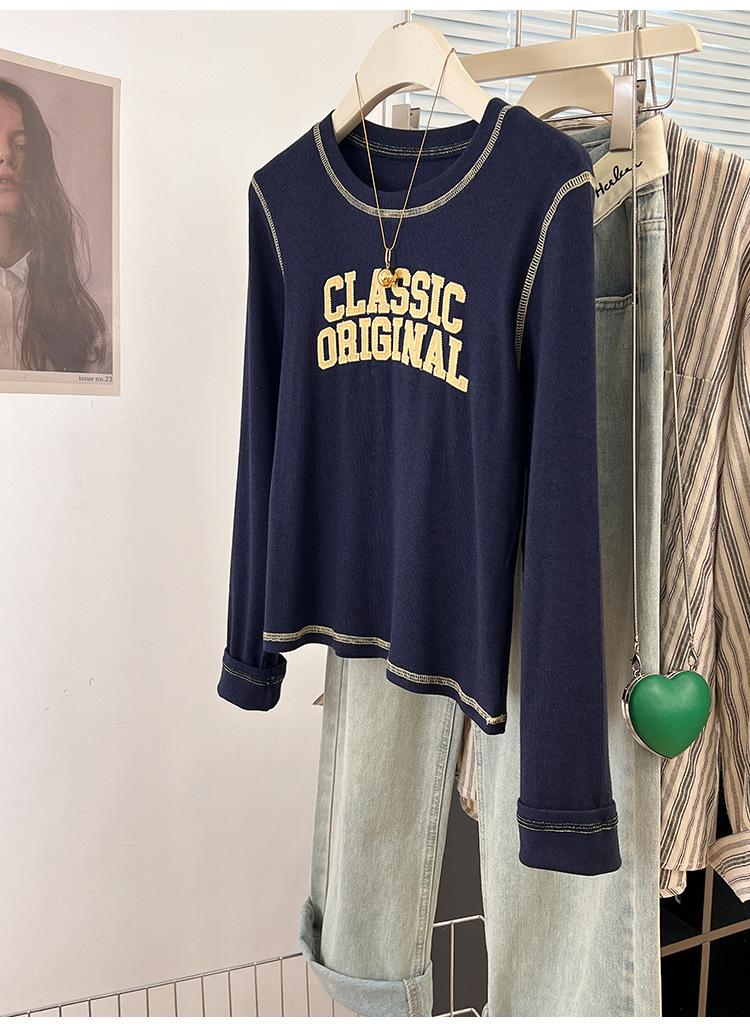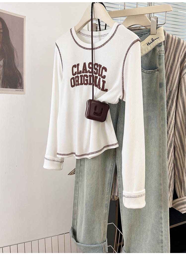 Camiseta de manga larga con estampado de letras para mujer, estilo informal, nueva moda de otoño de 2024, ropa para mujer, camiseta básica que combina con todo y que reduce la edad.