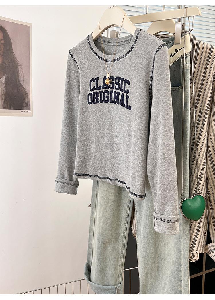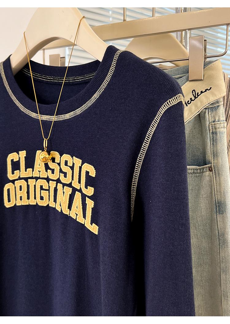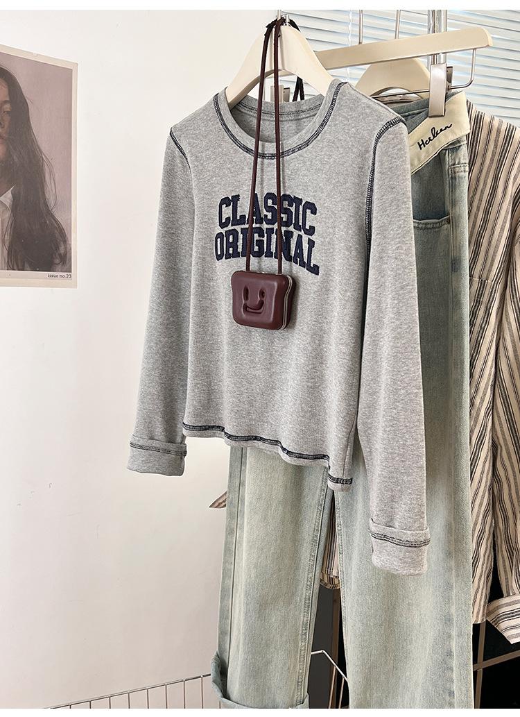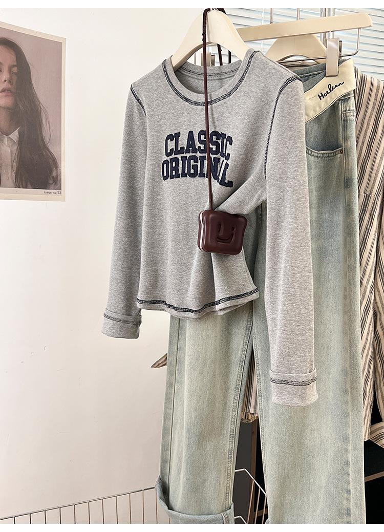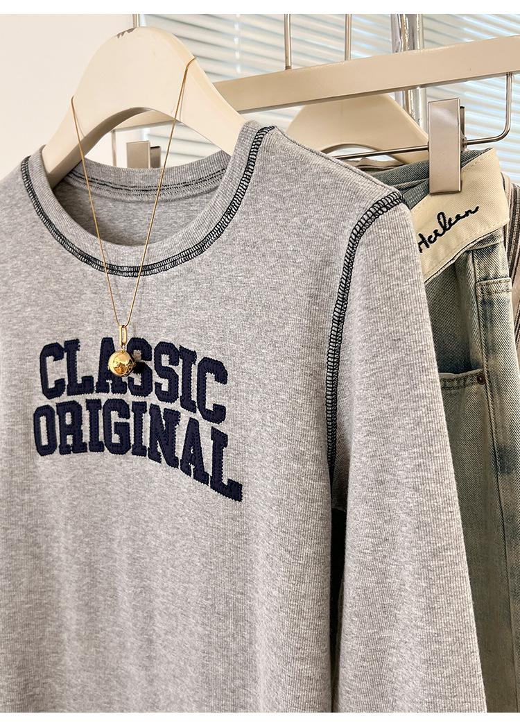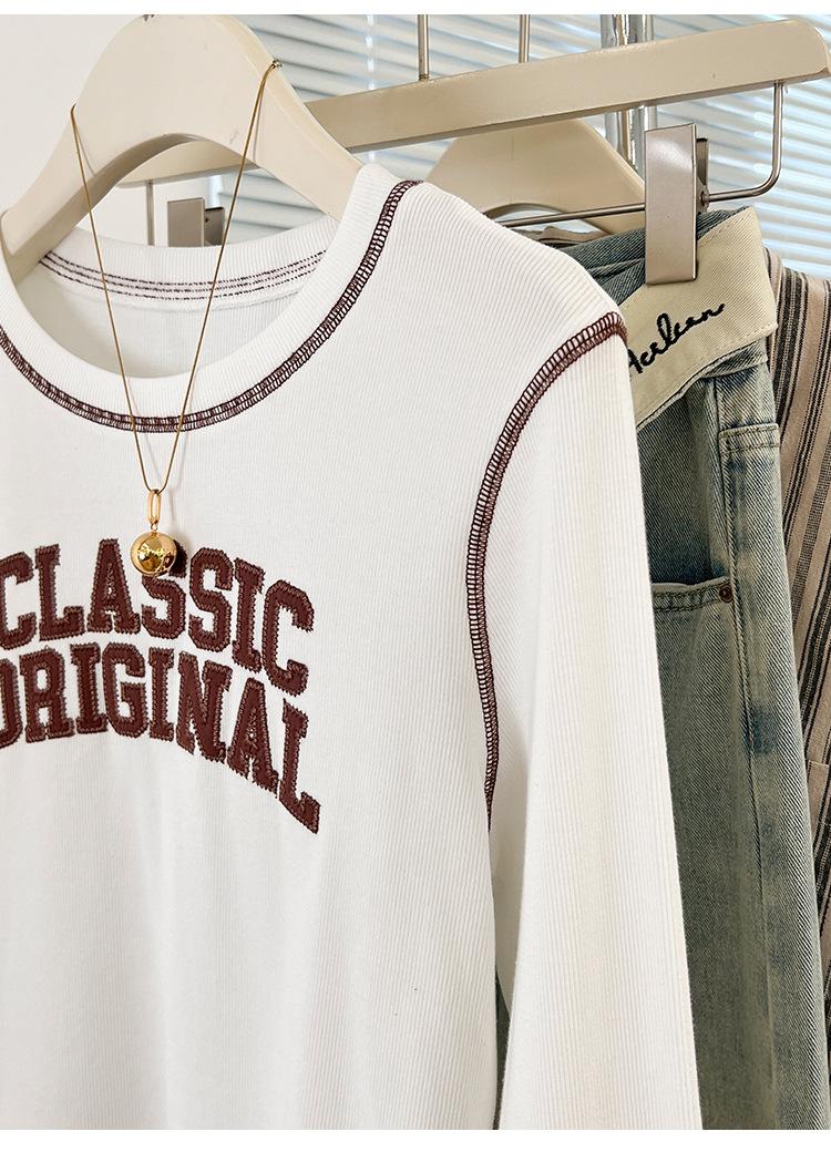Camiseta de manga larga con estampado de letras para mujer, estilo informal, nueva moda de otoño de 2024, ropa para mujer, camiseta básica que combina con todo y que reduce la edad.