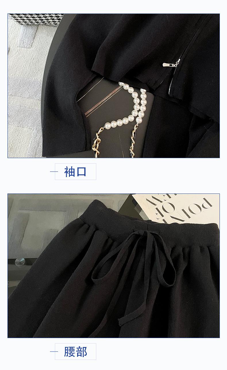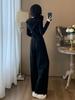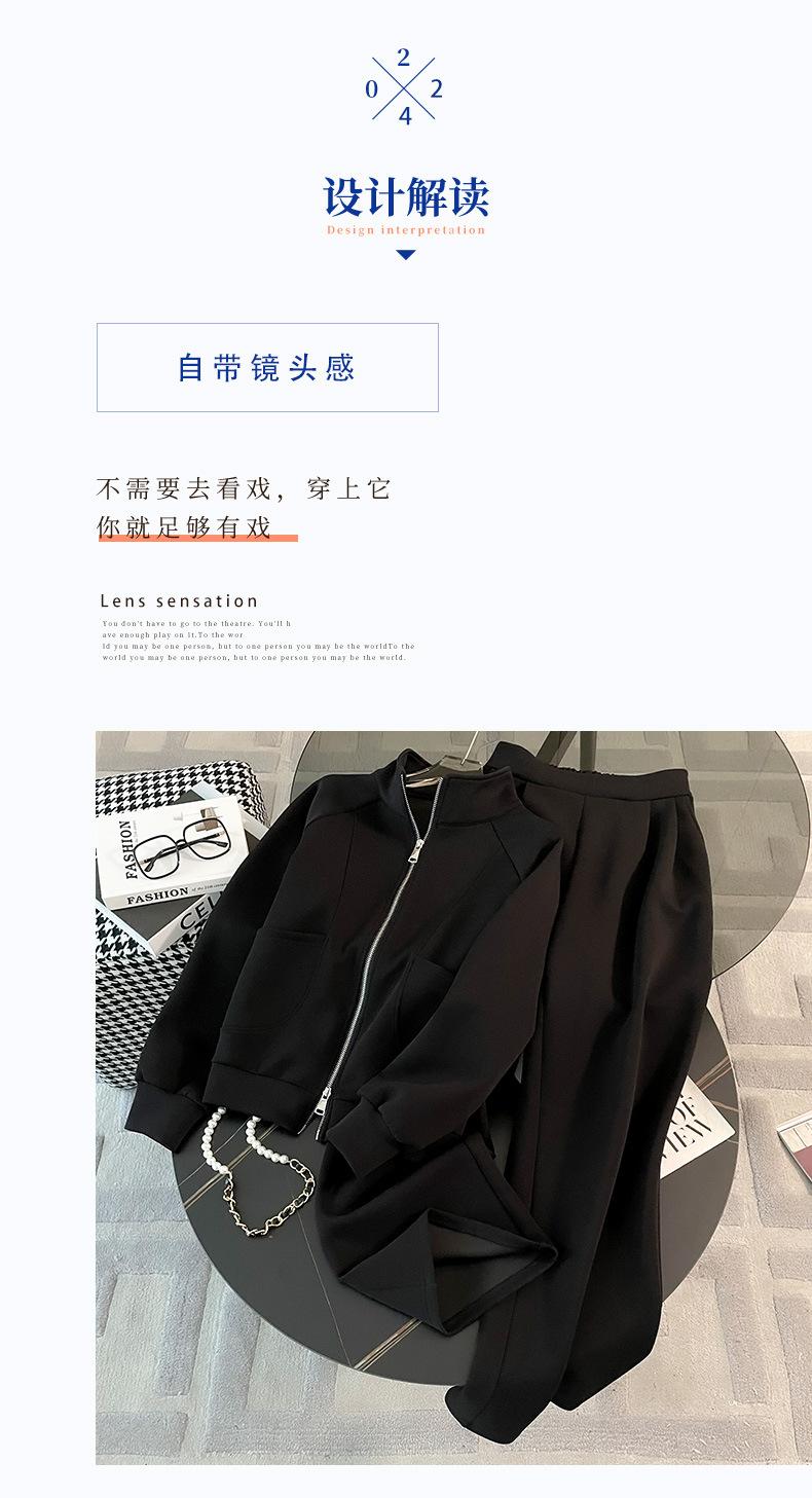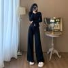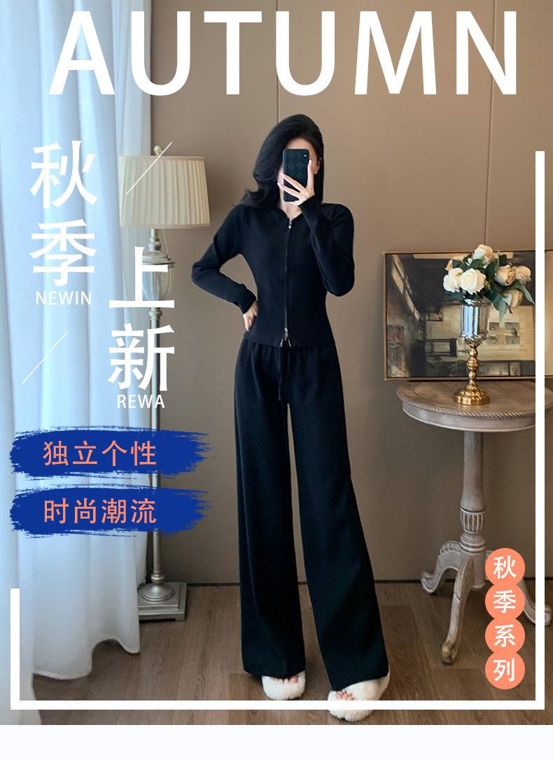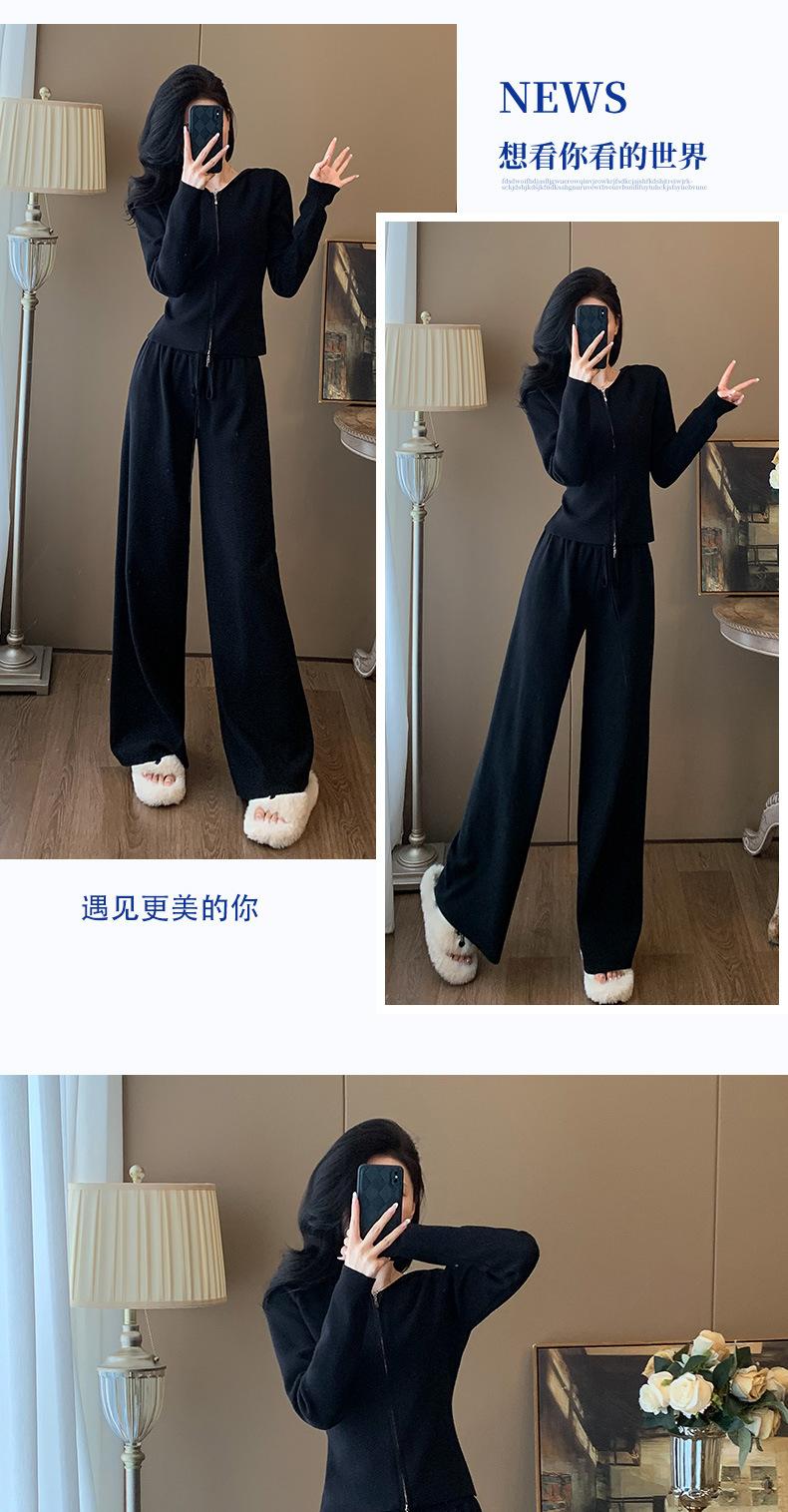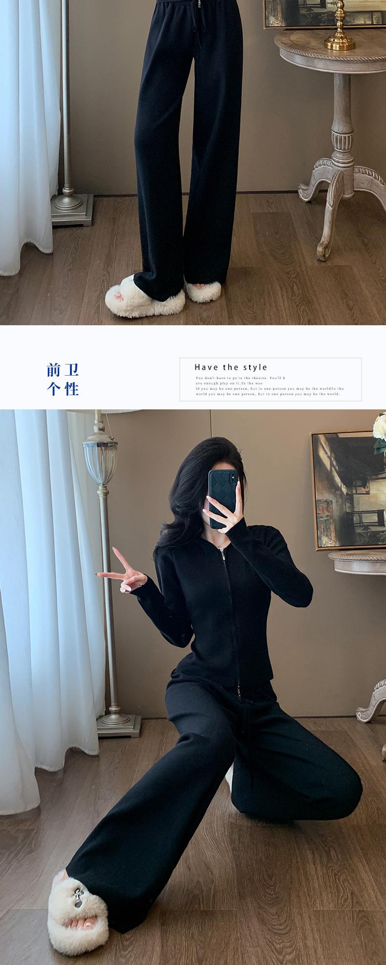 2025 Nuevo Traje Deportivo de Alta Gama para Mujer, Otoño Nuevo Versátil Retro Negro Tejido con Capucha y Piernas Anchas
