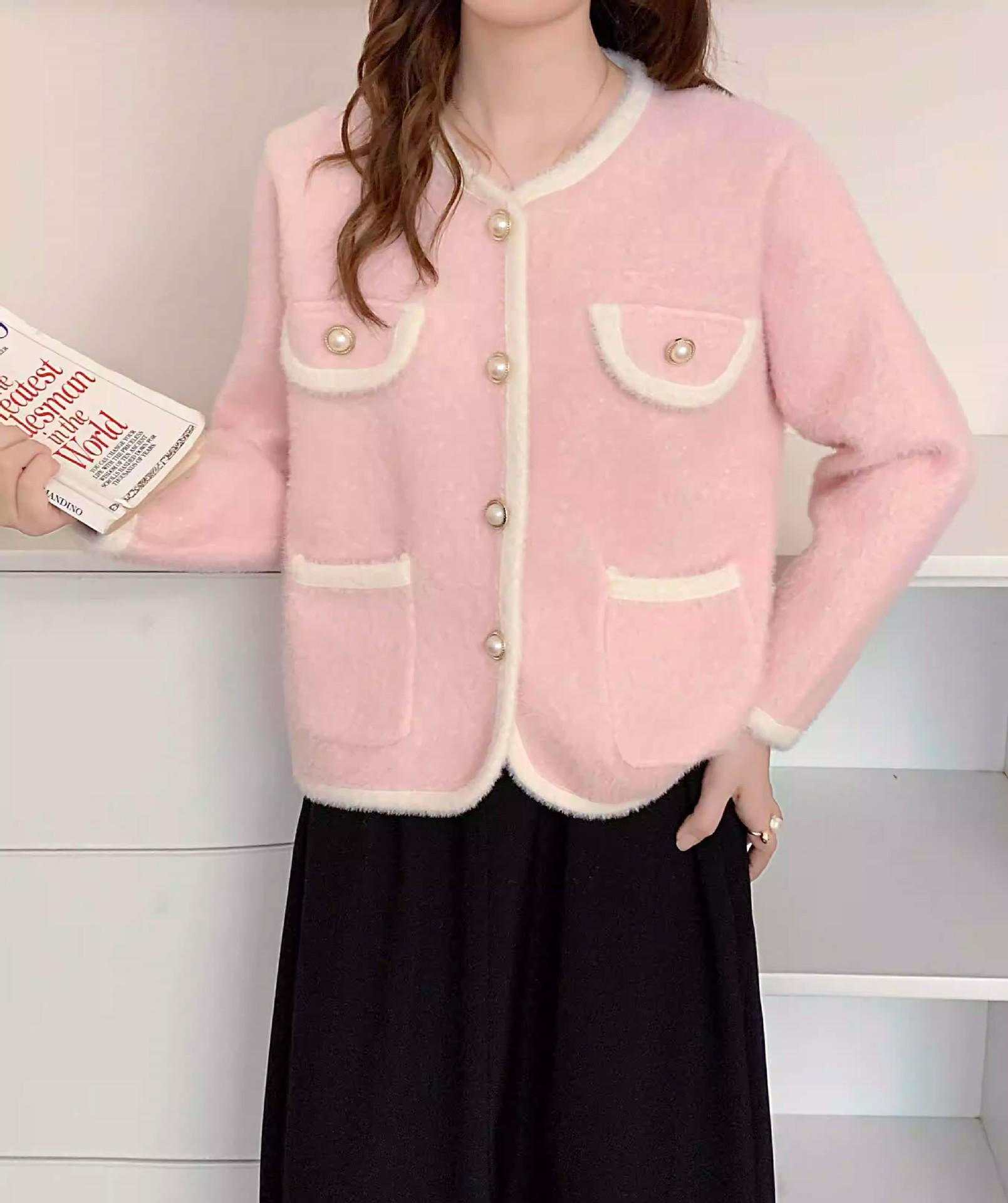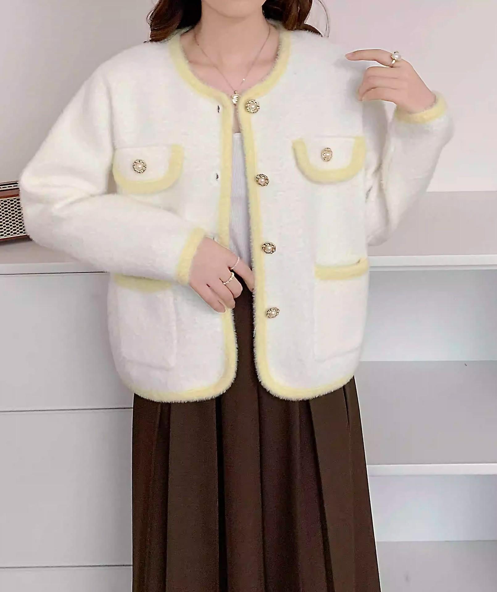 Cárdigan Top de Punto de Terciopelo de Visón Impermeable Estilo Chanel para Mujer Otoño e Invierno Nuevo Elegante a la Moda Combinable Chaqueta Suéter Corta