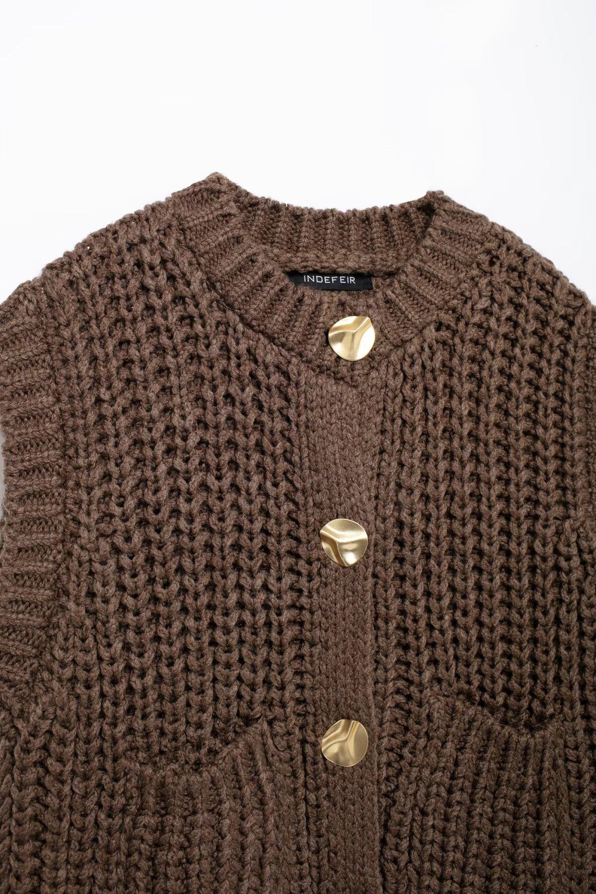 Moda Otoño 2024 Nuevo Joker Chaqueta de Punto de Aguja Gruesa Transfronteriza Amazon para Mujer D6145833