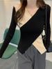 Tejido de punto para mujer Otoño e Invierno Top interior con cuello en V Nicho Irregular Estilo extranjero Color en contraste Cuello bajo Manga larga Suéter de capa base