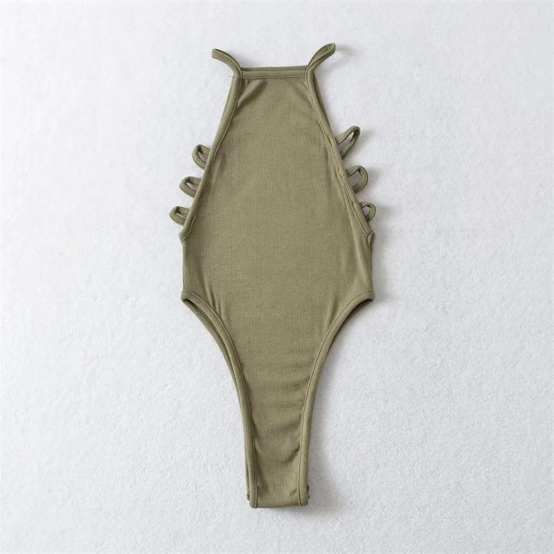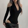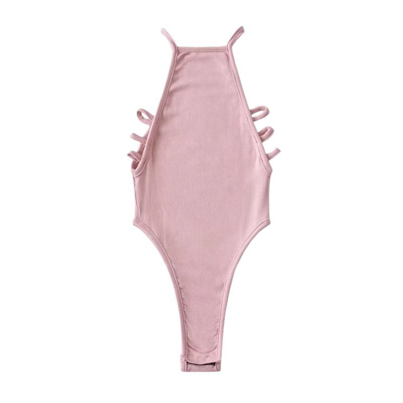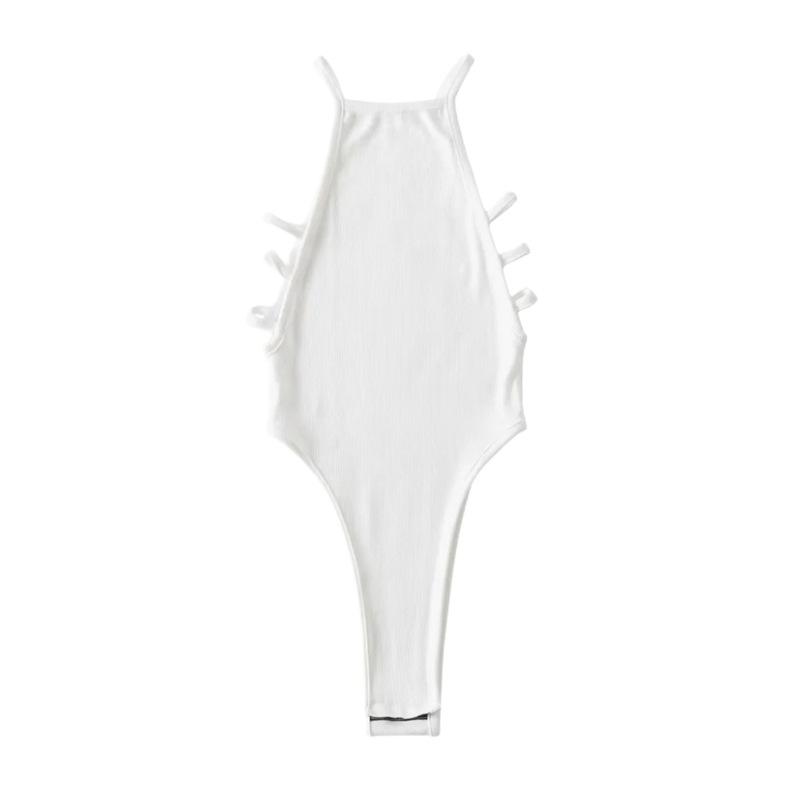 Chaleco de una pieza con diseño de nicho europeo y americano de puro deseo, ropa de mujer con sentido del diseño, chica sexy con agujeros, parte inferior de color sólido.