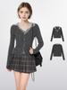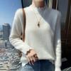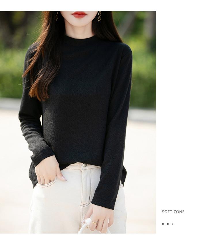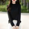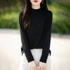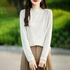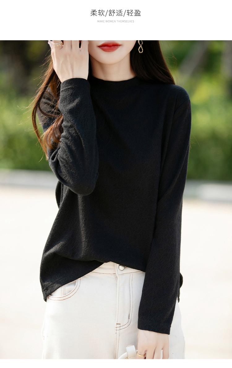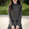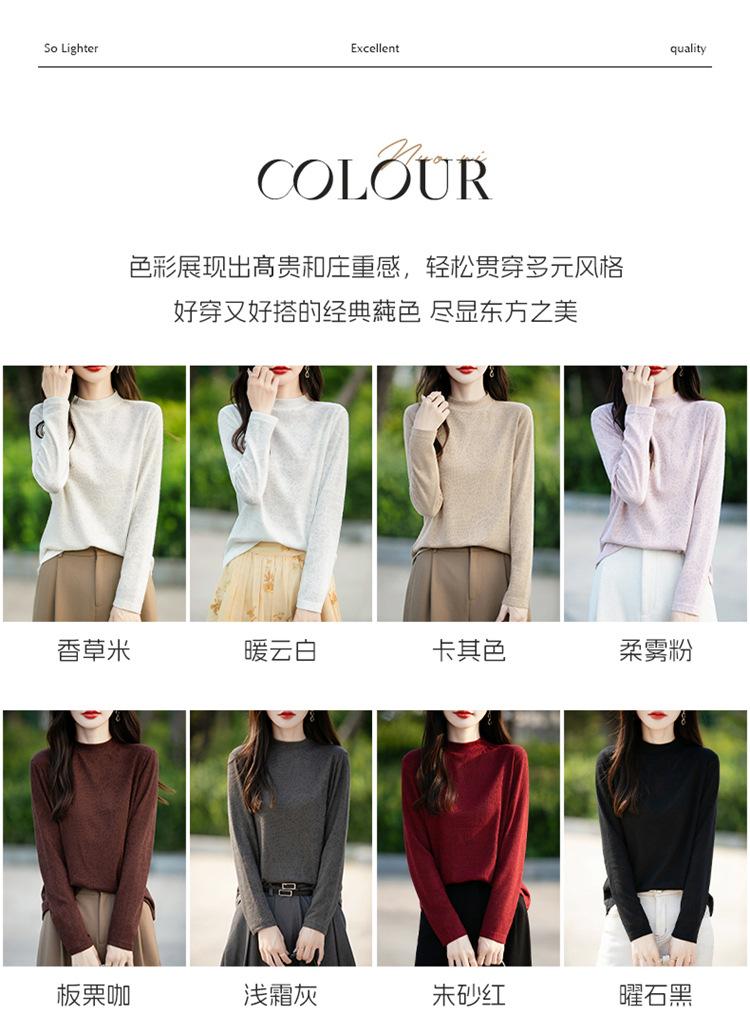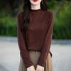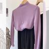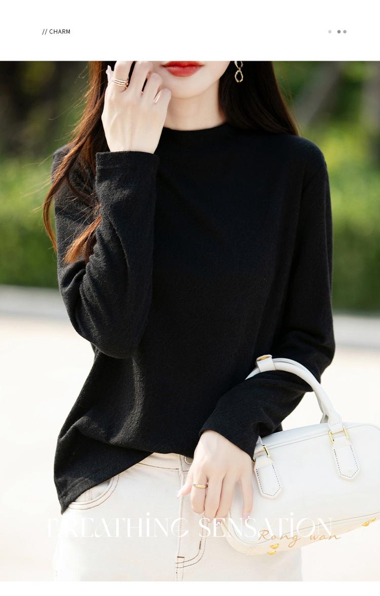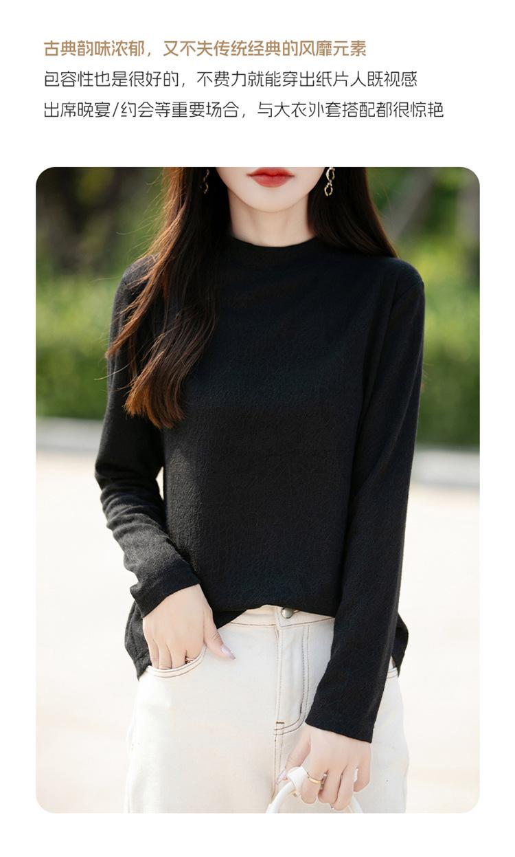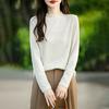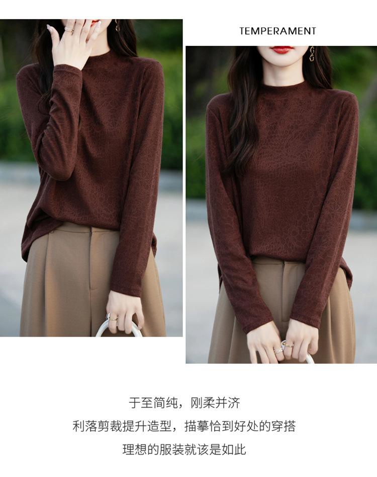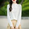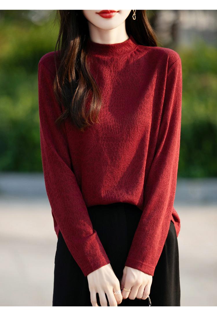 Tejido de Punto de Cuello Alto Medio de Primavera y Otoño Transfronterizo para Mujer, Jacquard de Seda Brillante, Manga Larga, Tejido de Punto, Elegante Encaje de Ganchillo, Camiseta Básica