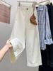 Pantalones vaqueros de pierna ancha estilo americano retro para mujer, otoño 2024, nuevos pantalones de cintura alta con aberturas.