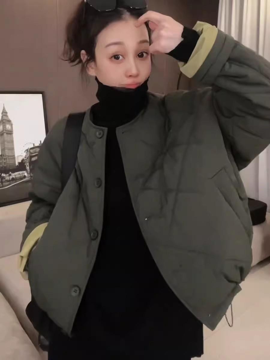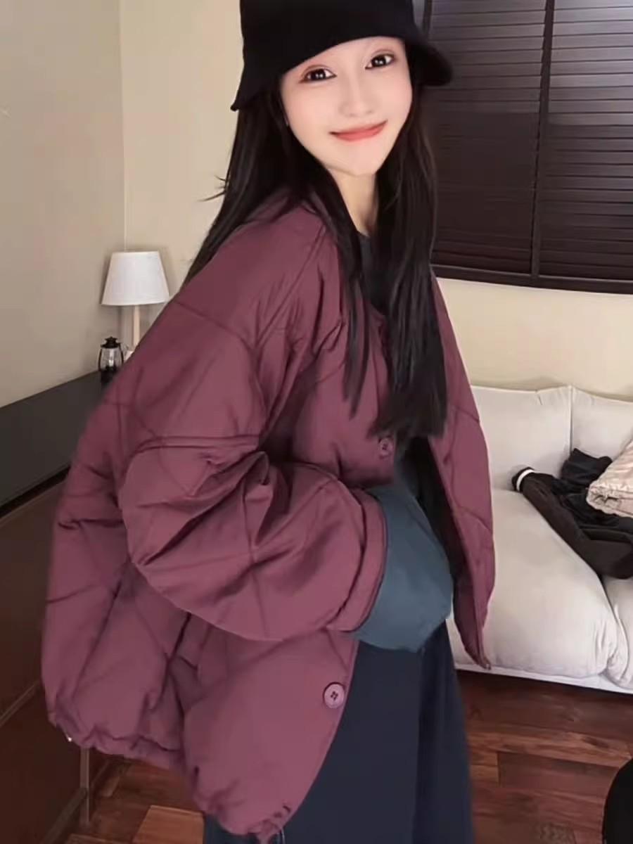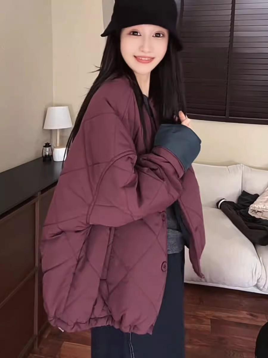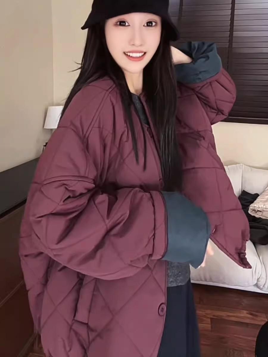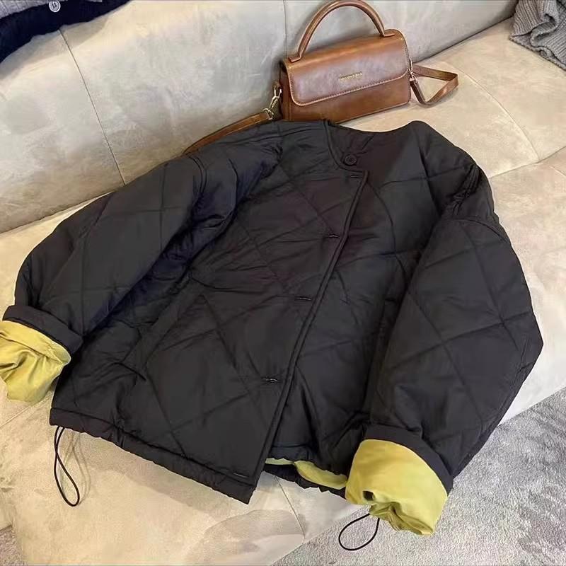 Chaqueta acolchada de algodón estilo coreano Lingge para mujer, otoño e invierno 2024, nueva chaqueta informal holgada de algodón con cuello redondo
