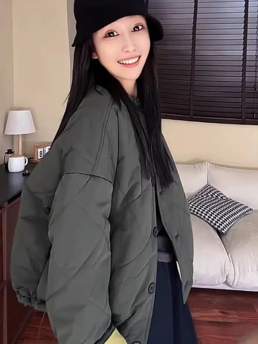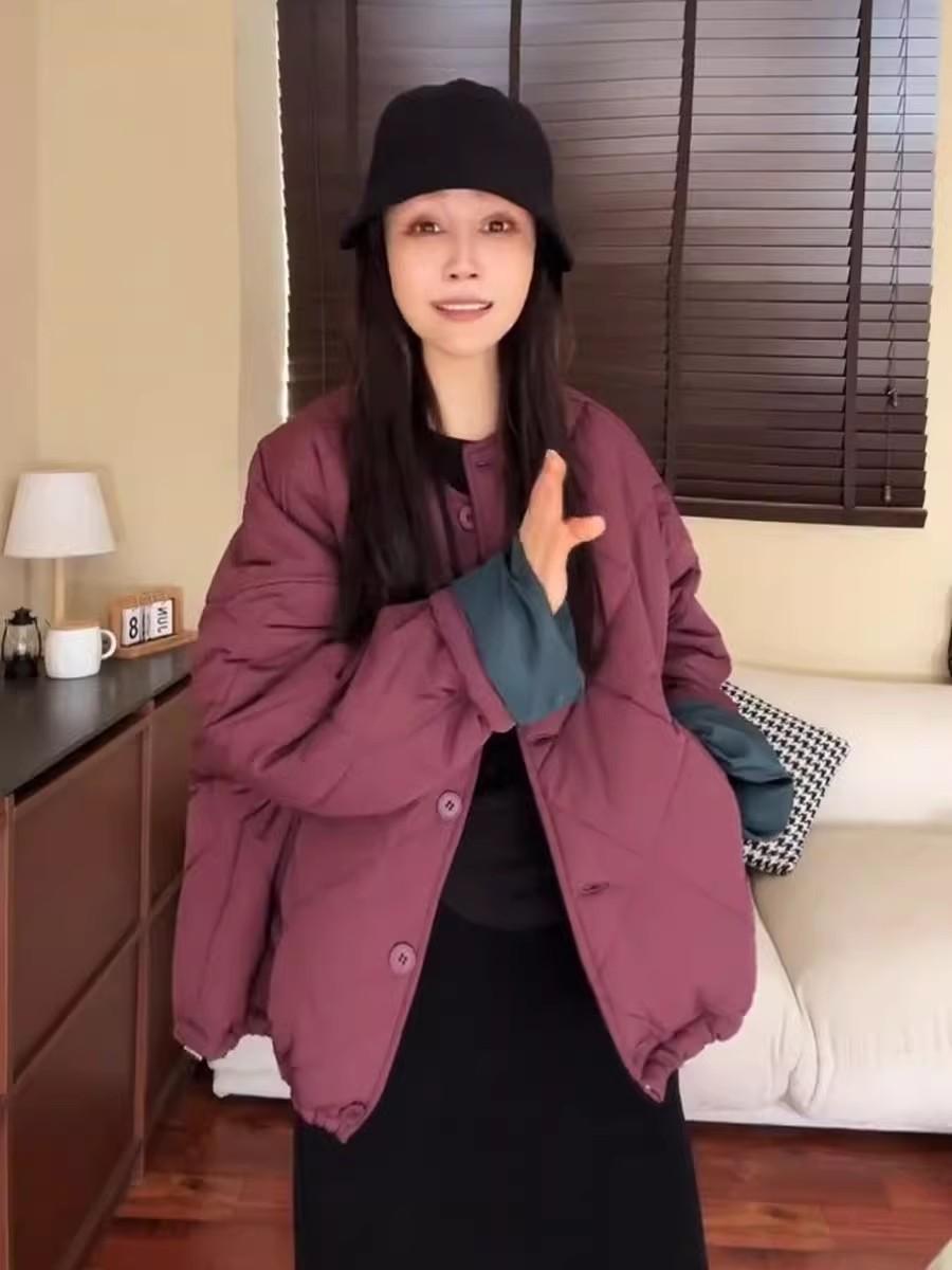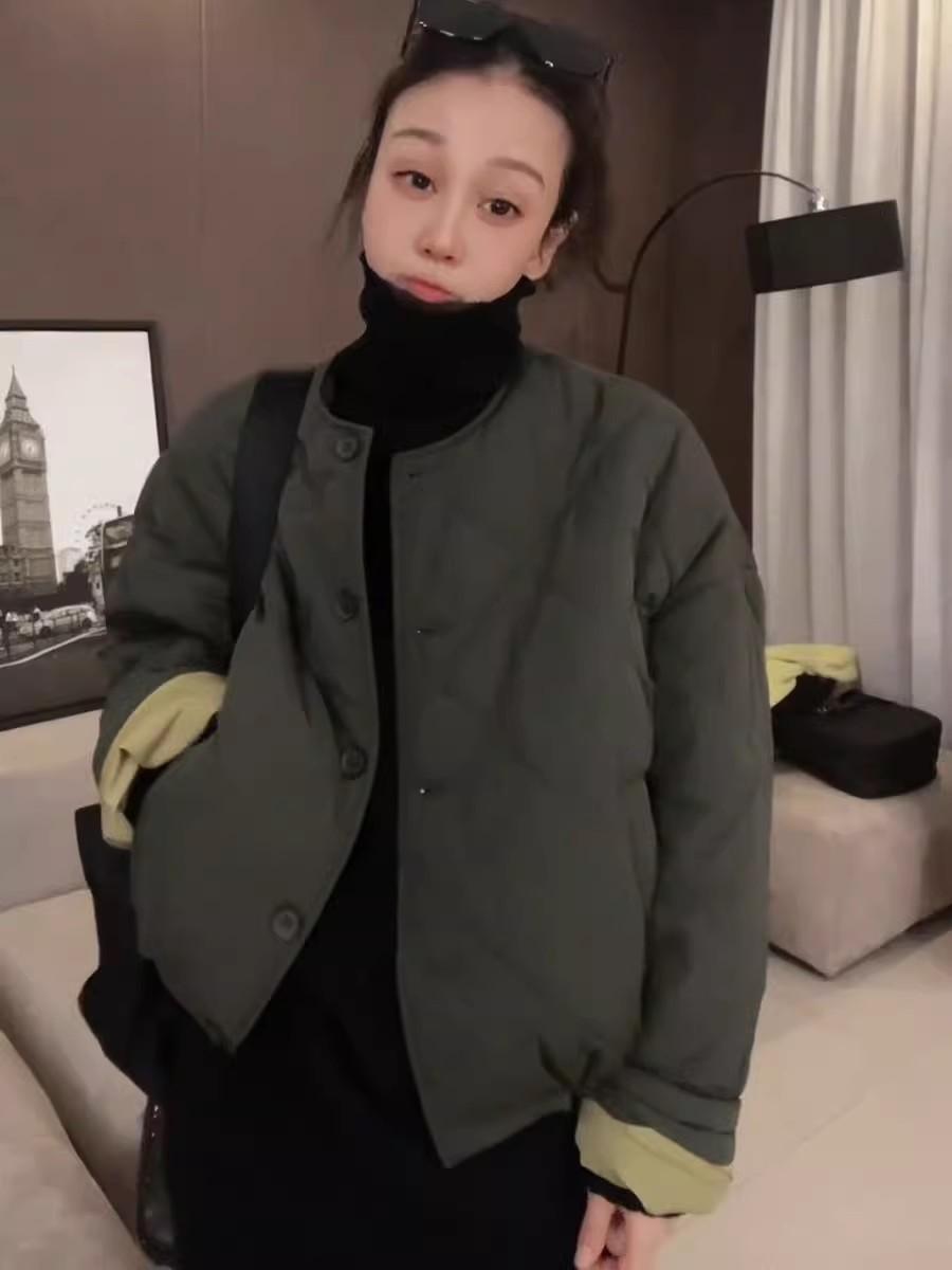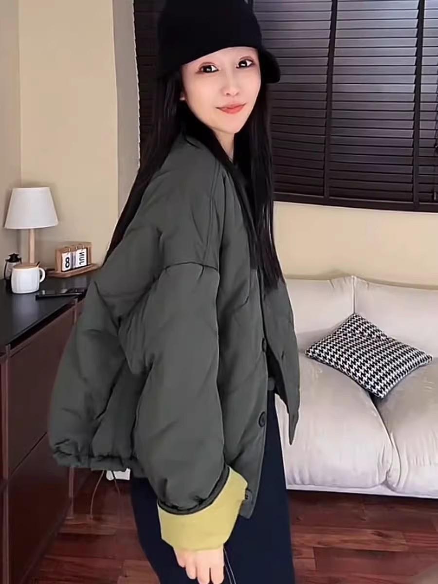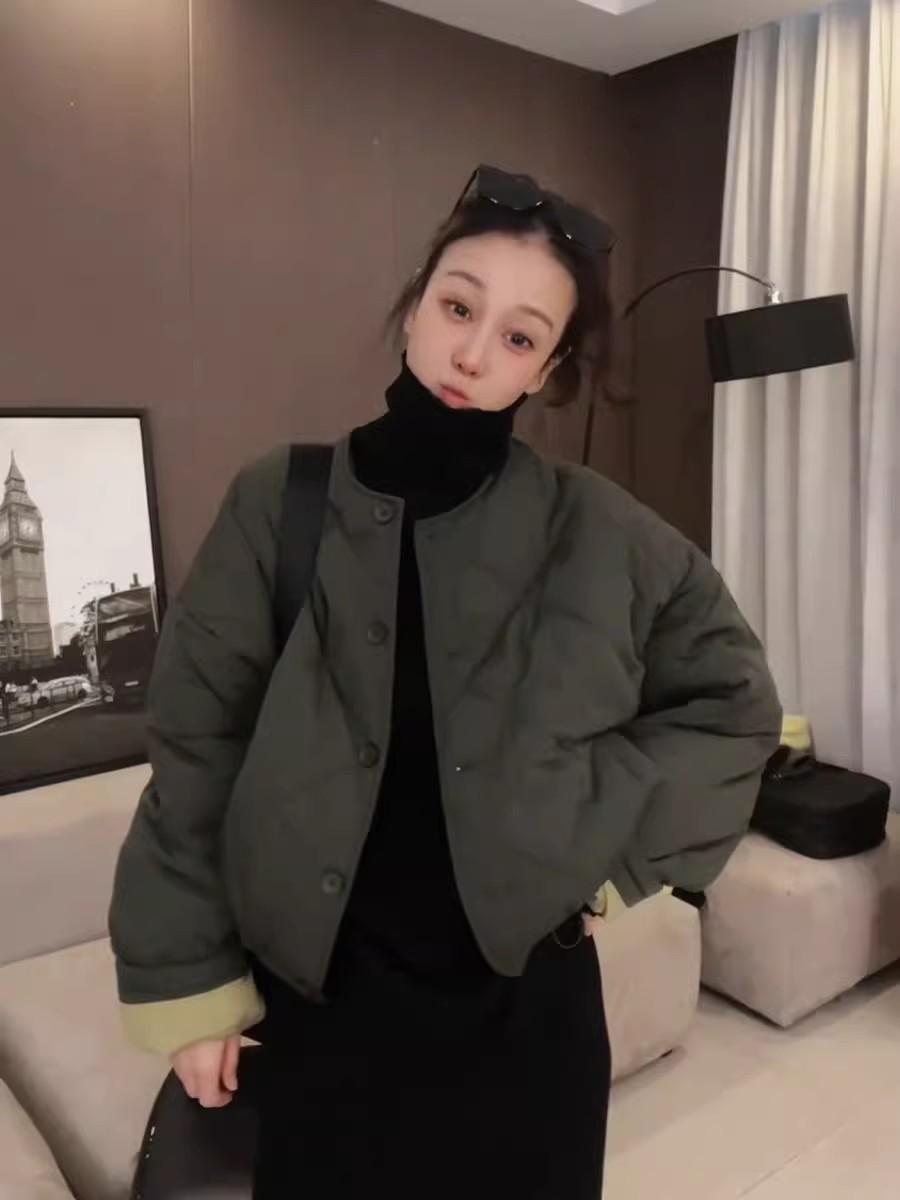 Chaqueta acolchada de algodón estilo coreano Lingge para mujer, otoño e invierno 2024, nueva chaqueta informal holgada de algodón con cuello redondo
