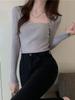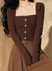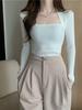 Camisa básica de cuello cuadrado para mujer, suéter de color liso para otoño e invierno, combina con todo, nuevo diseño 2024, prenda de punto Sense