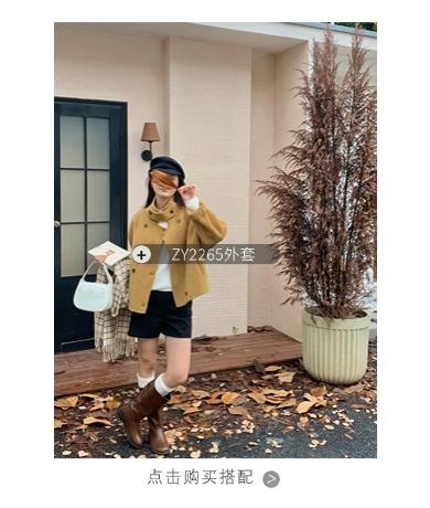 3th Morning Malton Block - Pantalones cortos de lana adelgazantes de cintura alta retro ZY2338