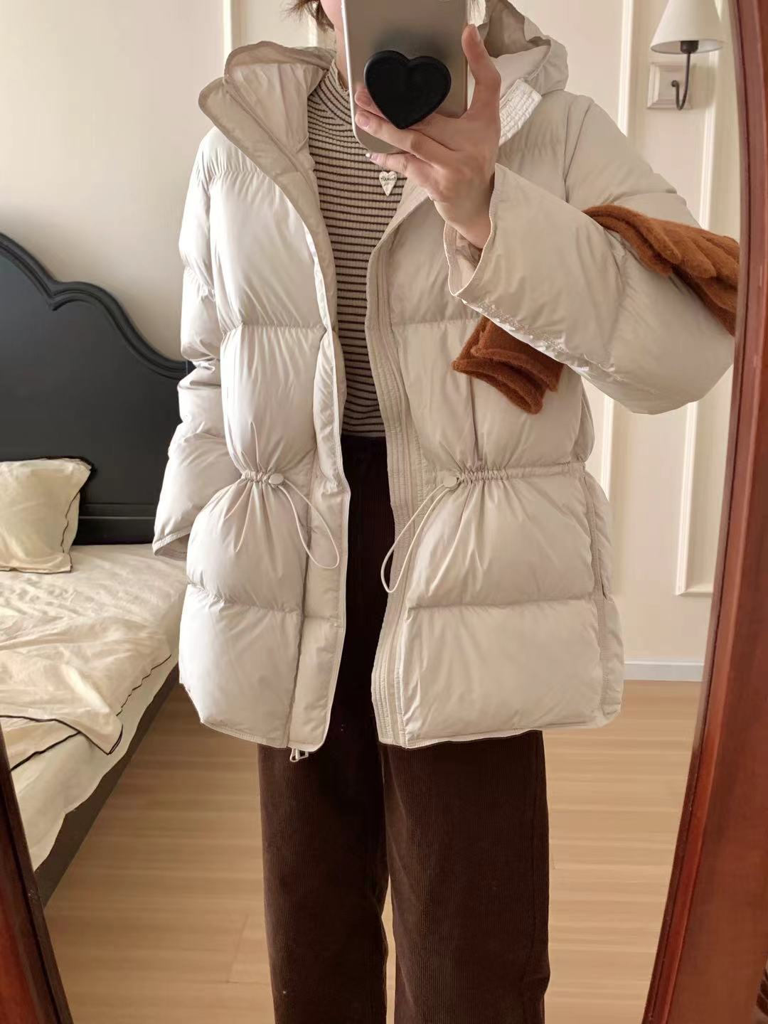 Chaqueta de plumón de pato blanco Yu Yan 2024, nueva chaqueta de invierno de 90 pulgadas para mujer, con cordón ajustable, adelgazante, gruesa y cálida.