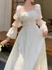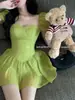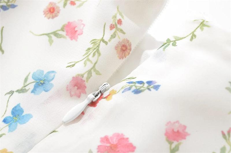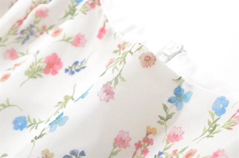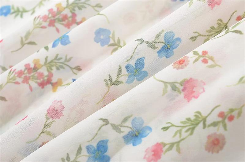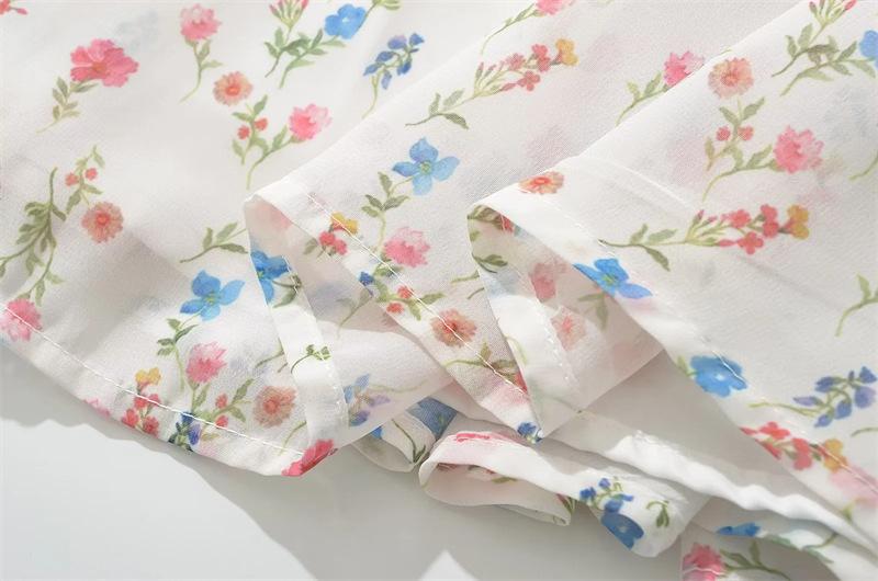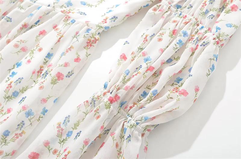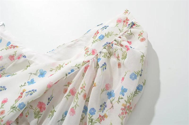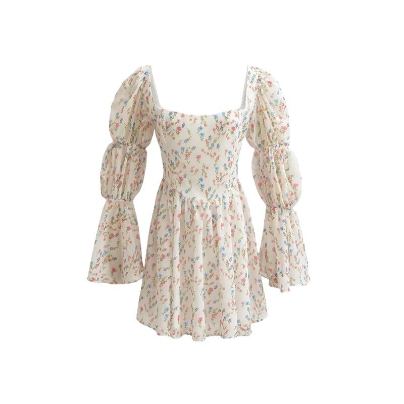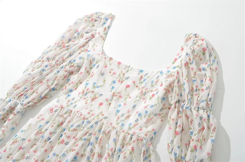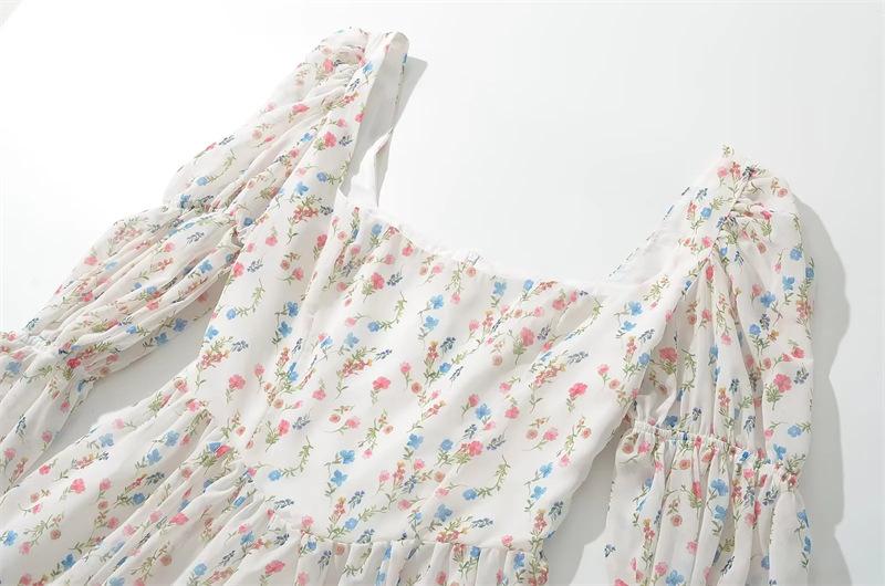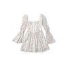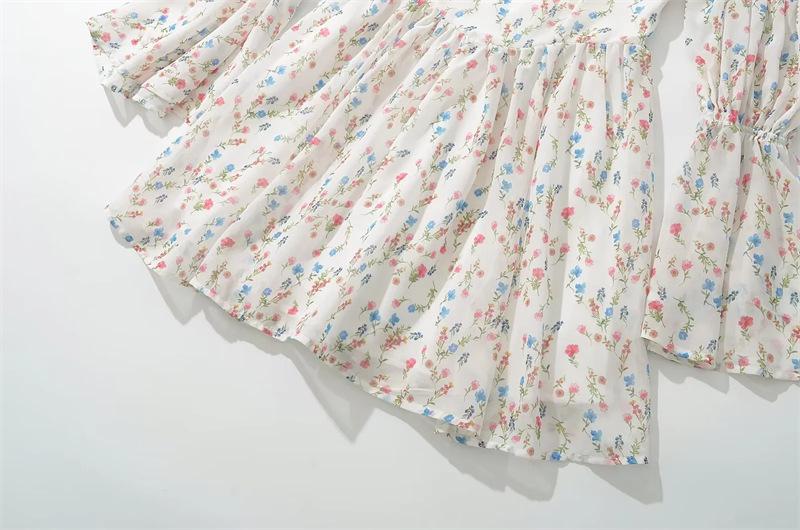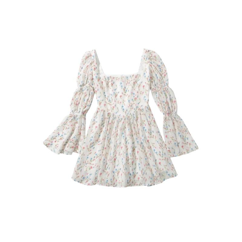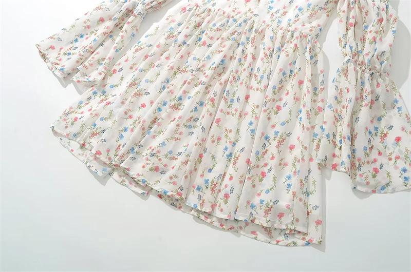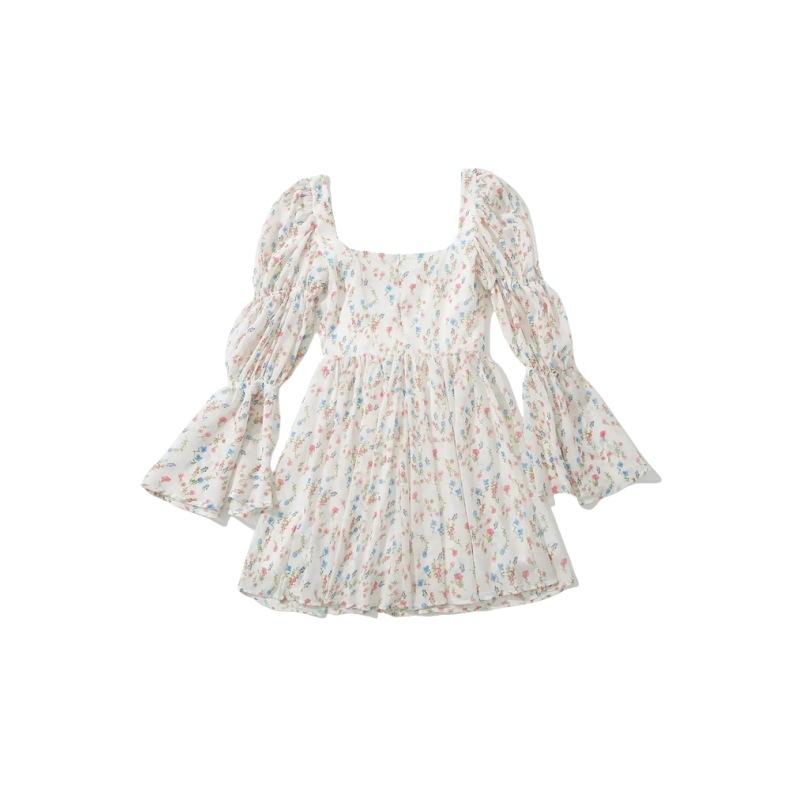 Vestido minifalda plisada con estampado floral, cuello cuadrado francés, mangas acampanadas, corte entallado y cintura ajustada para mujer
