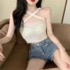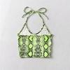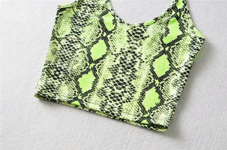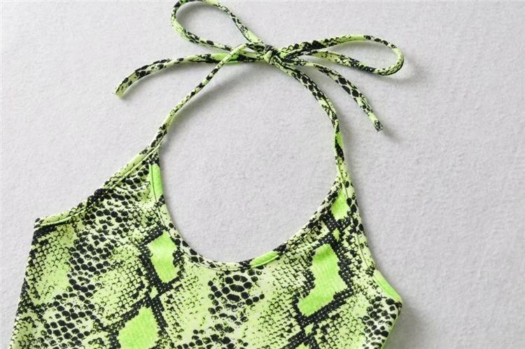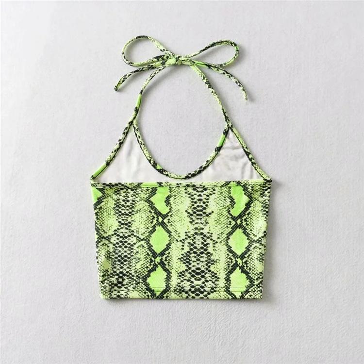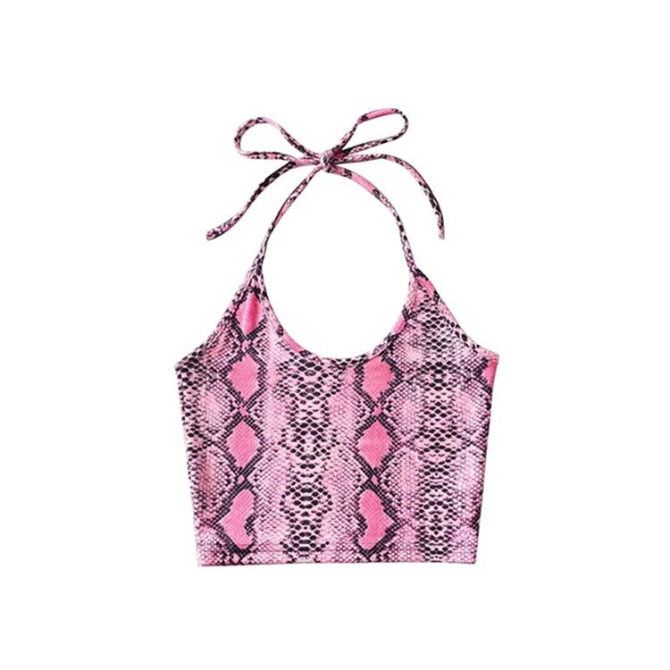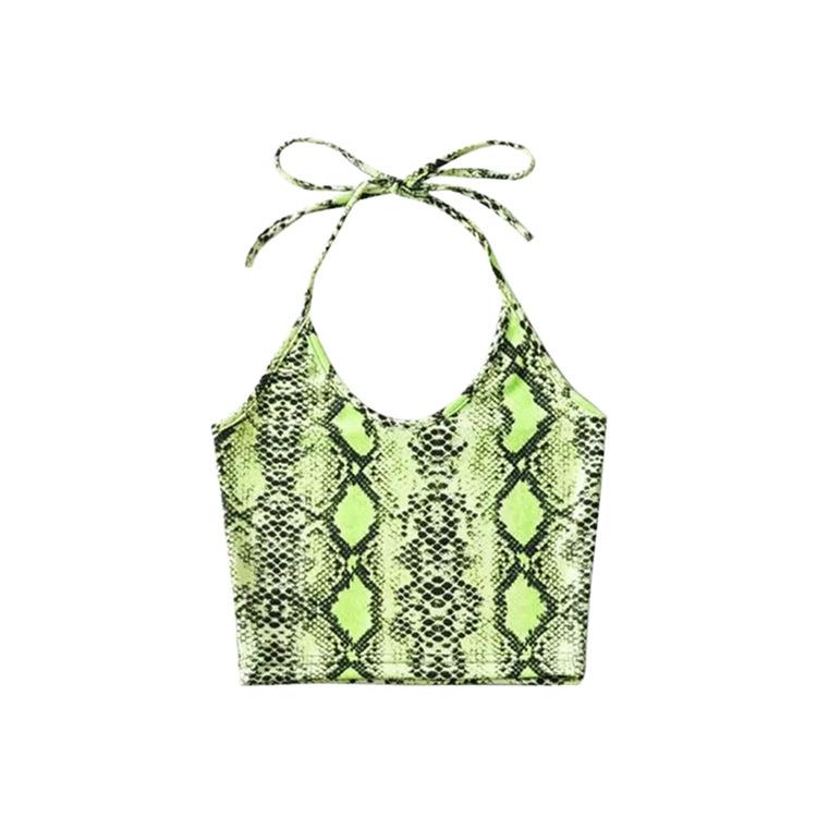 Top corto ajustado vintage hasta el ombligo, estilo europeo y americano, con estampado de serpiente, cuello colgante, tirantes pequeños para mujer