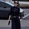 Traje deportivo de moda igual al de celebridad de internet para otoño e invierno, cárdigan con cremallera, suéter negro de manga larga de dos piezas para mujer