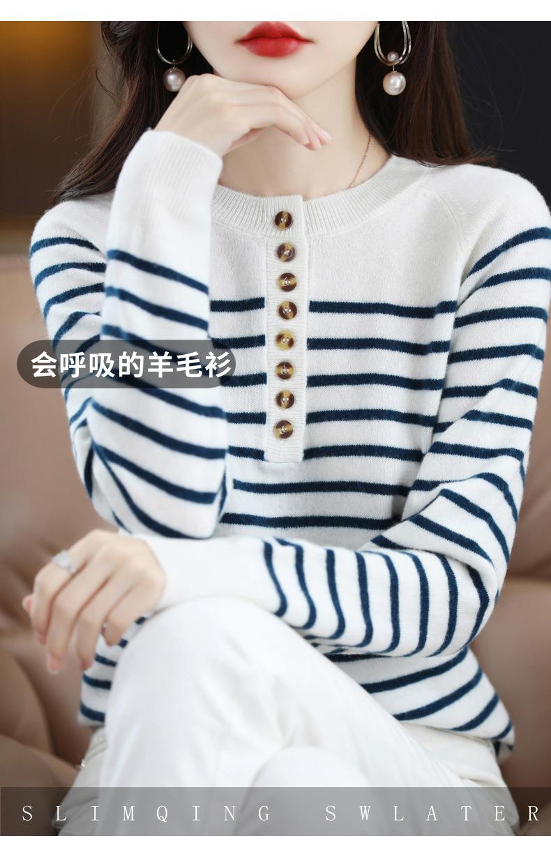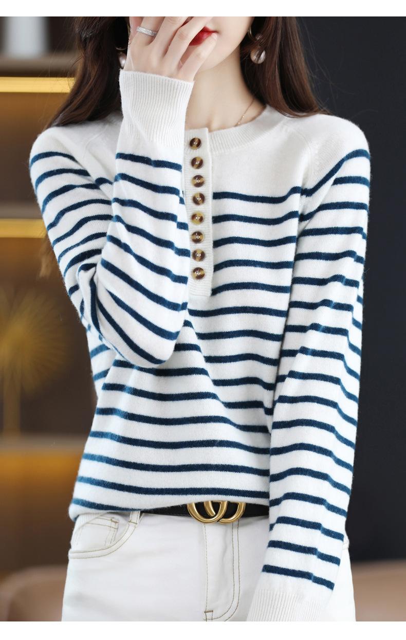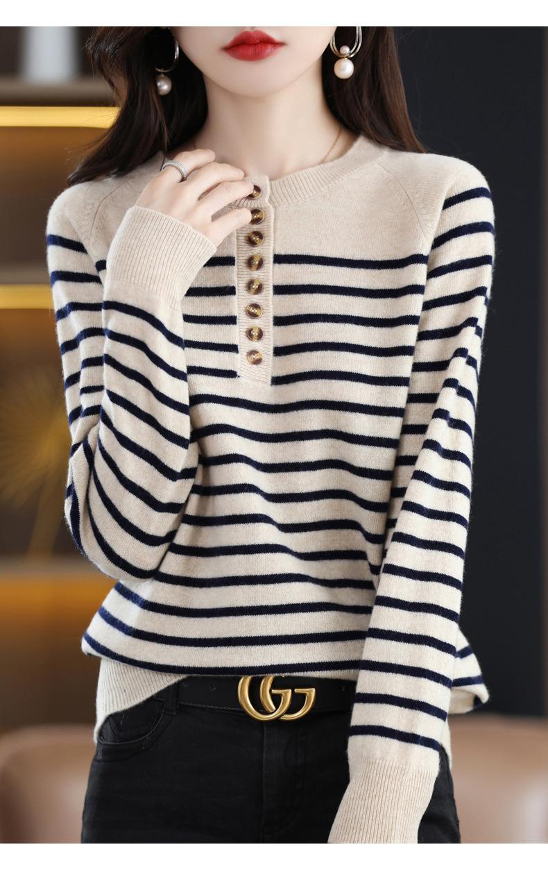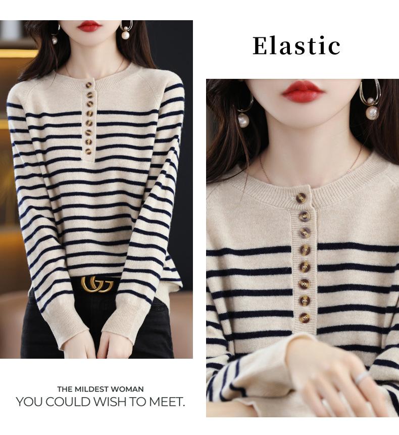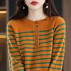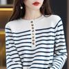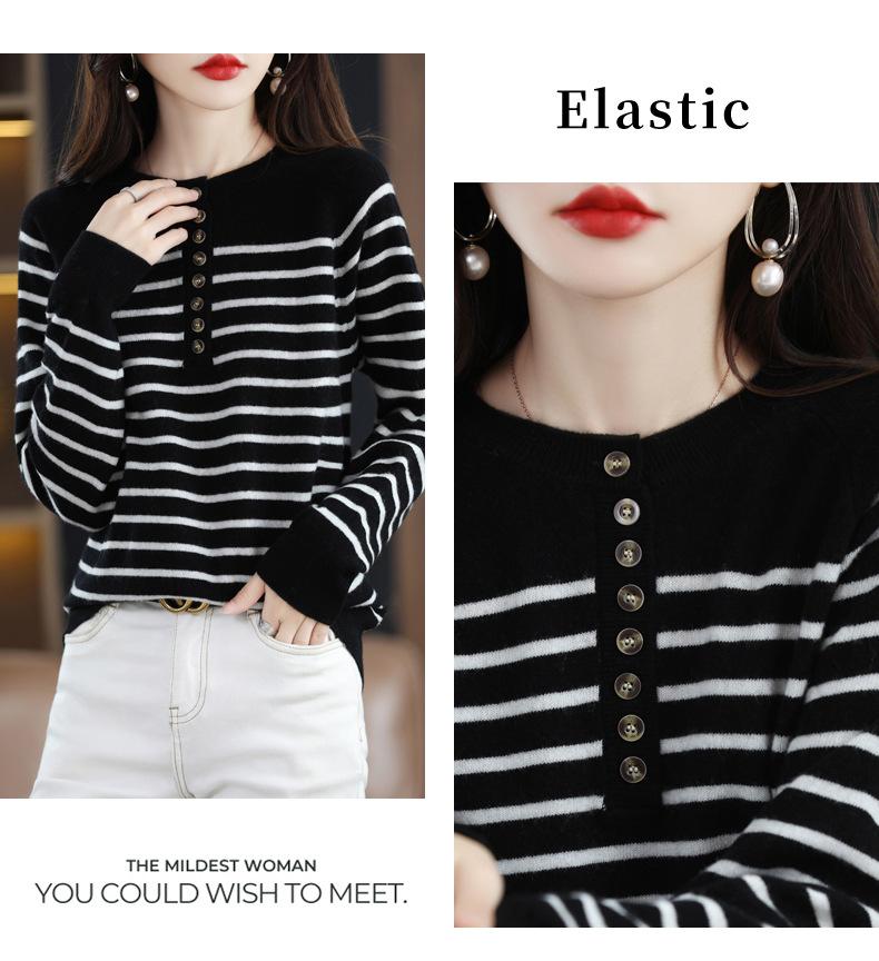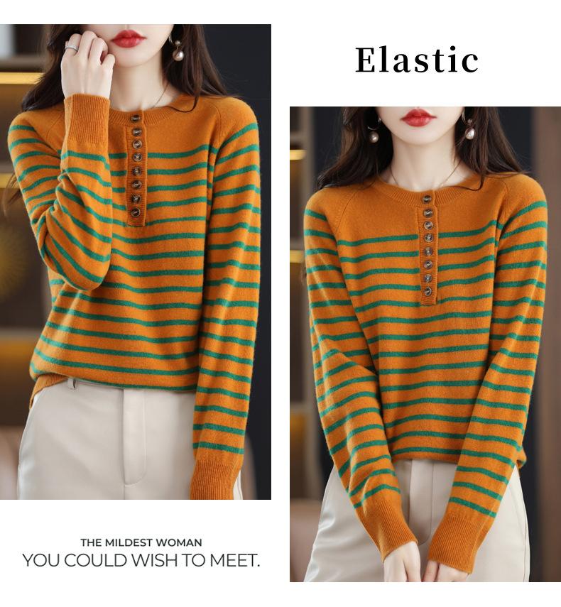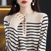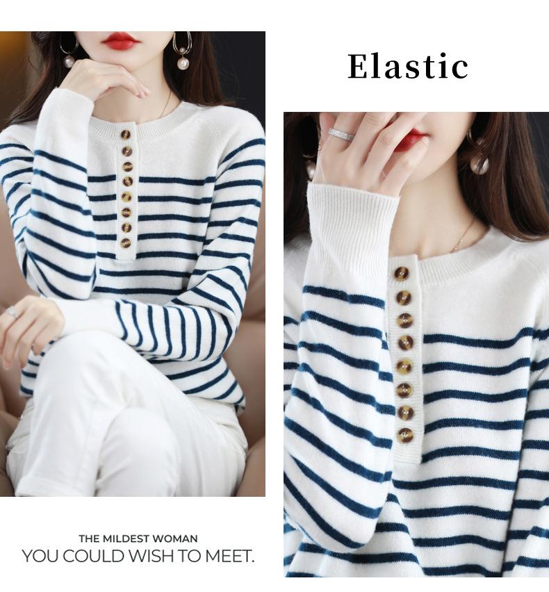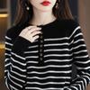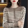 Suéter de Lana Tejida Nuevo de Otoño e Invierno 2023 para Mujer, Jersey de Cuello Redondo, Cárdigan Medio, Camiseta Básica, Suéter de Lana a Rayas para Exterior