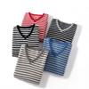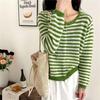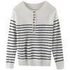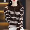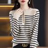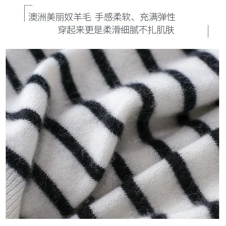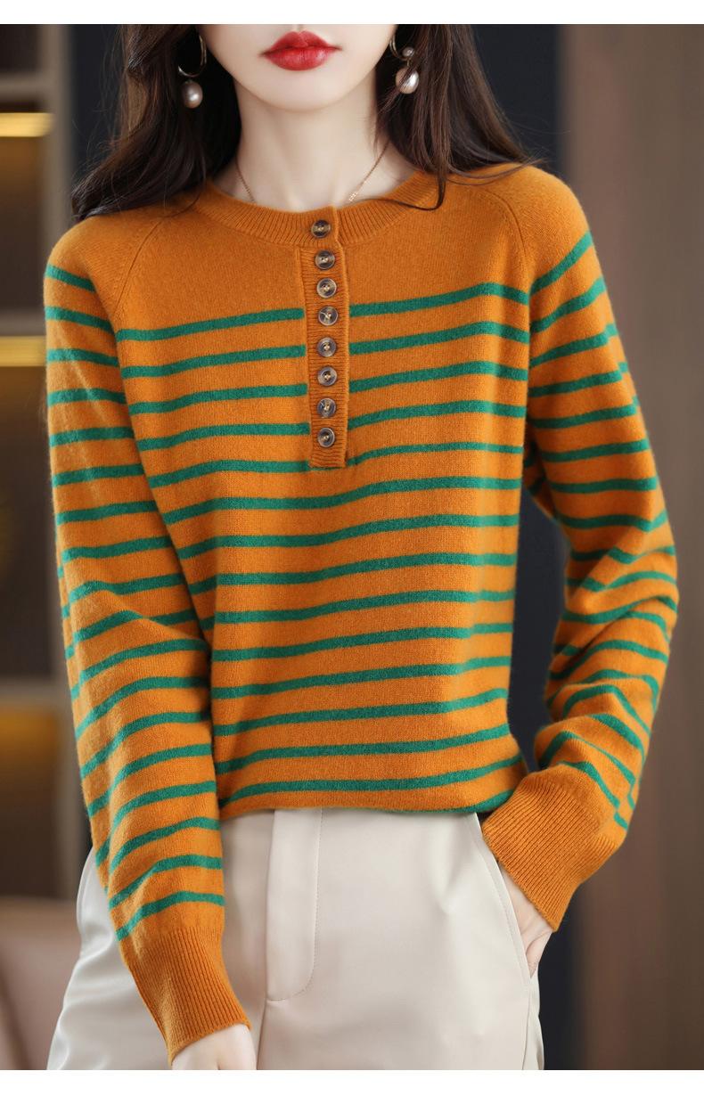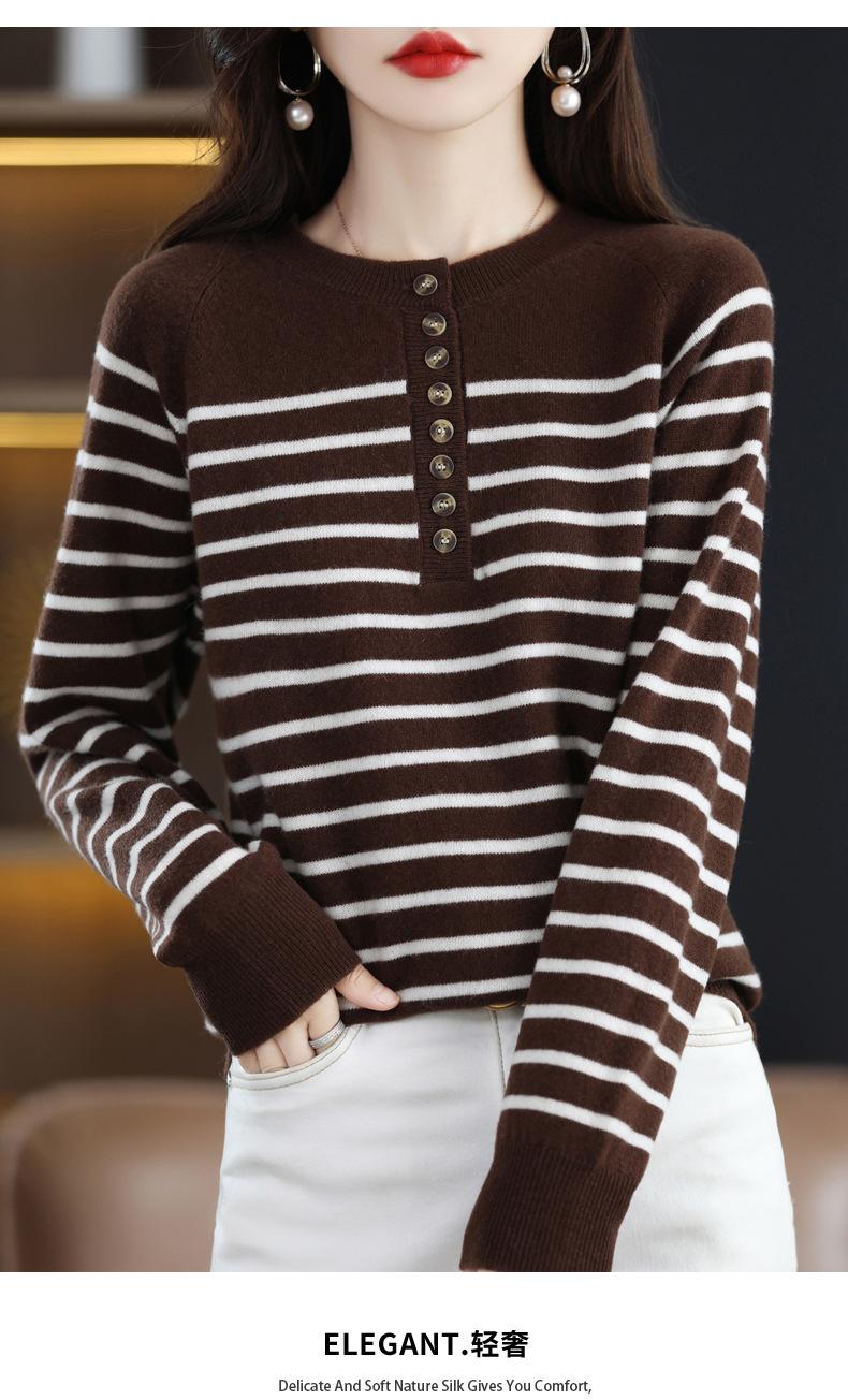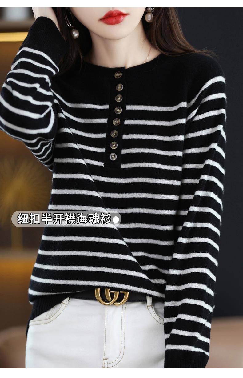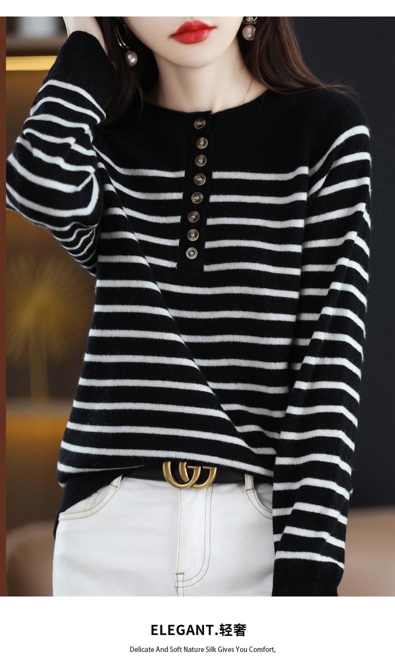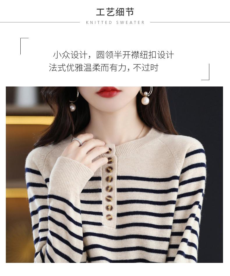 Suéter de Lana Tejida Nuevo de Otoño e Invierno 2023 para Mujer, Jersey de Cuello Redondo, Cárdigan Medio, Camiseta Básica, Suéter de Lana a Rayas para Exterior