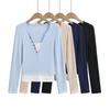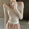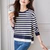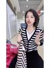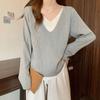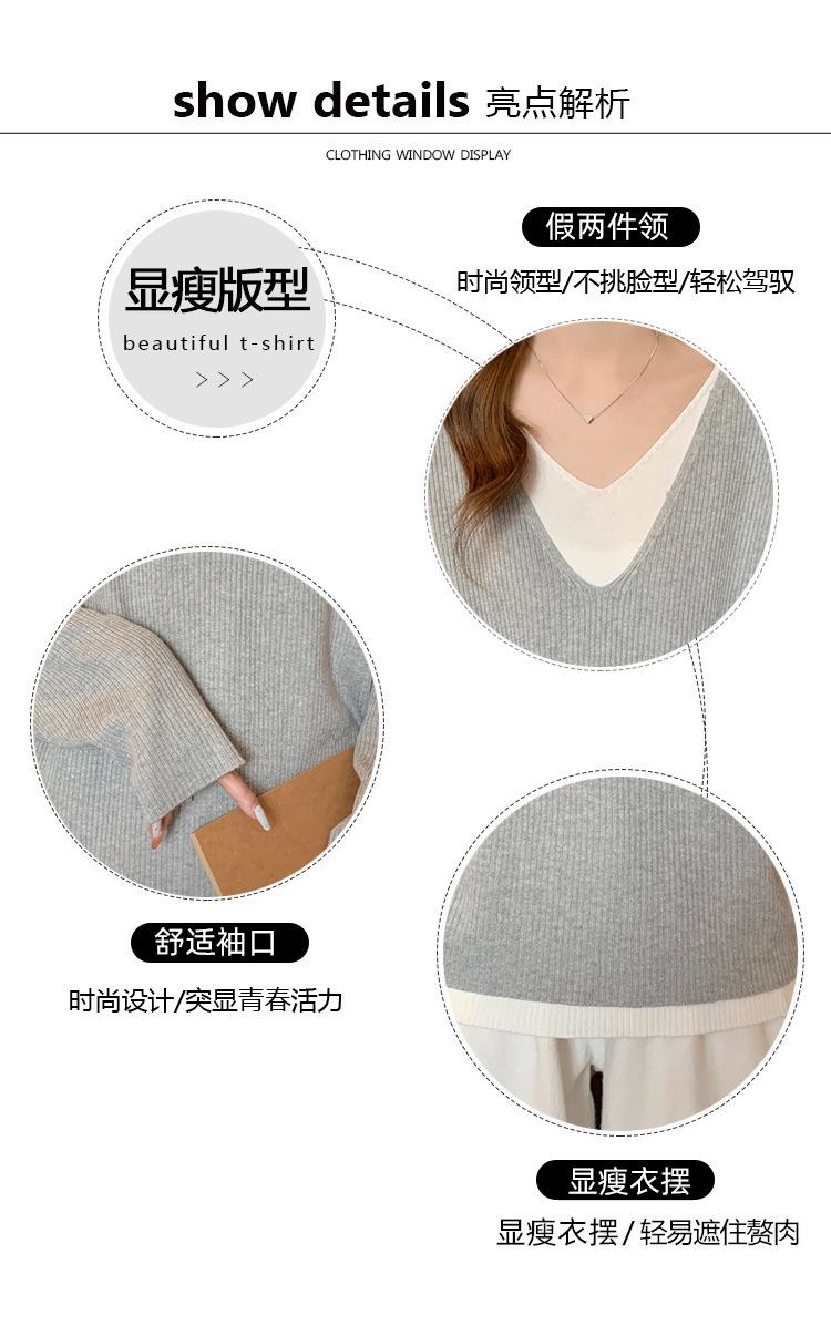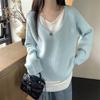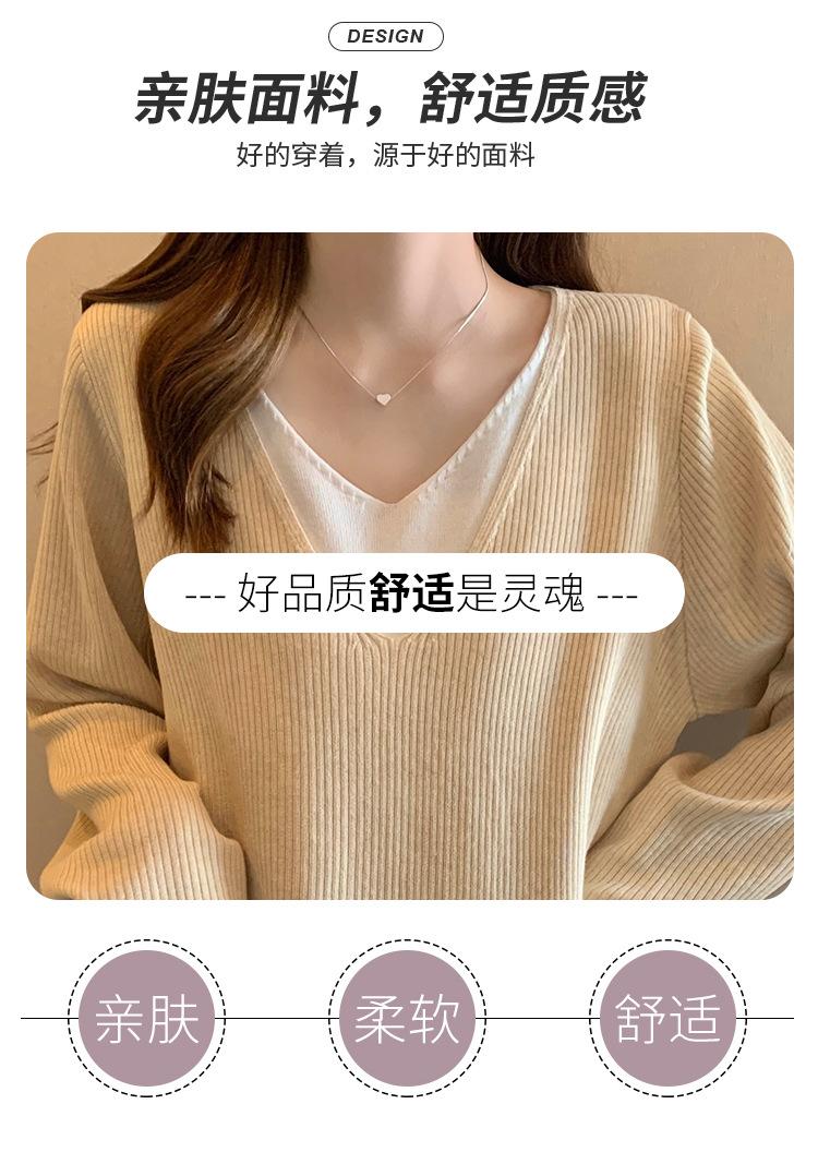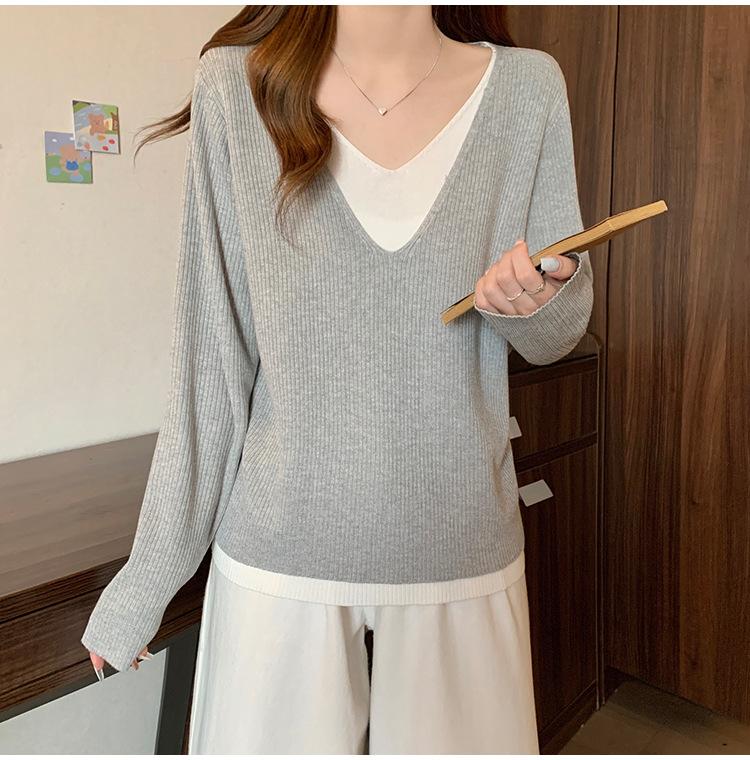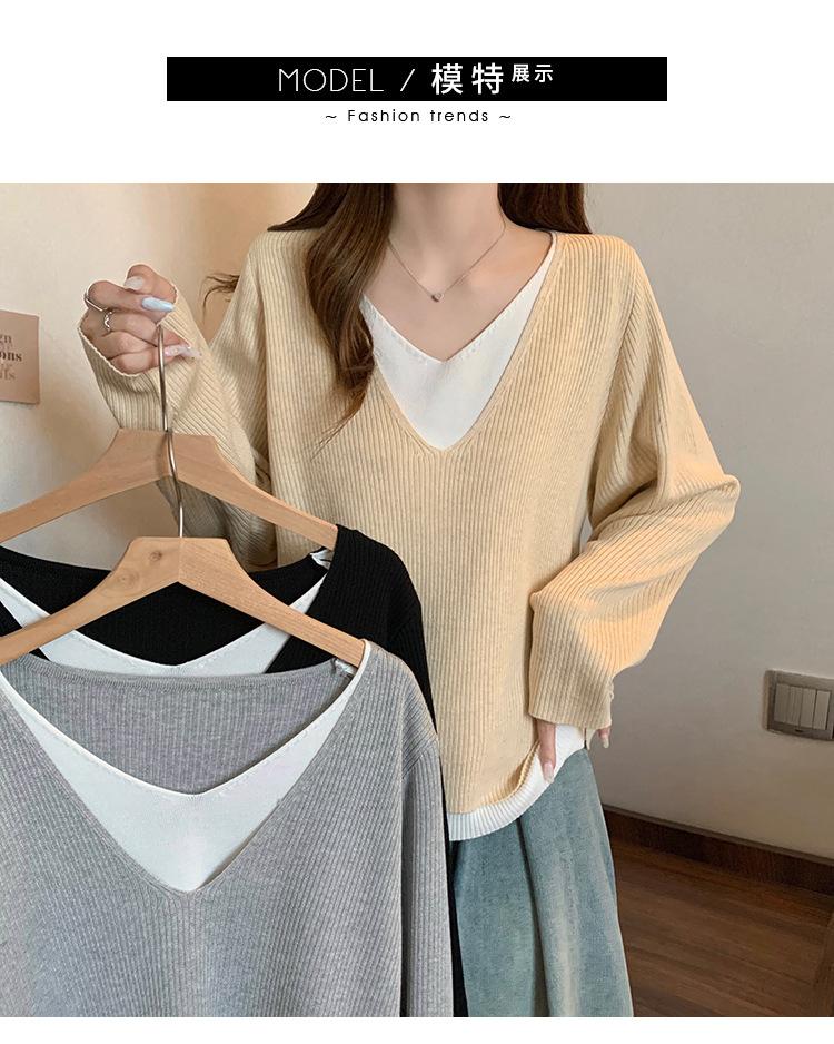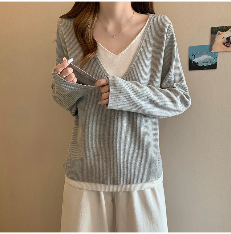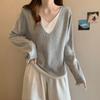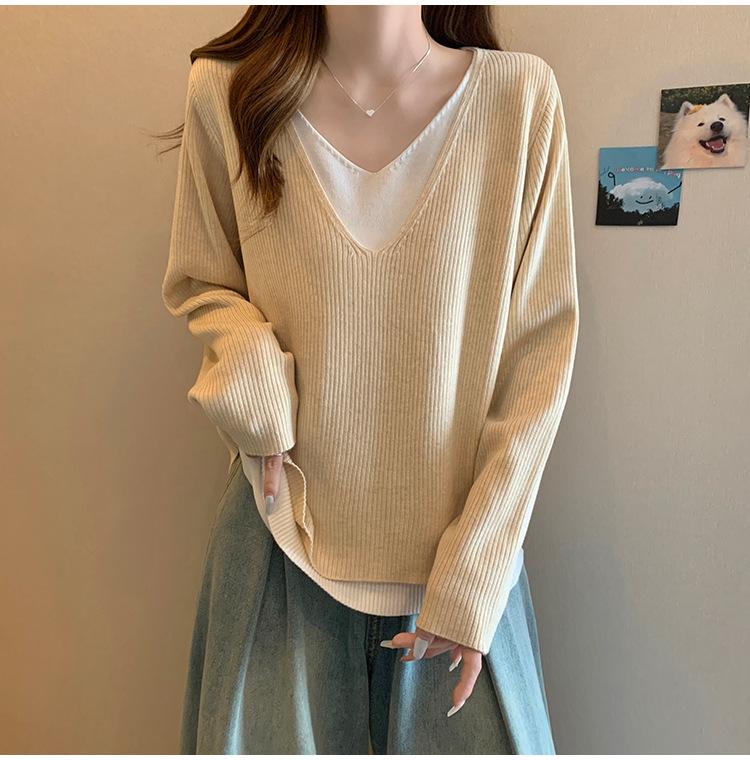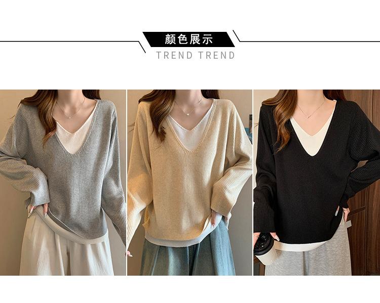 Suéter holgado ajustado de manga larga con cuello en V para mujer, otoño 2024, tejido de punto de dos piezas en contraste de color