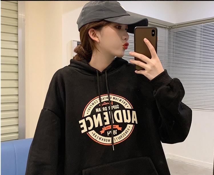 Sudadera con capucha de terciopelo para mujer, chaqueta de otoño e invierno 2022, nueva sudadera holgada con estampado europeo, talla grande, gruesa.