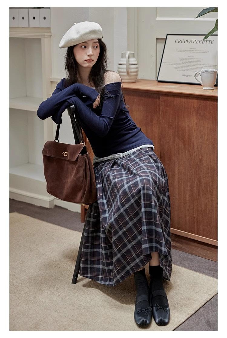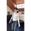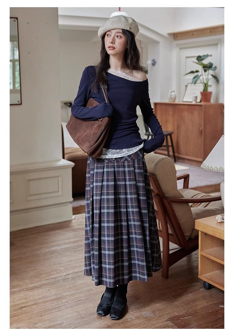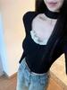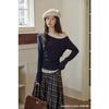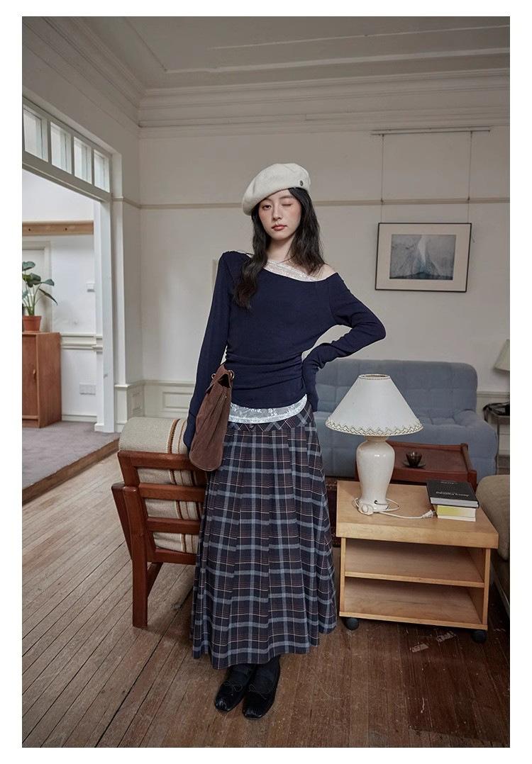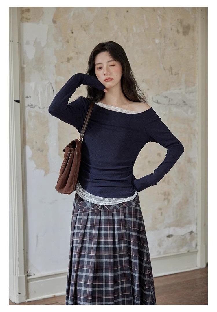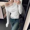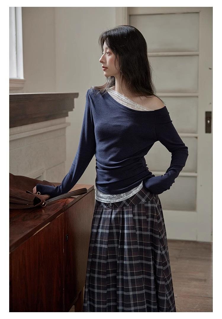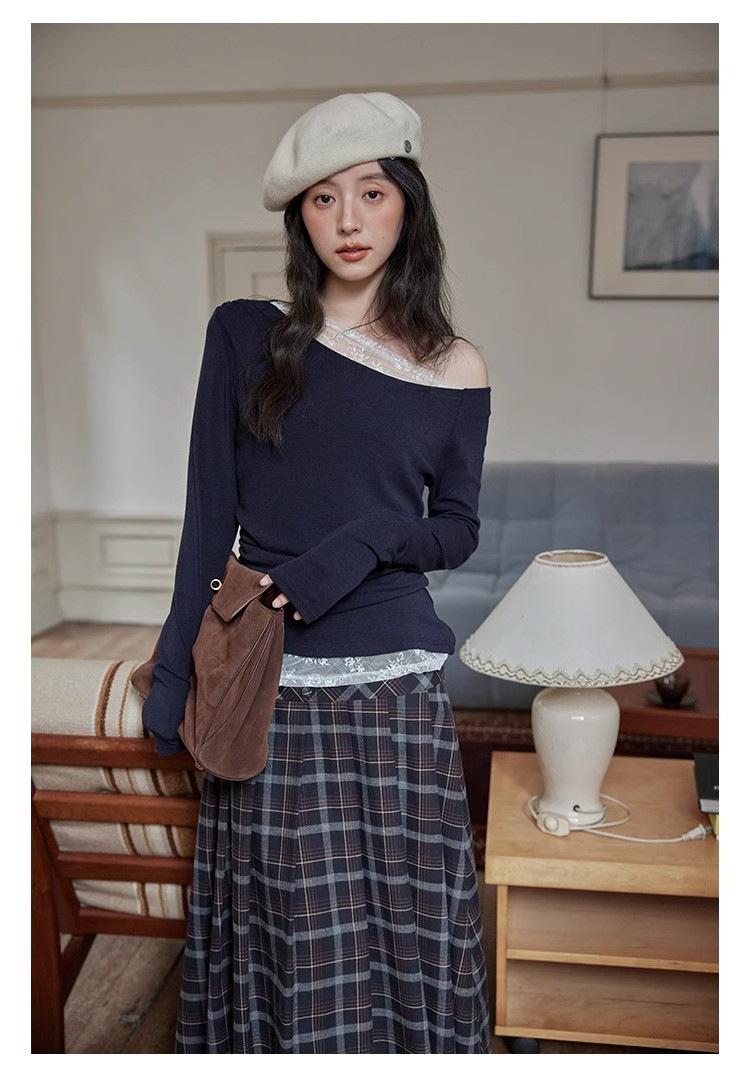Camiseta de manga larga con hombros descubiertos y encaje para mujer, otoño 2024, nuevo diseño, corte entallado, estilo Spice Girls