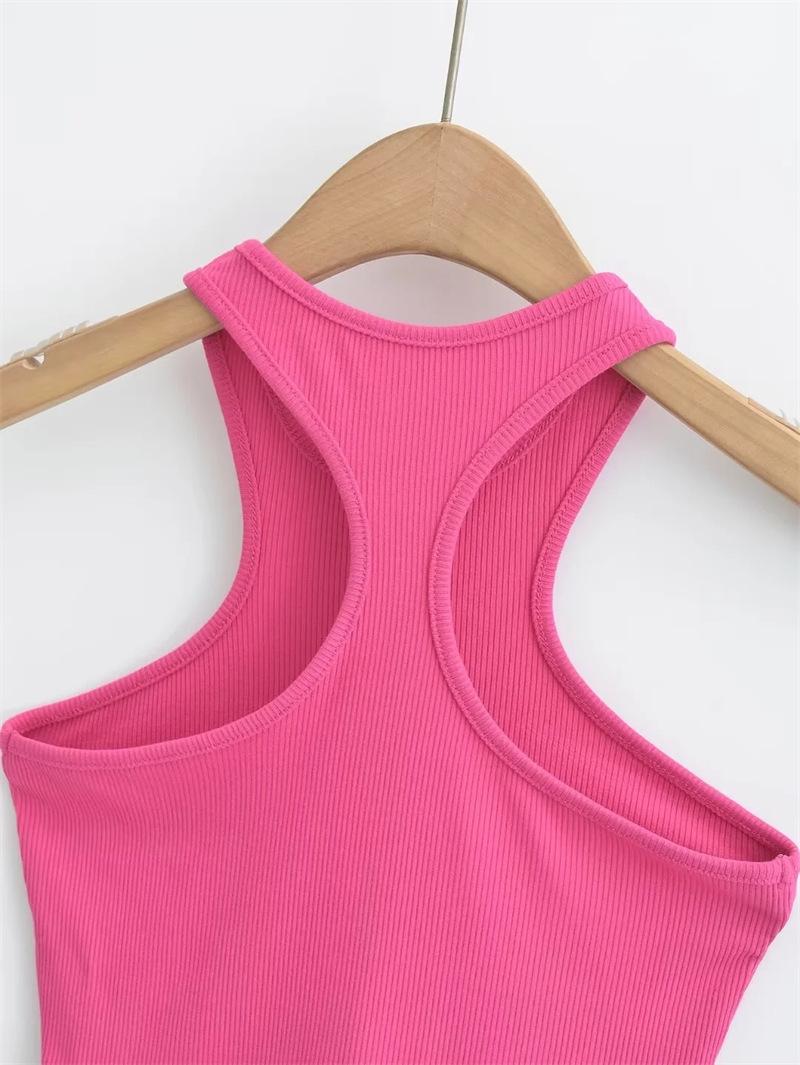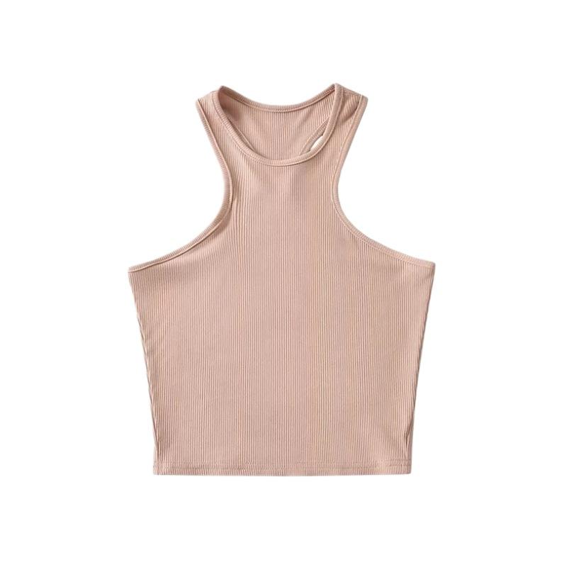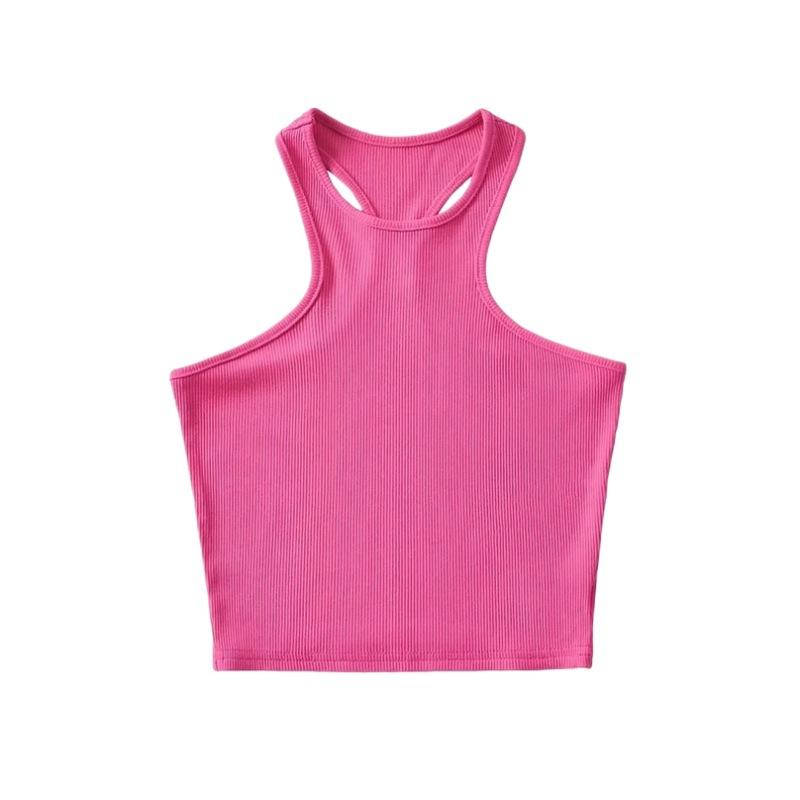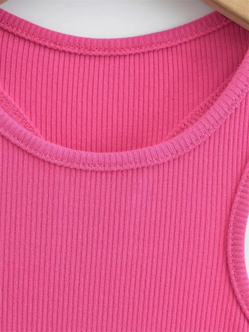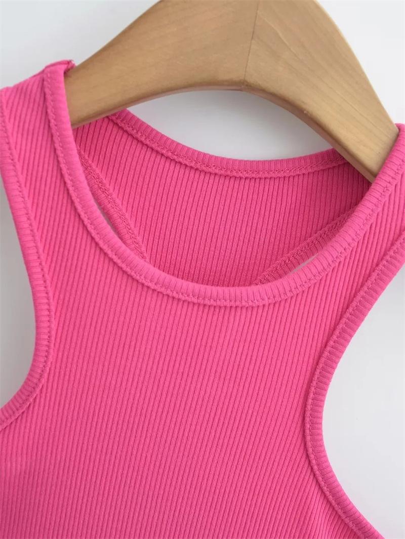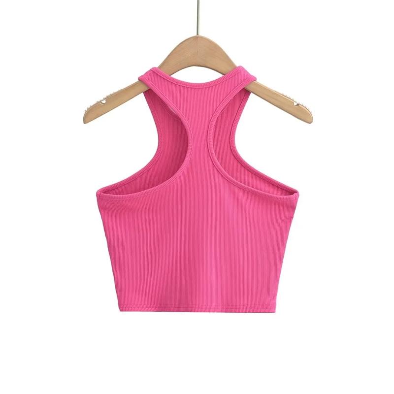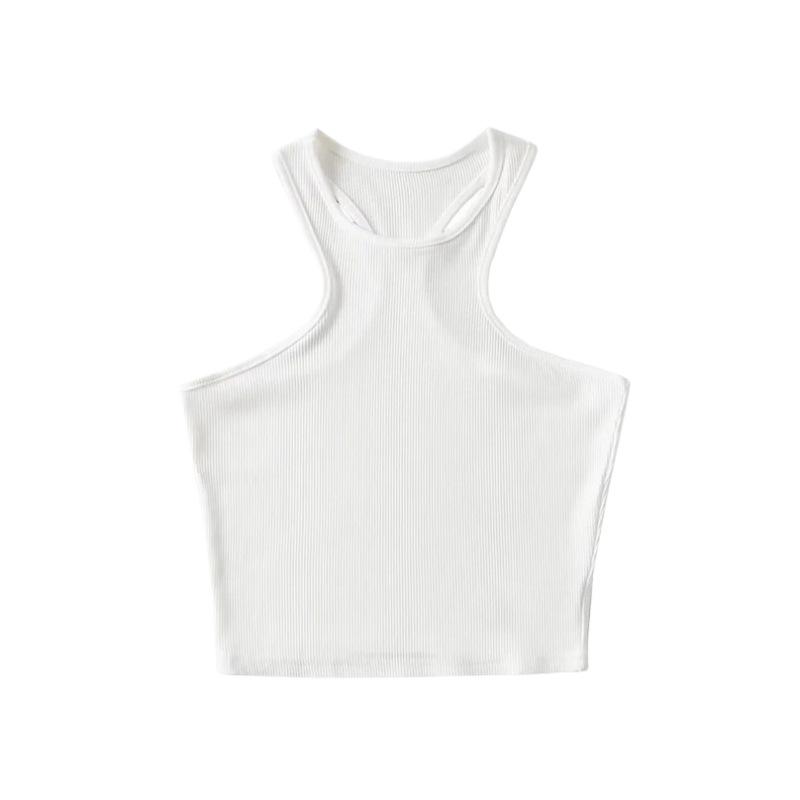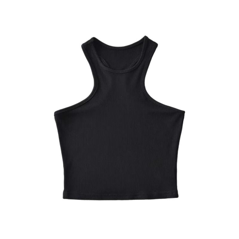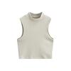 Chaleco de nicho estilo americano con cuello redondo en forma de I para mujer, básico, elástico, combinable, ajustado, de cintura alta, corto.
