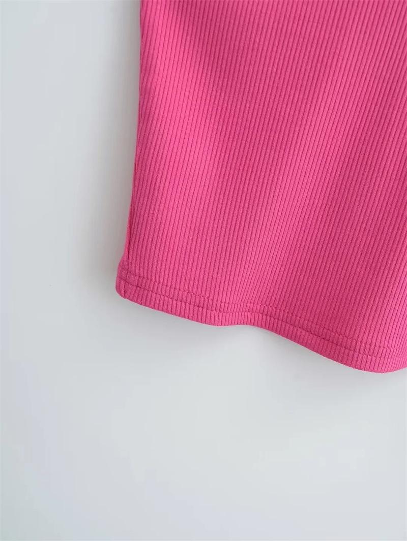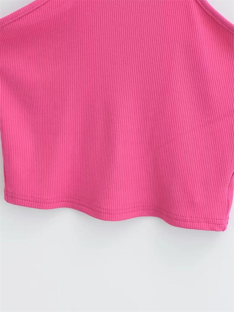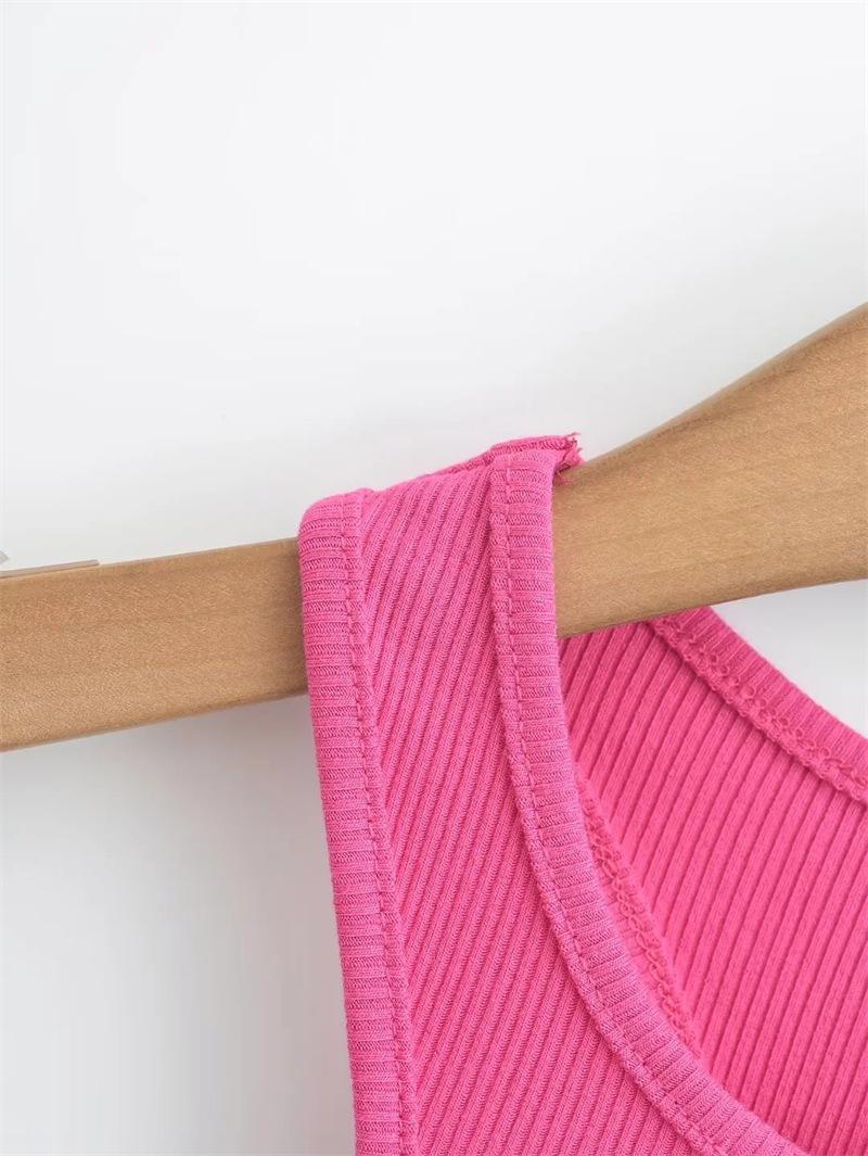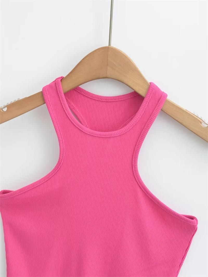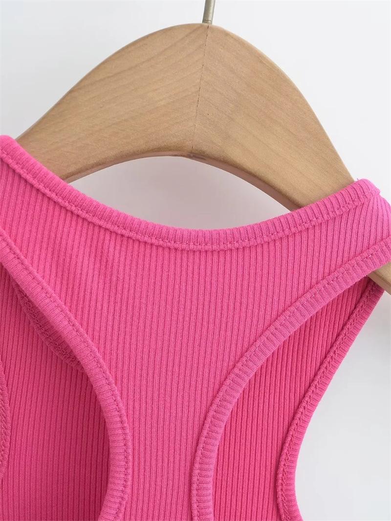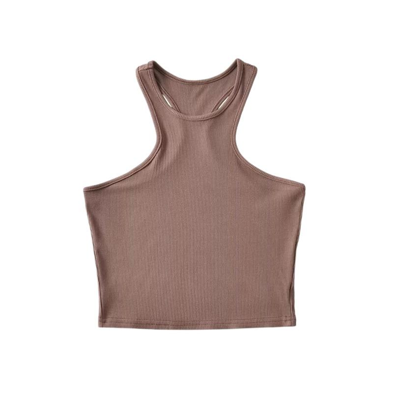 Chaleco de nicho estilo americano con cuello redondo en forma de I para mujer, básico, elástico, combinable, ajustado, de cintura alta, corto.