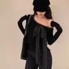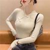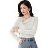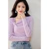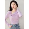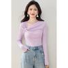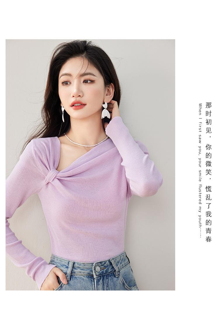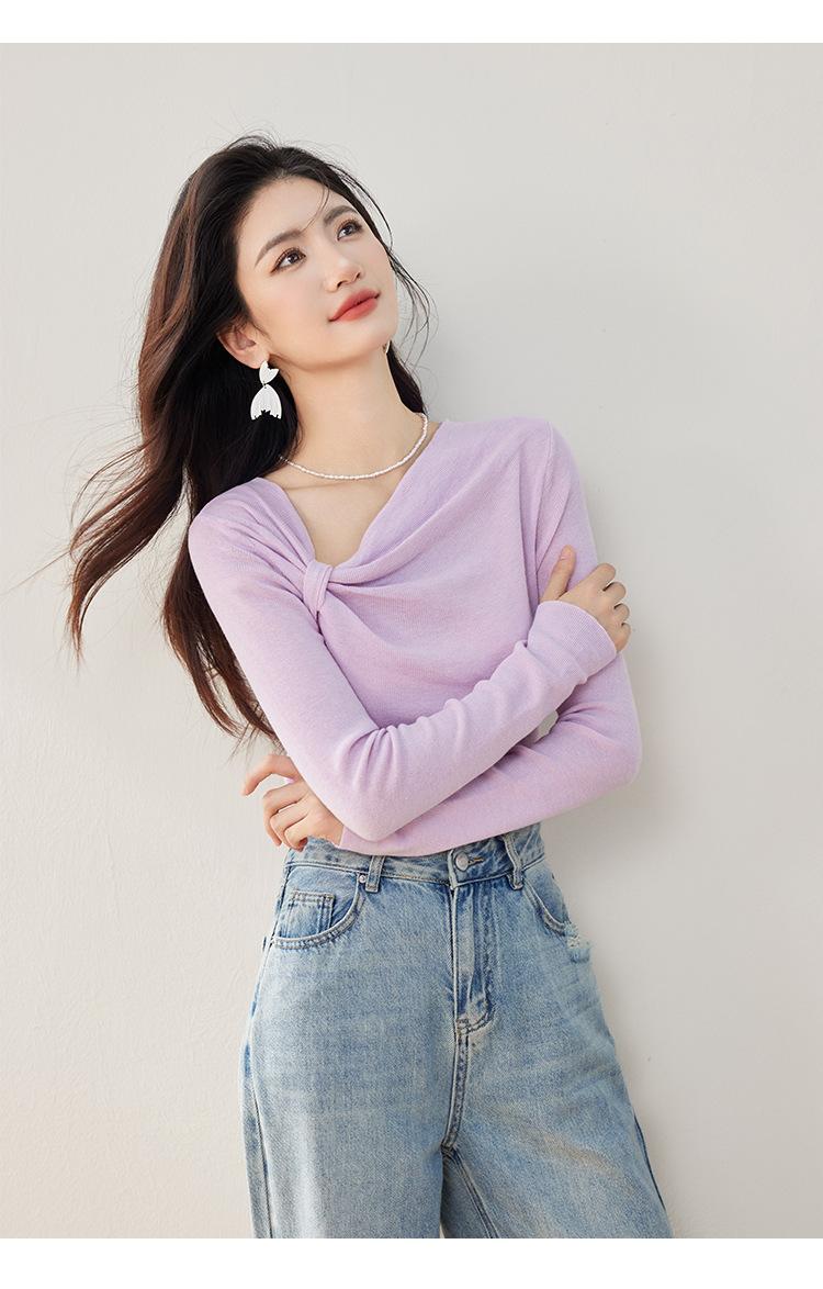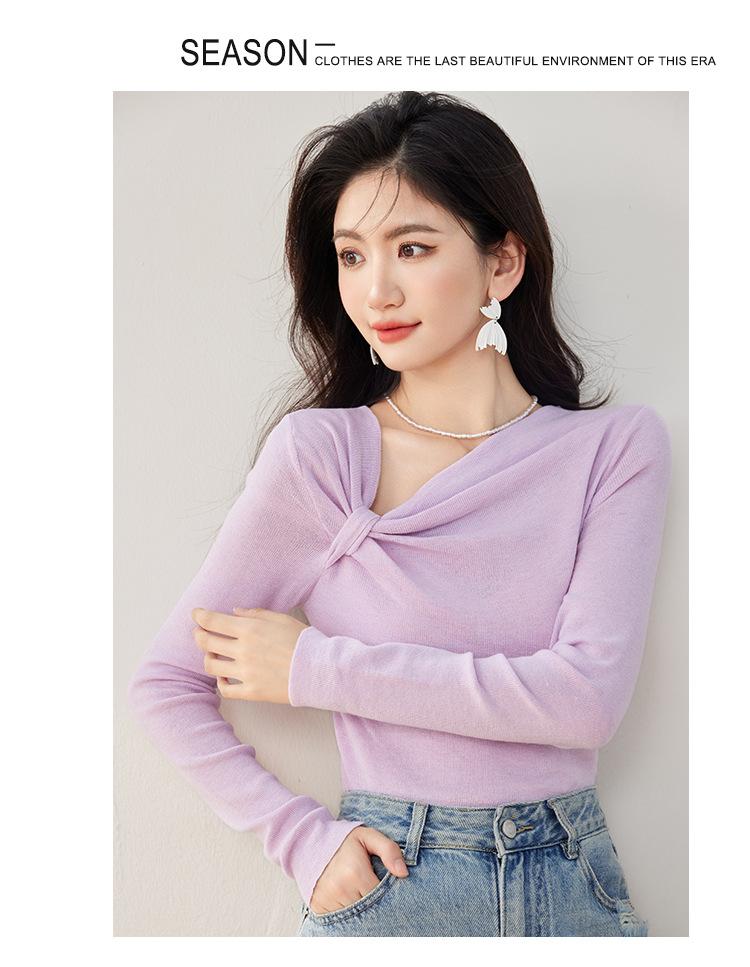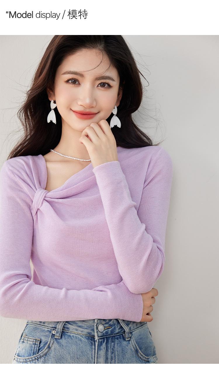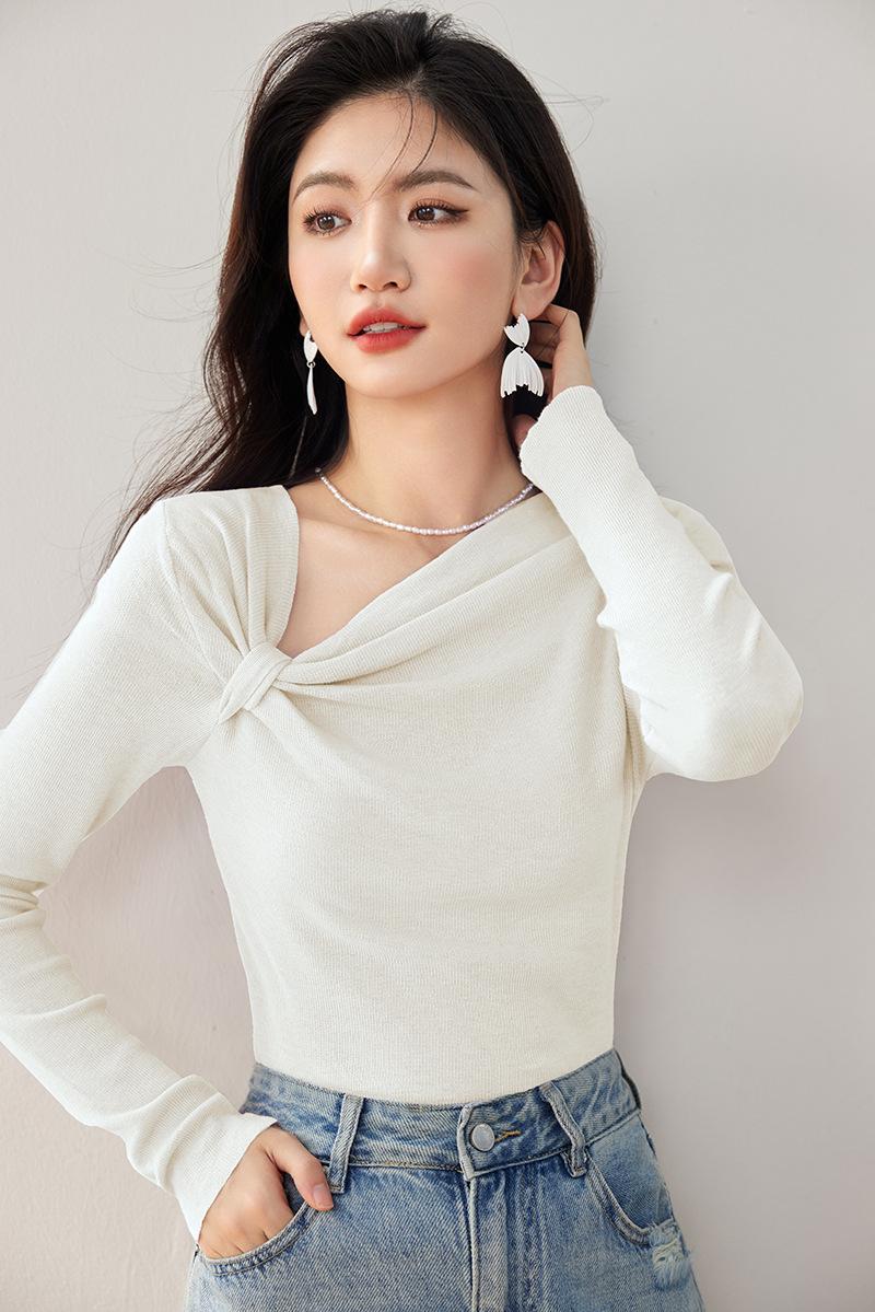 Suéter de punto con diseño irregular plisado para mujer, top básico de manga larga estilo retro francés, otoño 2024
