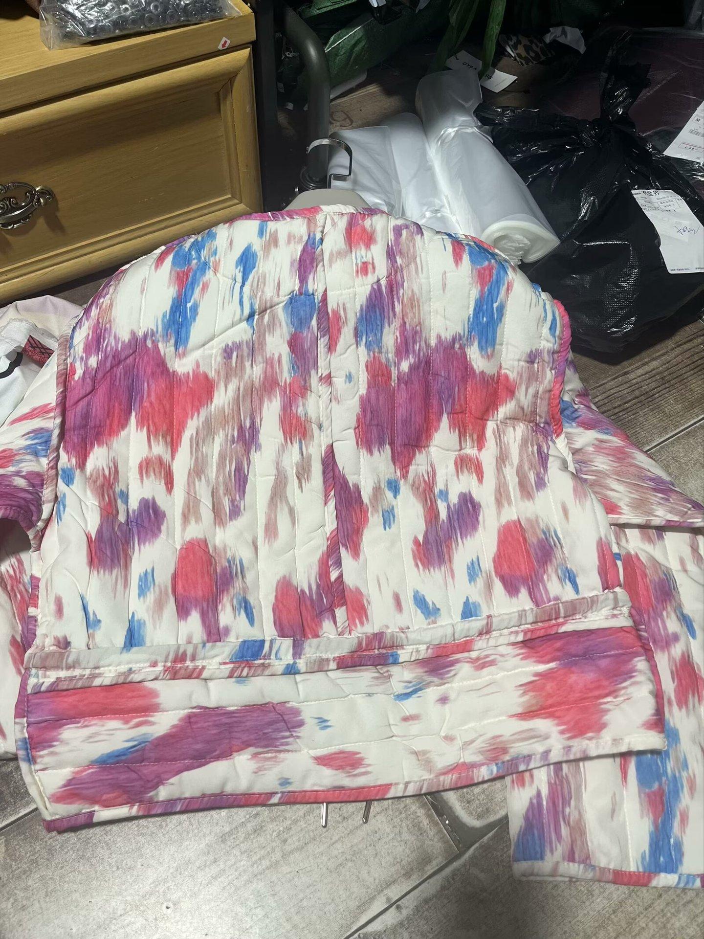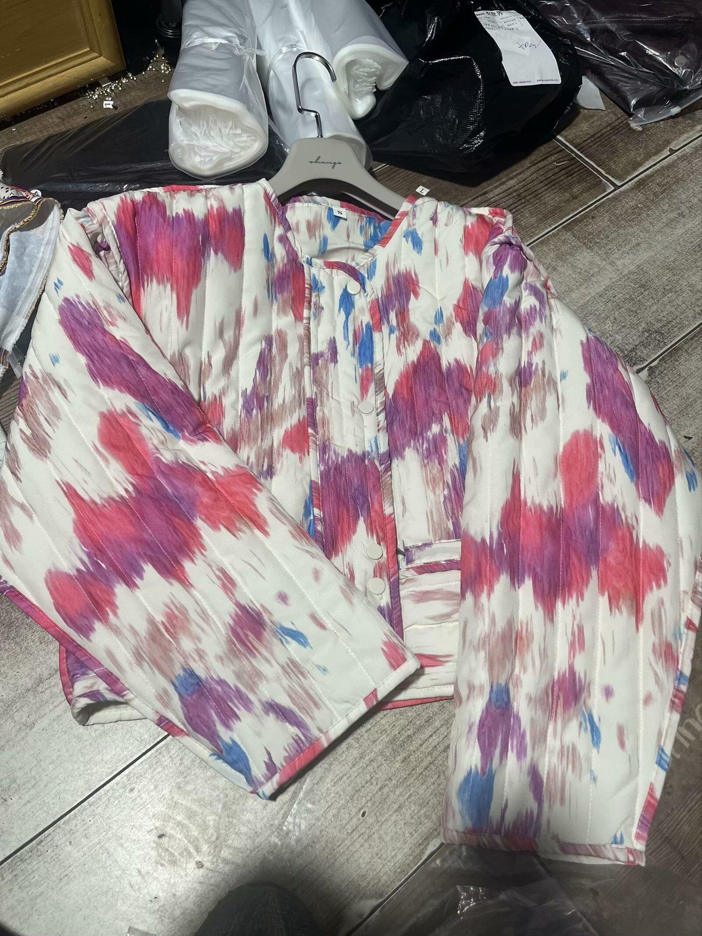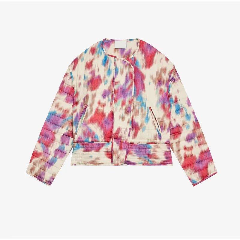 Amazon comercio exterior transfronterizo otoño e invierno 2024 nuevo abrigo cálido de manga larga teñido anudado corto acolchado de algodón para mujer europea y americana