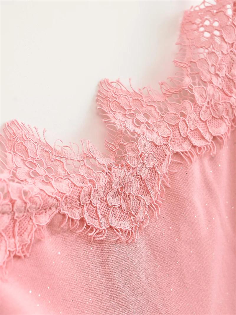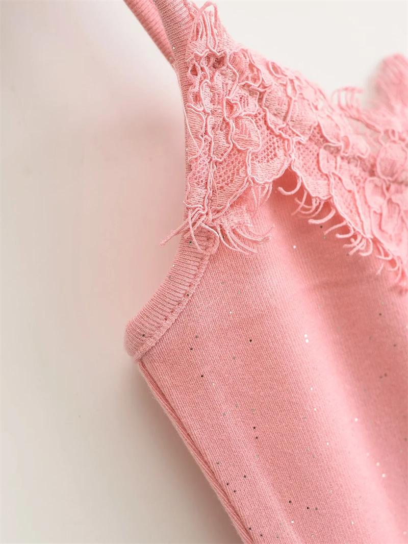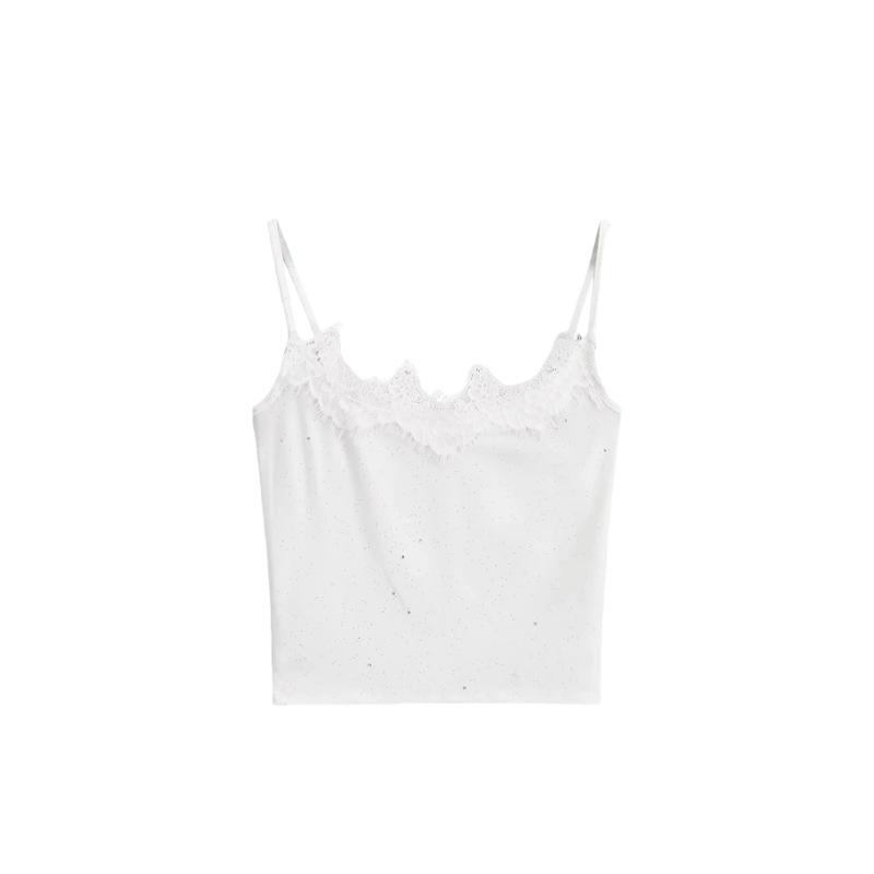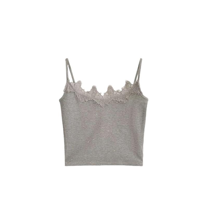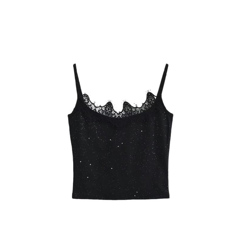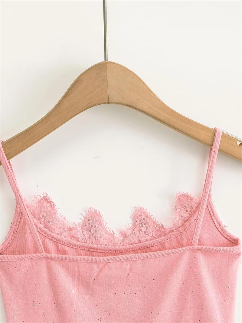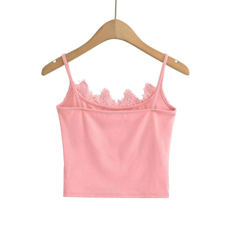 Camisola Brillante con Costuras de Encaje Puro Deseo Sexy Spice Girl Outfit Base Top Corto Ultracorto