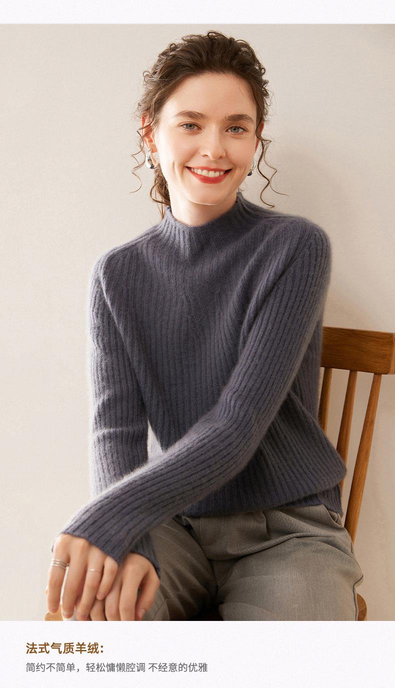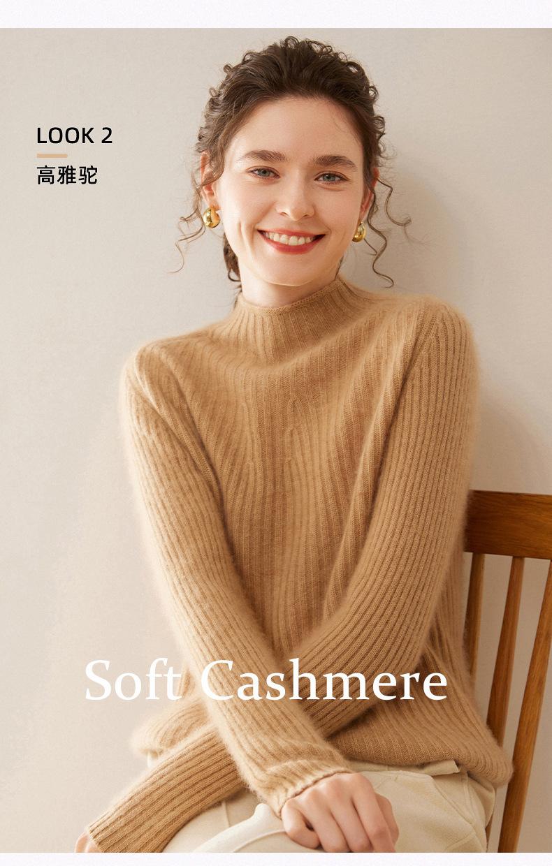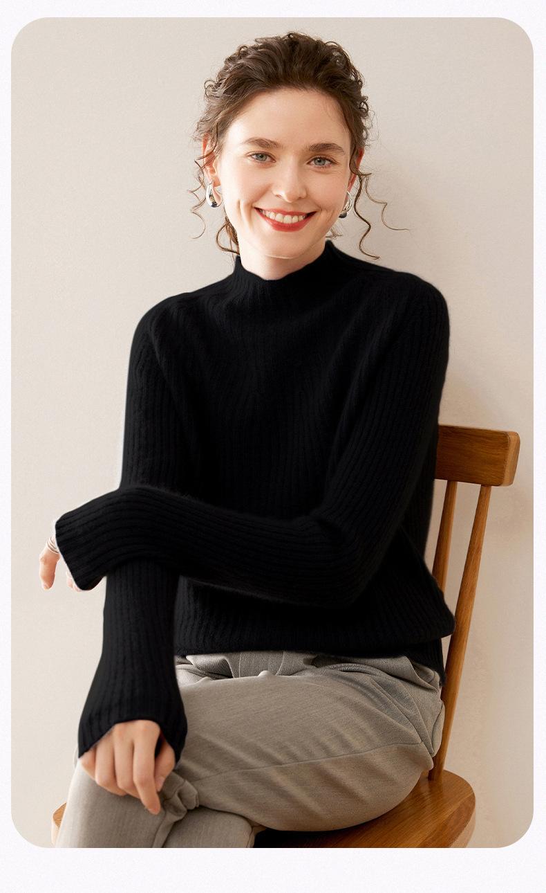 Suéter de cachemira ajustado de cuello alto para mujer, nuevo jersey de color liso ajustado, camisa interior de punto corta