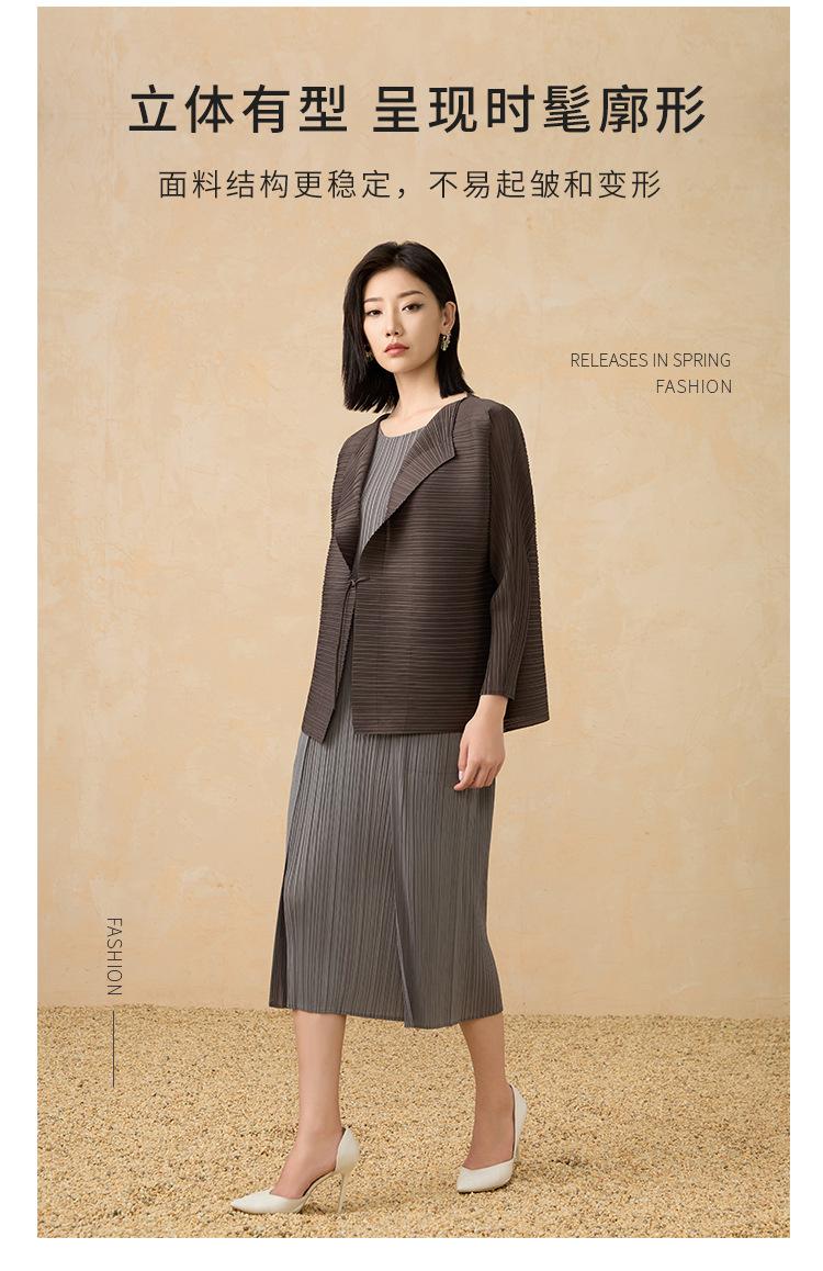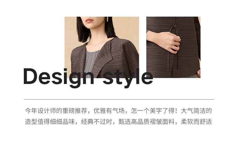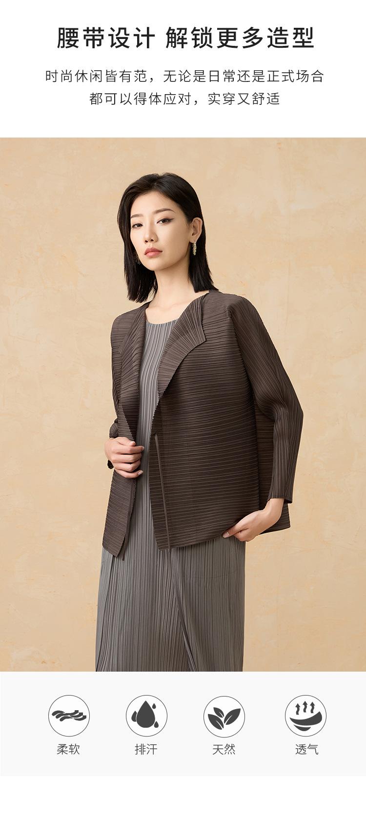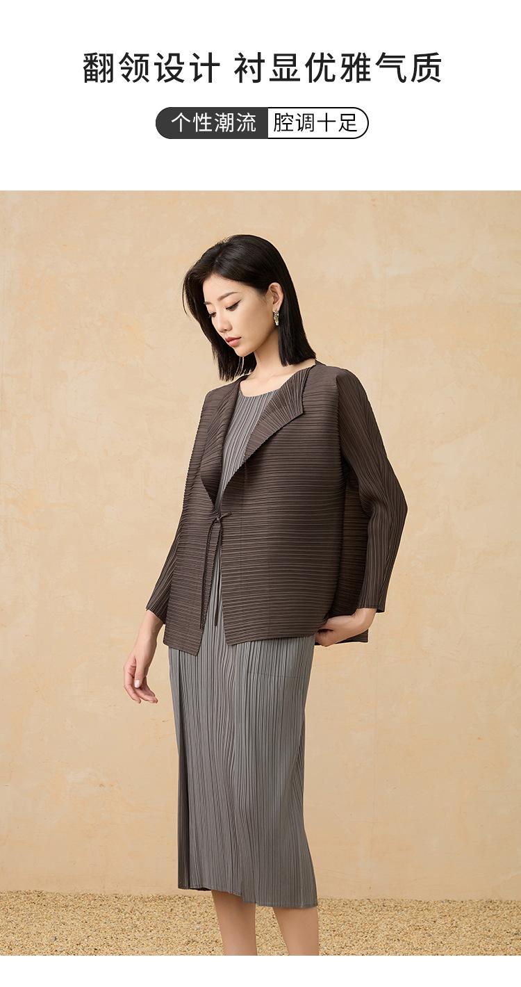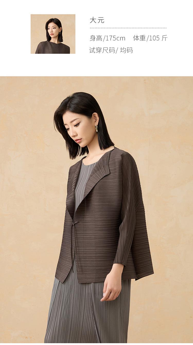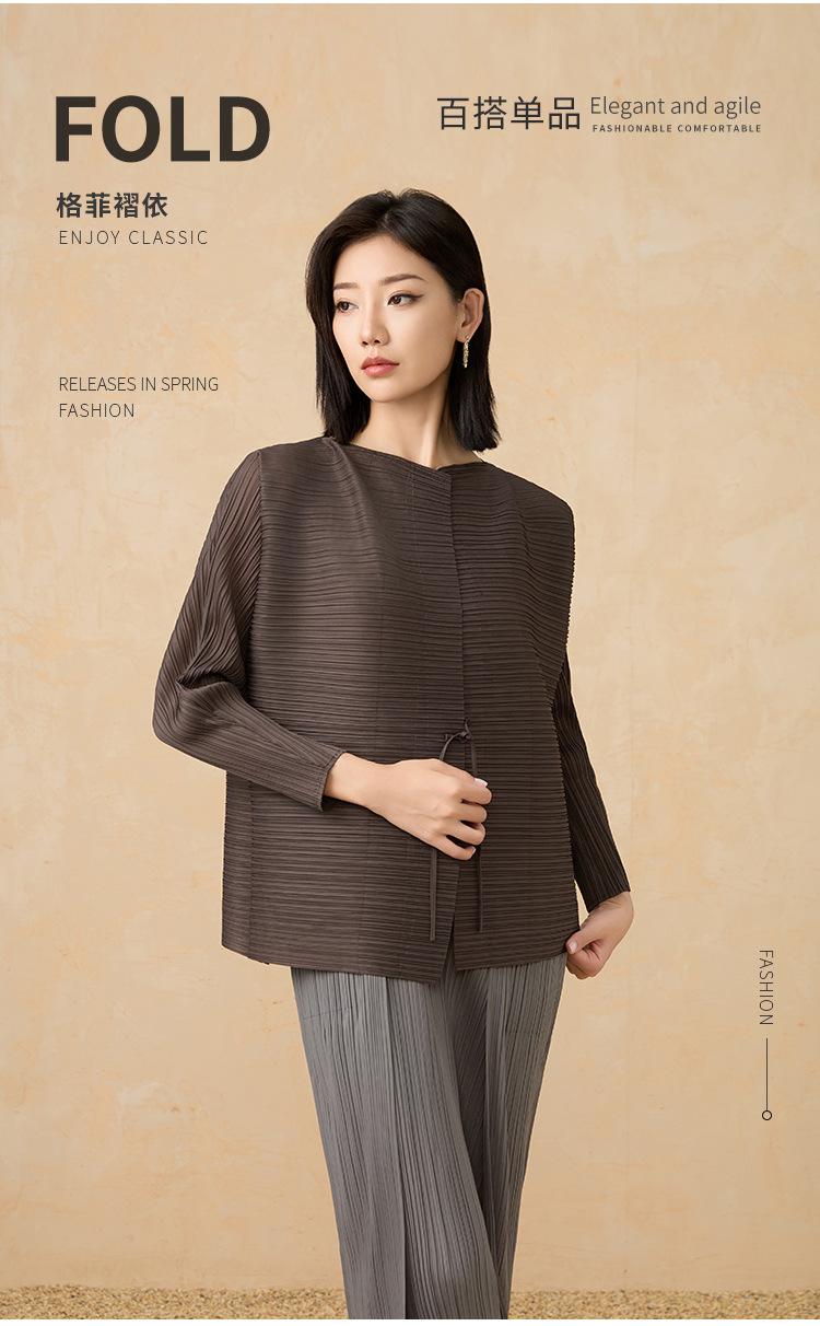 Chaqueta Plisada de Alta Gama 2025 Otoño e Invierno Nuevo Estilo de Alta Gama Manga Larga Solapa con Cordones Talla Grande Suelta y Esponjosa