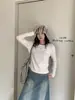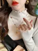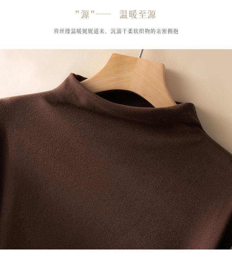Camiseta de terciopelo de doble cara con cuello medio alto y base cálida para mujer, top de otoño e invierno, camiseta de manga larga ajustada y adelgazante de estilo extranjero.