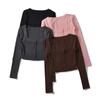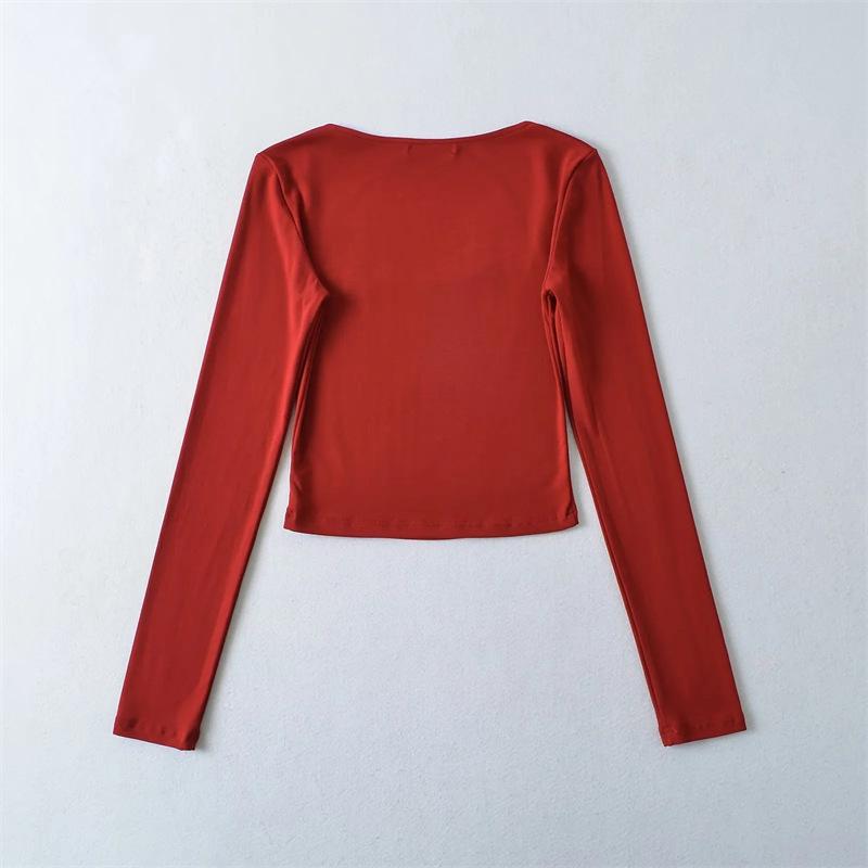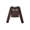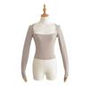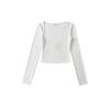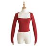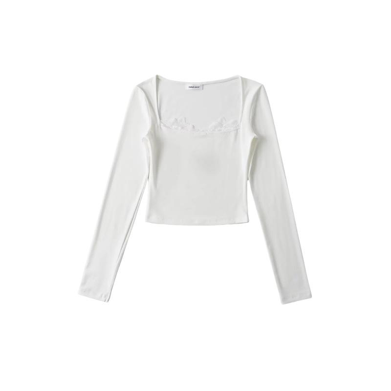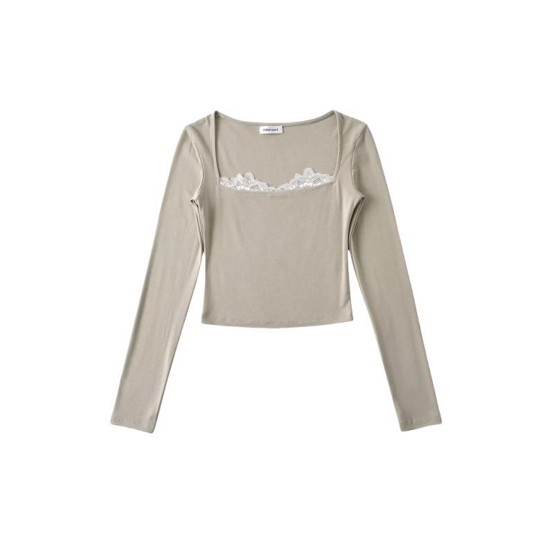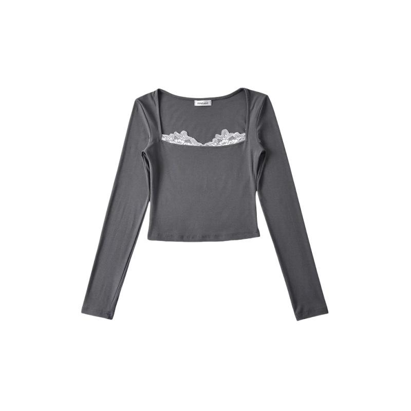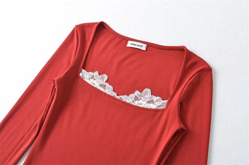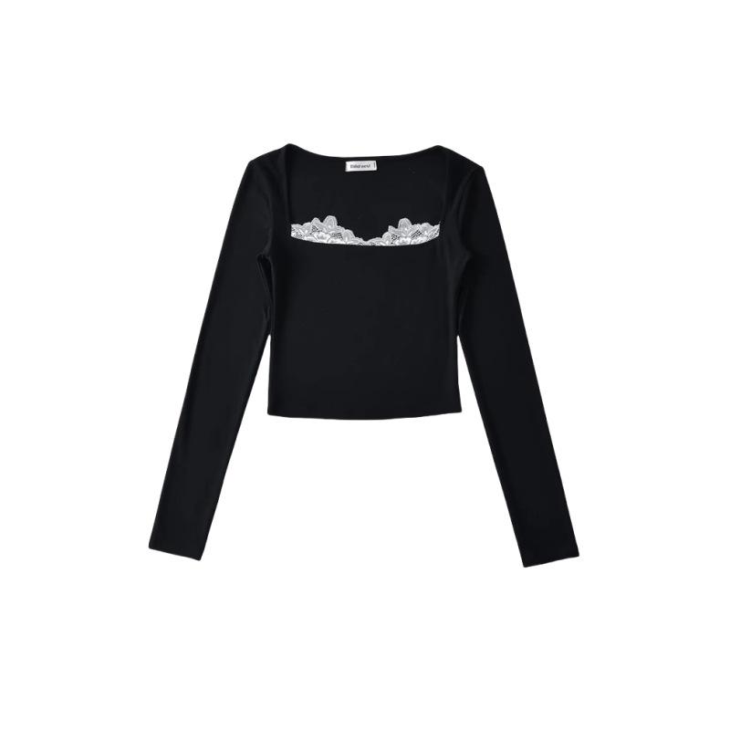 Camiseta de manga larga con cuello cuadrado y costuras de encaje, estilo Pure Desire, para mujer, estilo nicho, de cintura alta, corta, con el ombligo al descubierto.