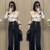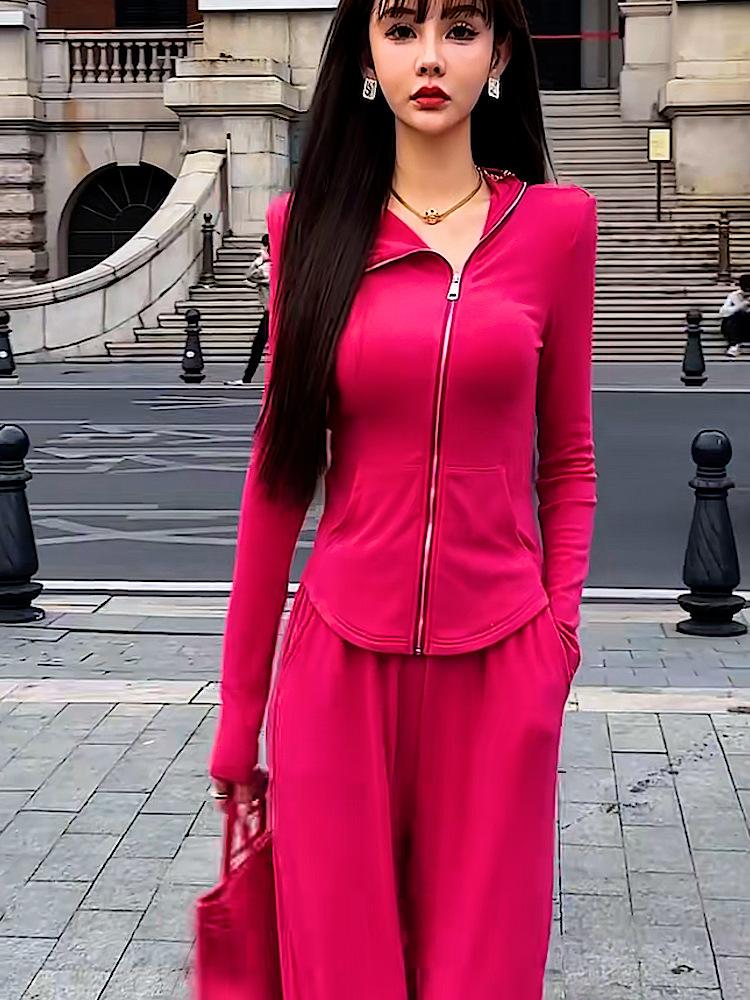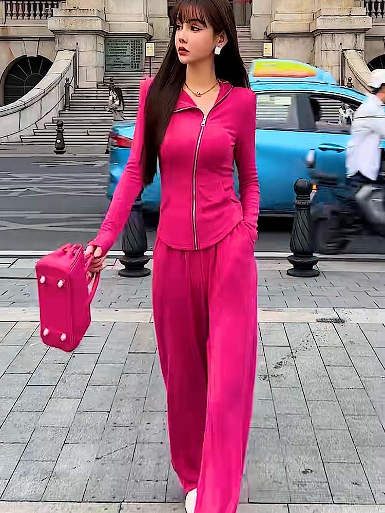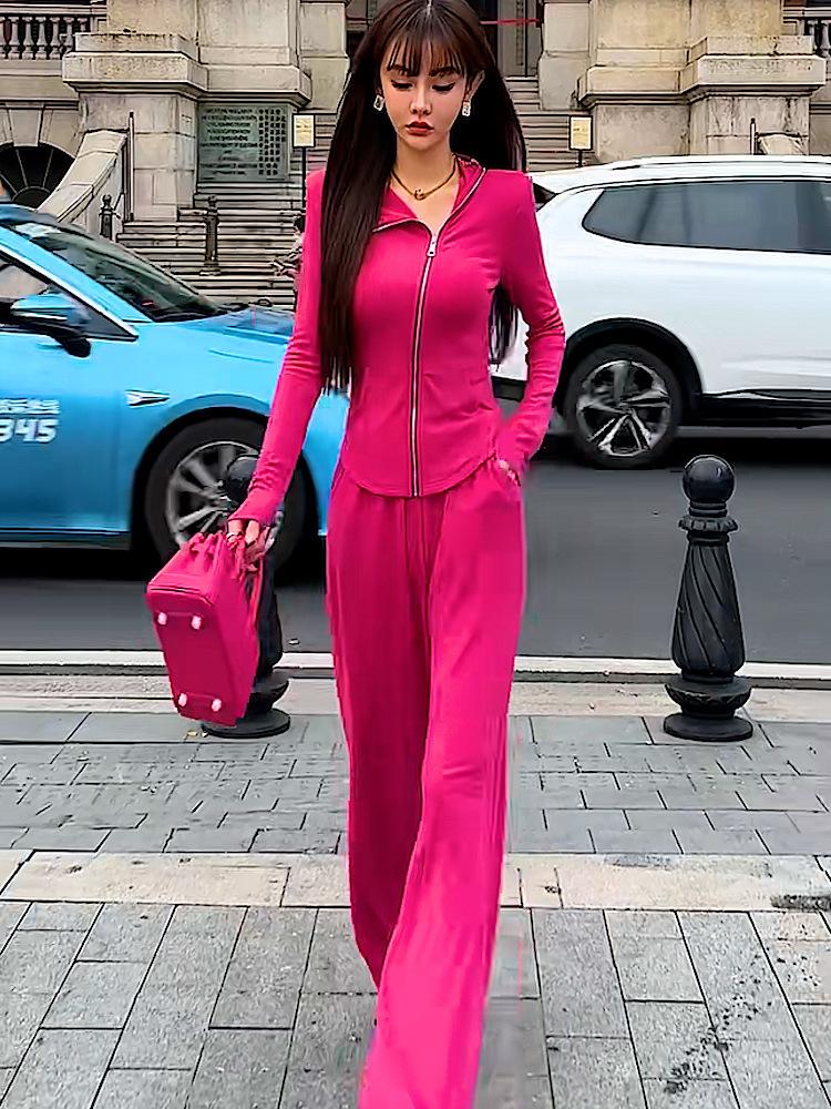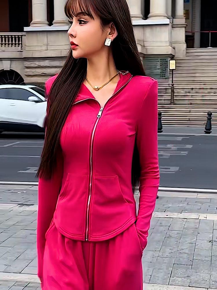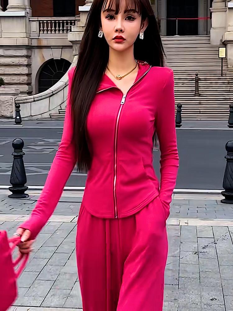 Conjunto de dos piezas de top de manga larga ajustado con cremallera y diseño antiedad de estilo coreano para mujer, nuevo estilo 2023, elegante.