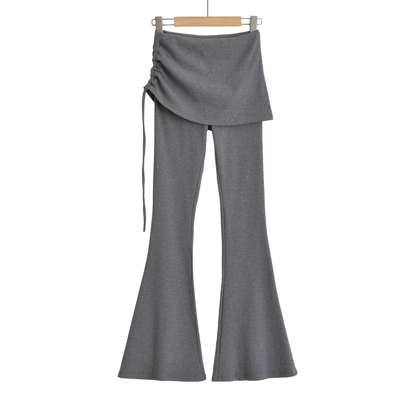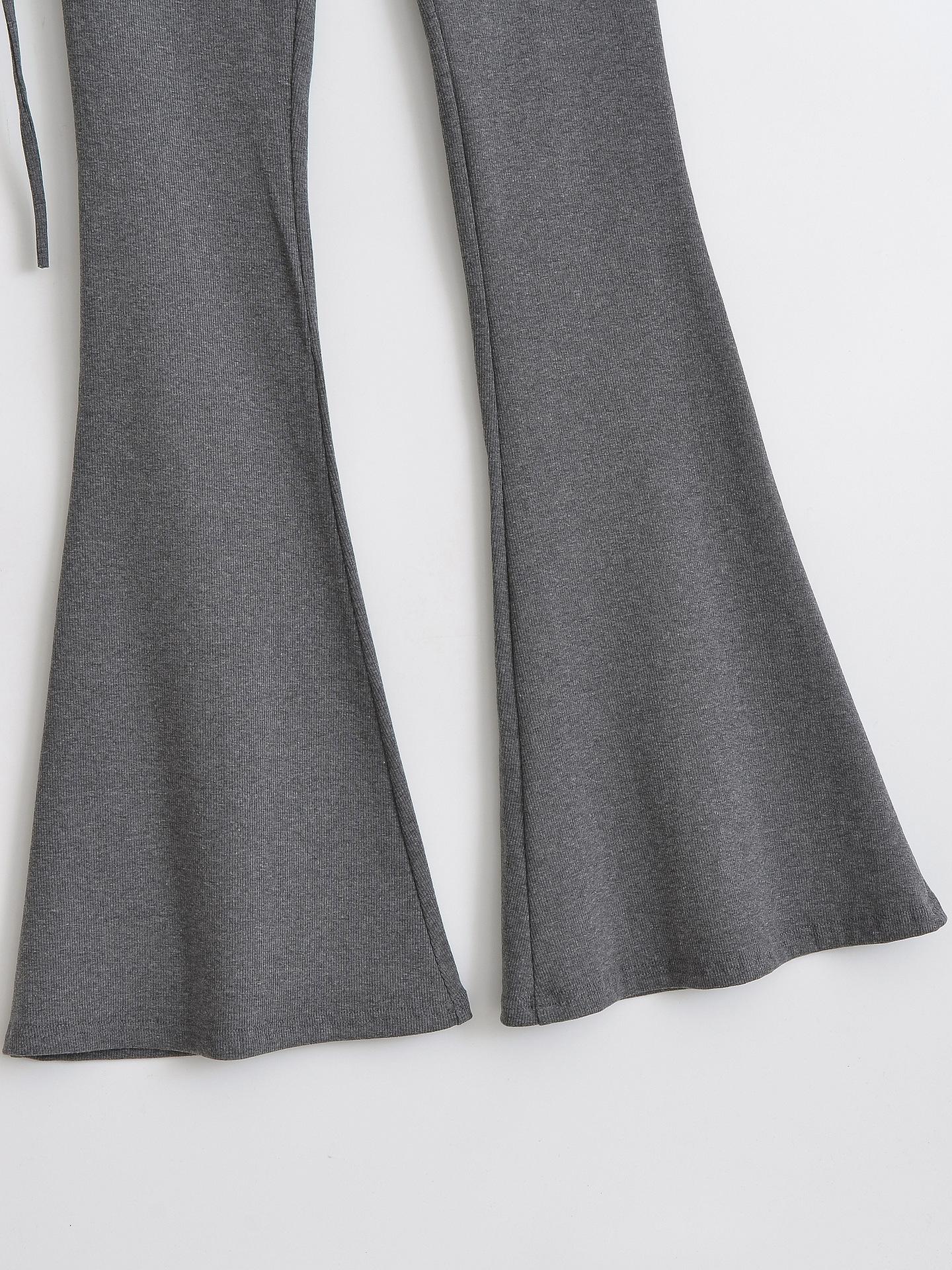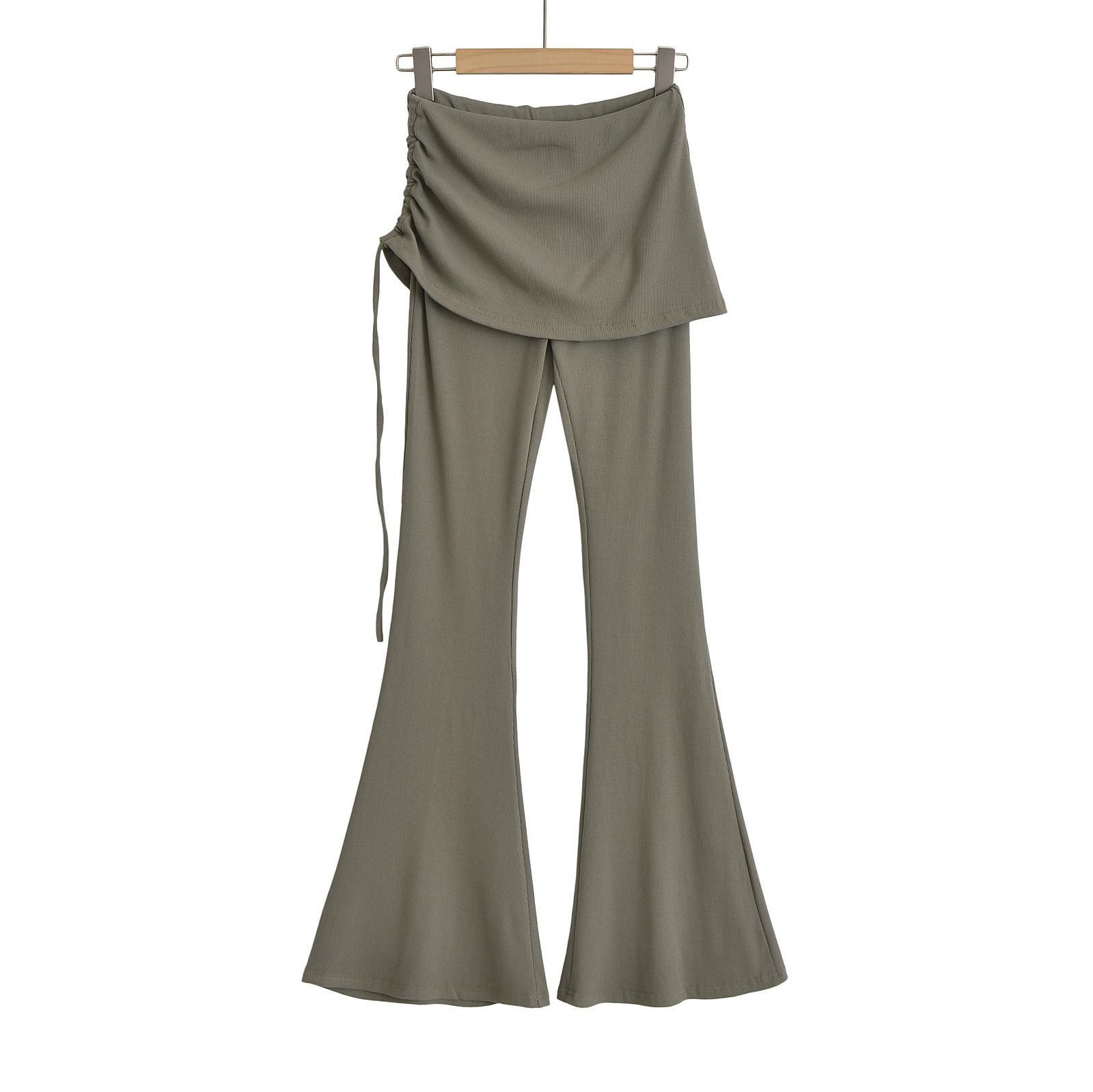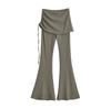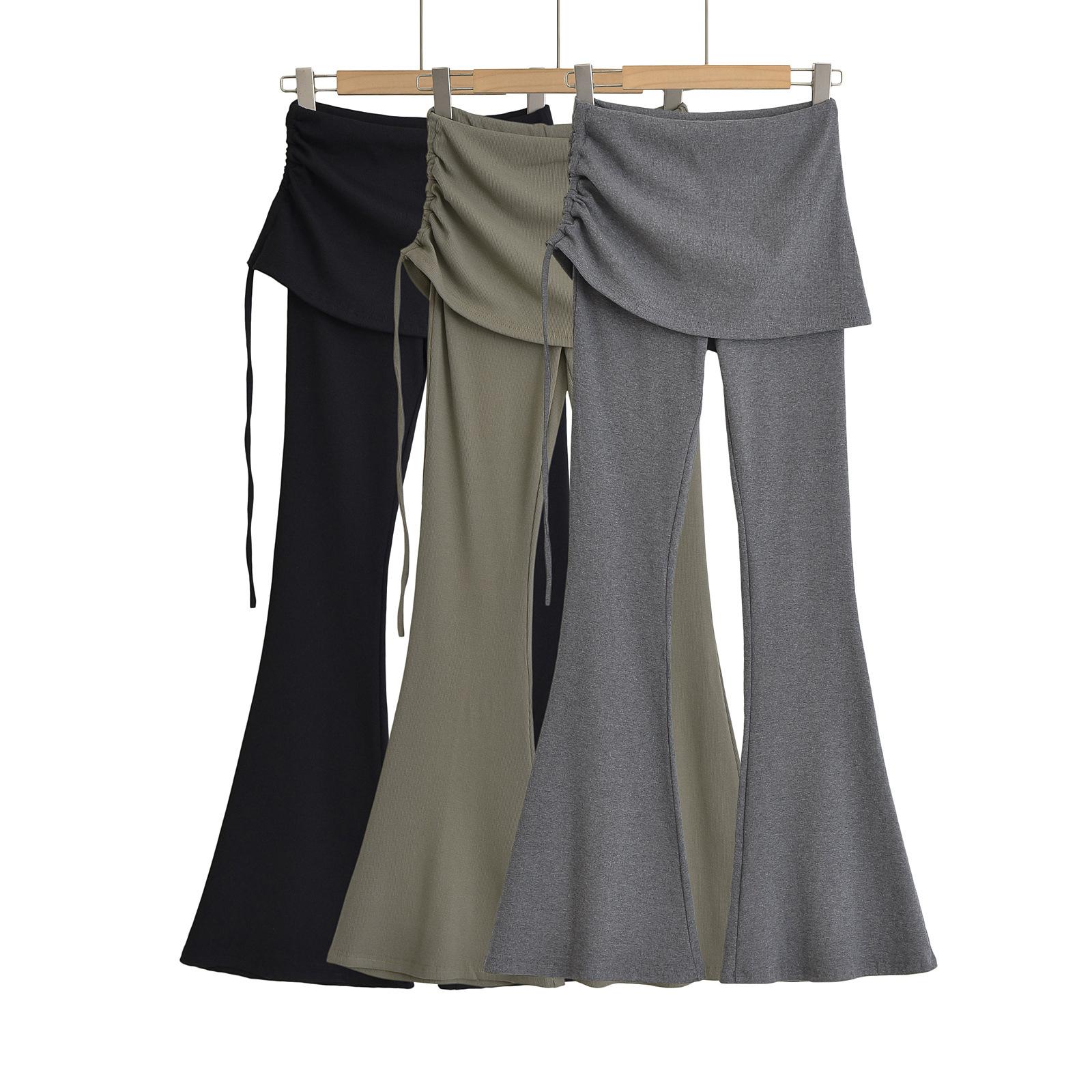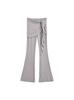 121-Pantalones acampanados de encaje con cordón plisado de estilo europeo y americano para mujer, otoño 2024, nuevos pantalones casuales ajustados de cintura alta para chica sexy