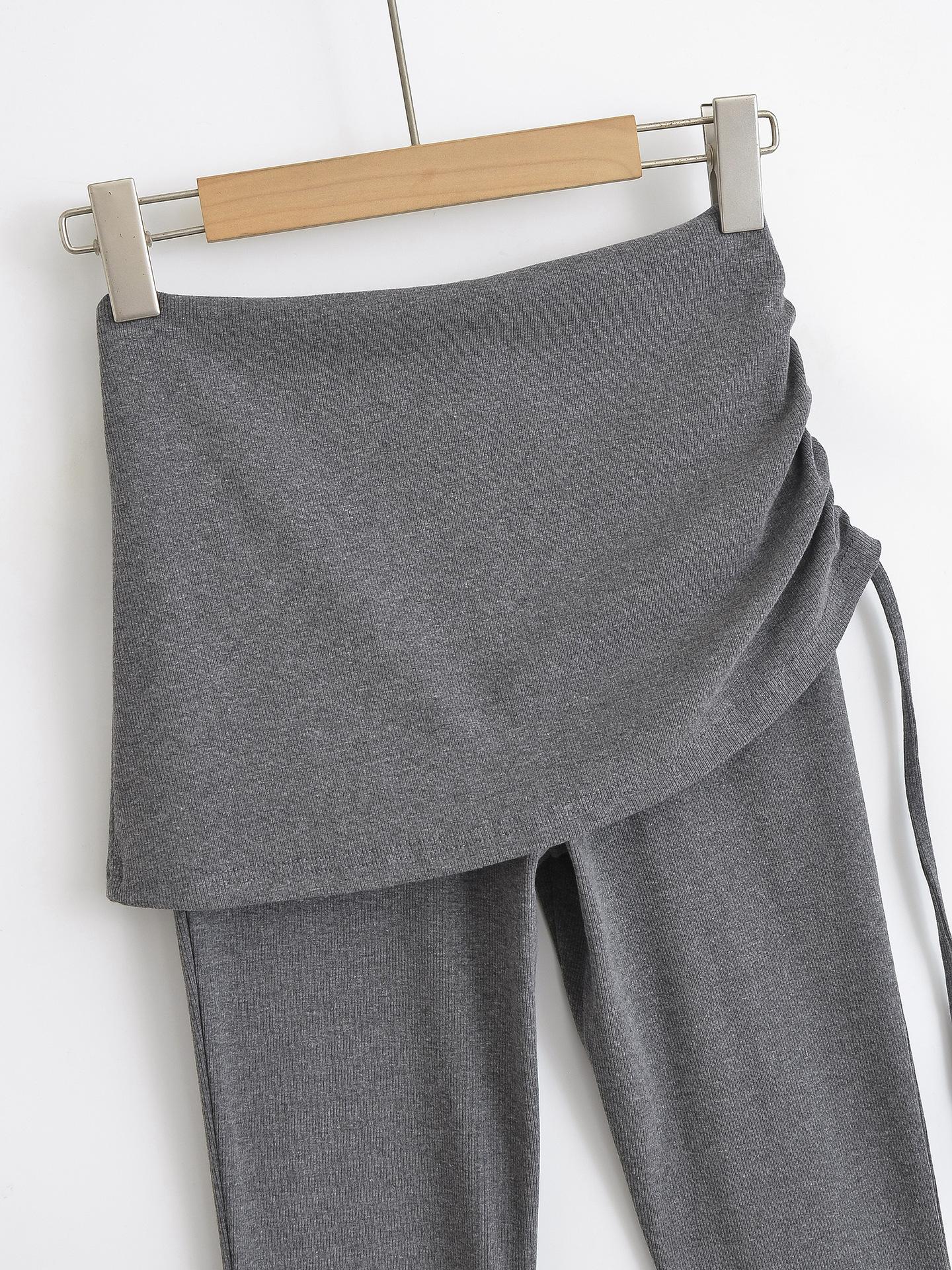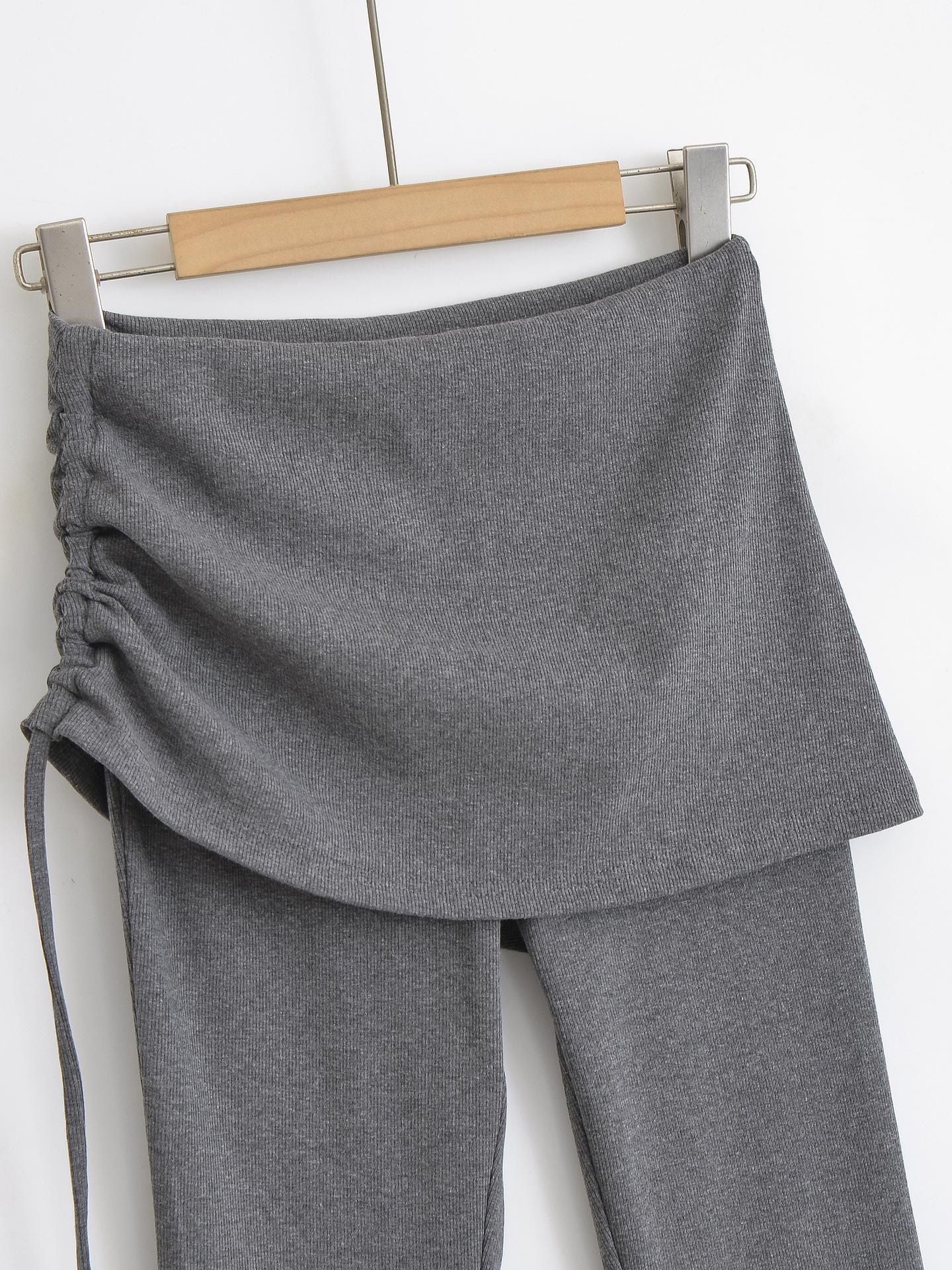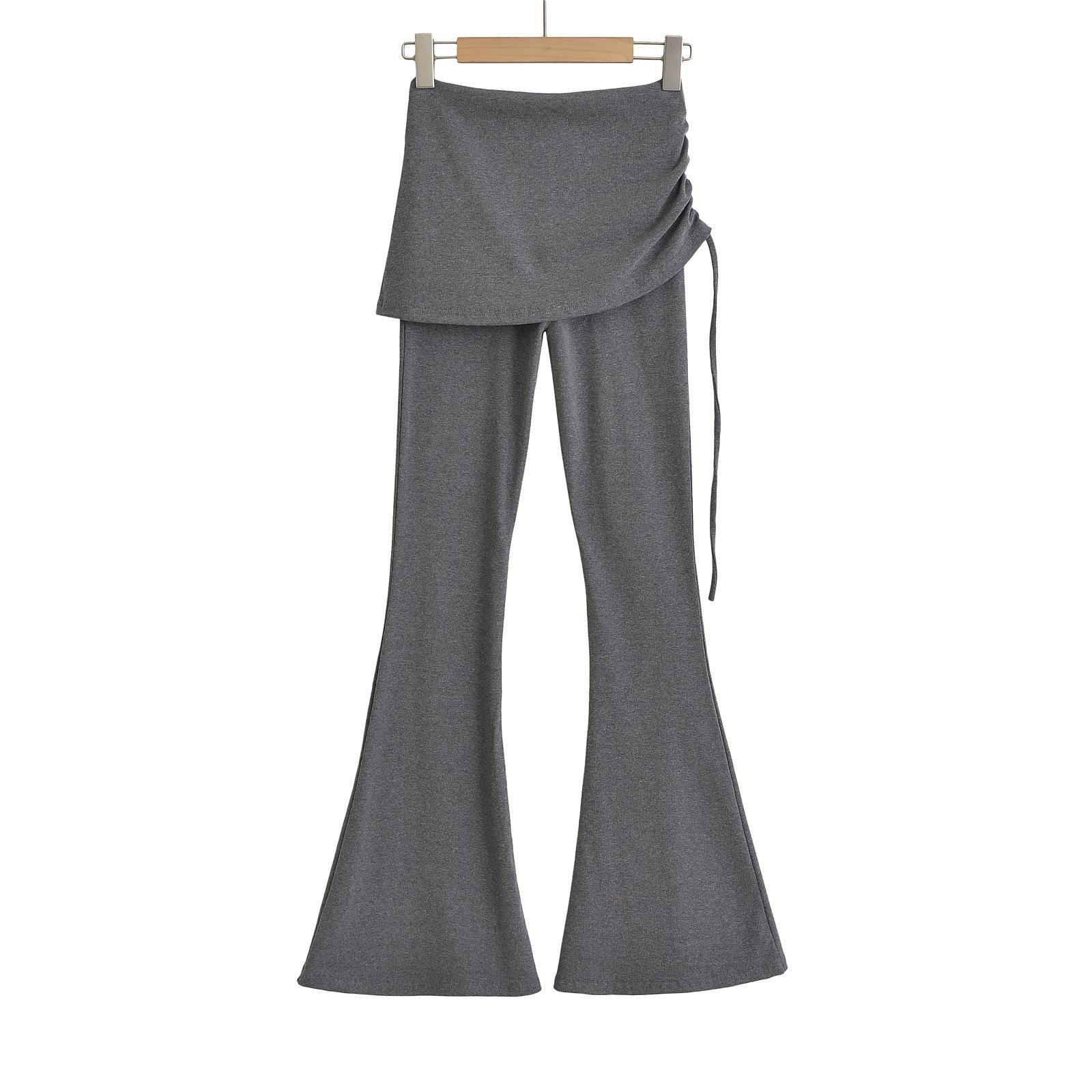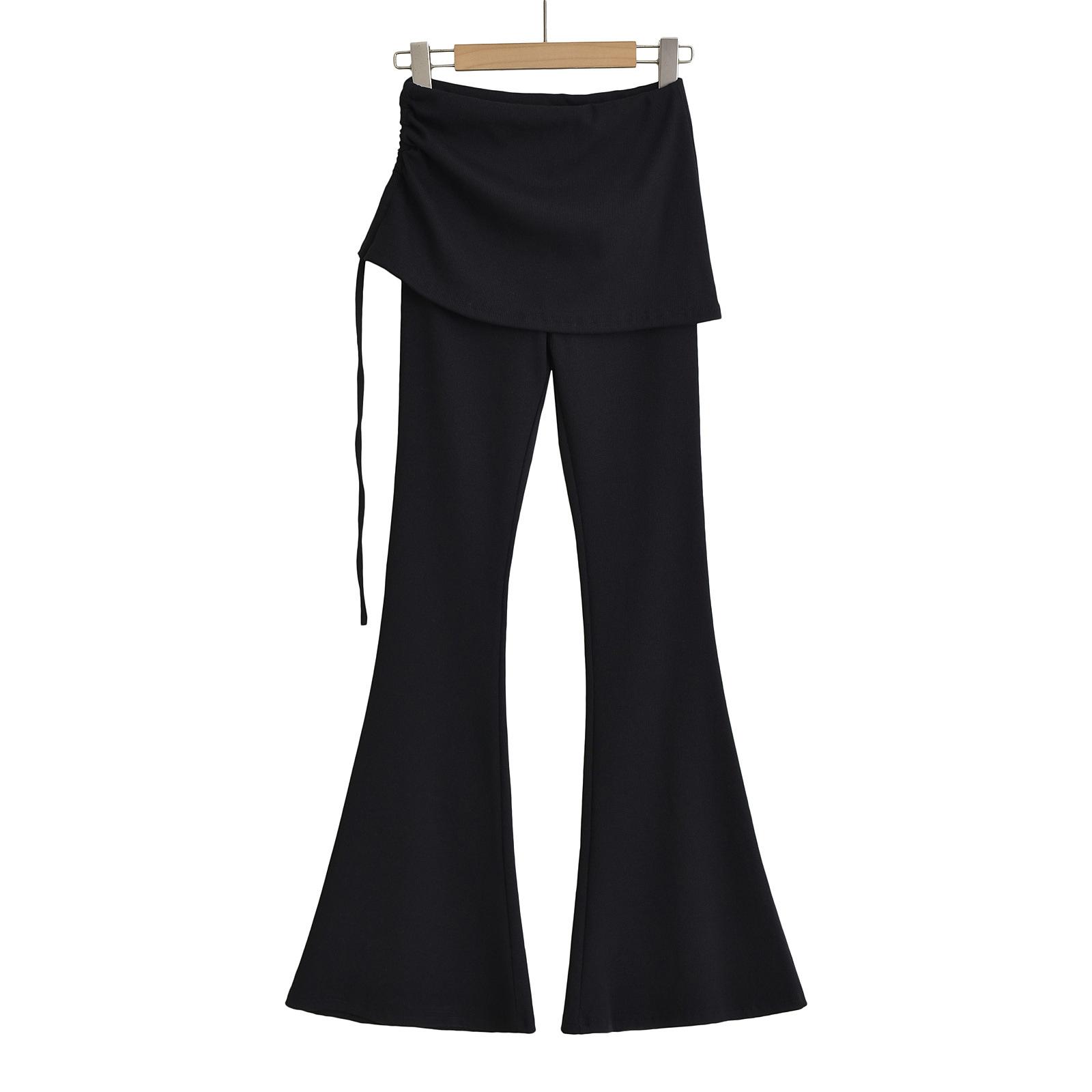 121-Pantalones acampanados de encaje con cordón plisado de estilo europeo y americano para mujer, otoño 2024, nuevos pantalones casuales ajustados de cintura alta para chica sexy