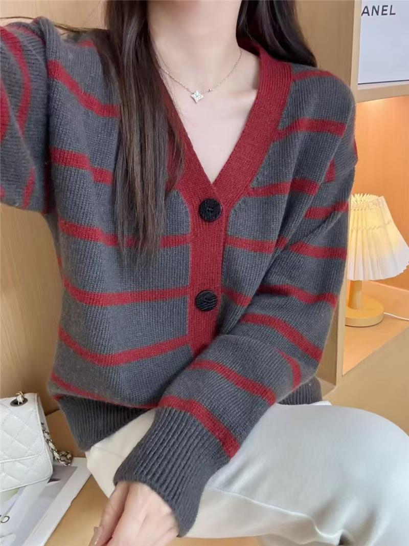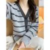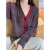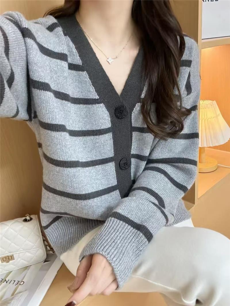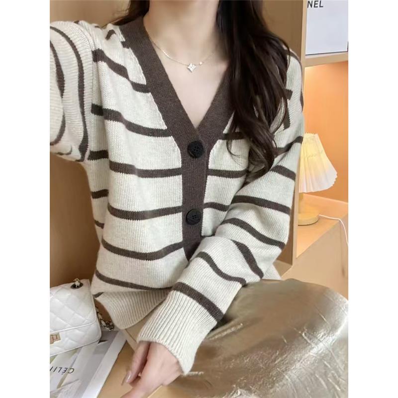 Suéter de Rayas para Mujer de Principios de Otoño Chaqueta Cárdigan Tejida Ropa Exterior para Mujer 2025 Nueva Primavera y Otoño Ropa Exterior Top Corto