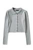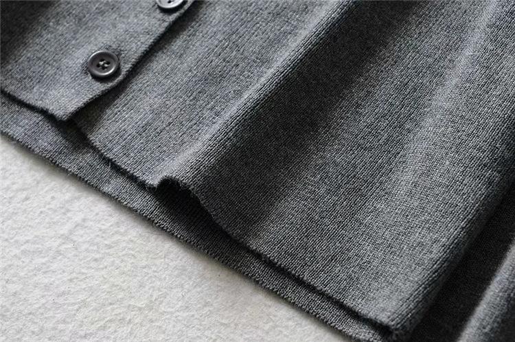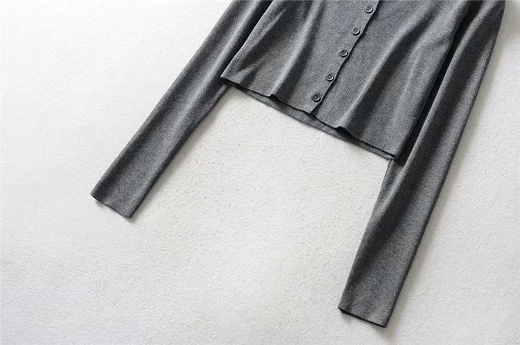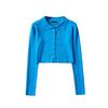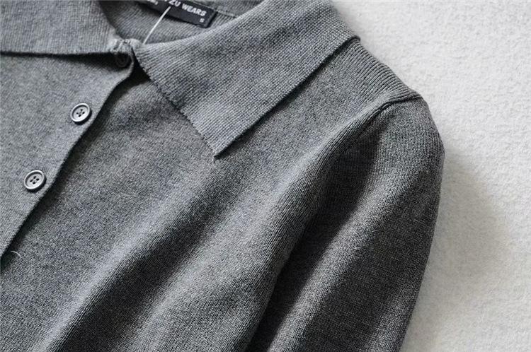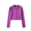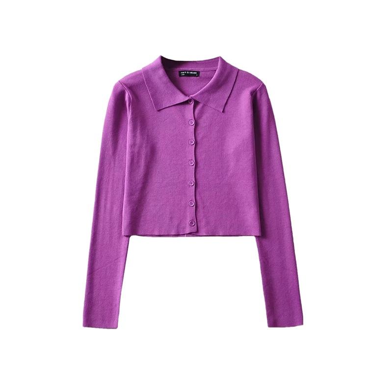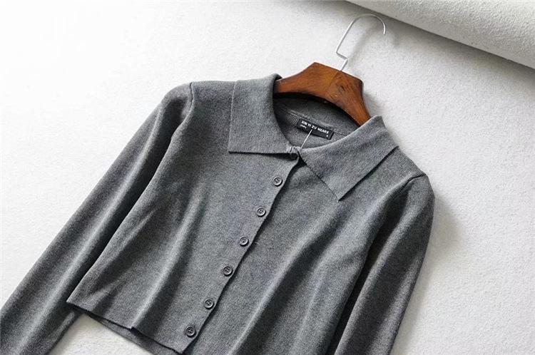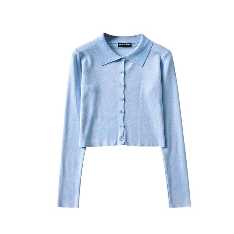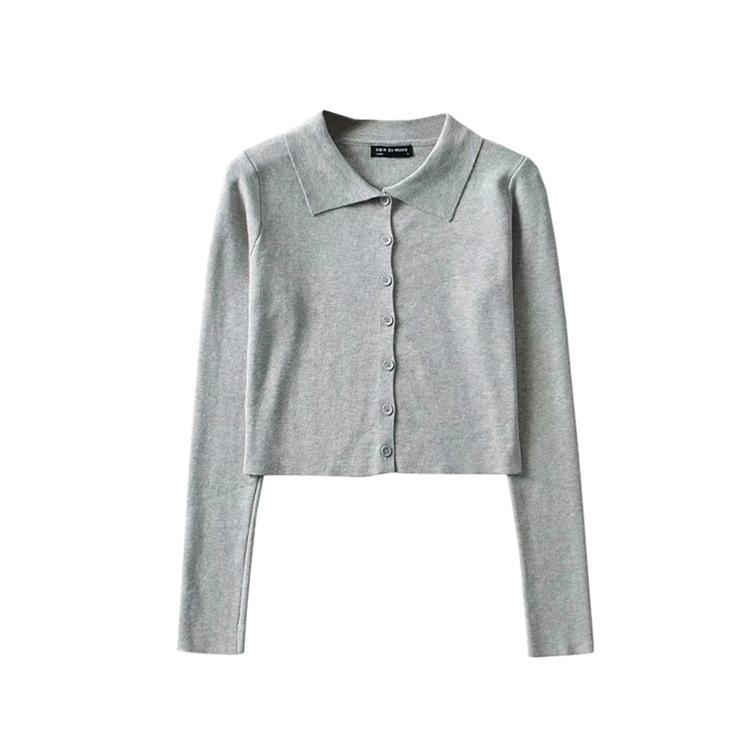 Primavera Nuevo Top de Manga Larga Ajustado para Exterior Estilo Americano Retro Solapa Color Sólido Cárdigan Corto de Cintura Alta Suéter Tejido