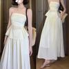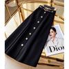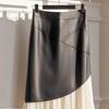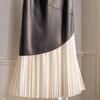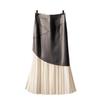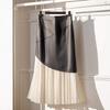 Falda línea A de color contrastante blanco y negro popular de este año para mujer 2024 otoño cintura alta adelgazante cuero falda larga