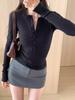 Camiseta de manga larga interior ajustada de alta gama para mujer, ropa de otoño, camisa con botones en los hombros ajustados para mujer
