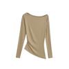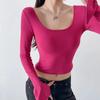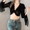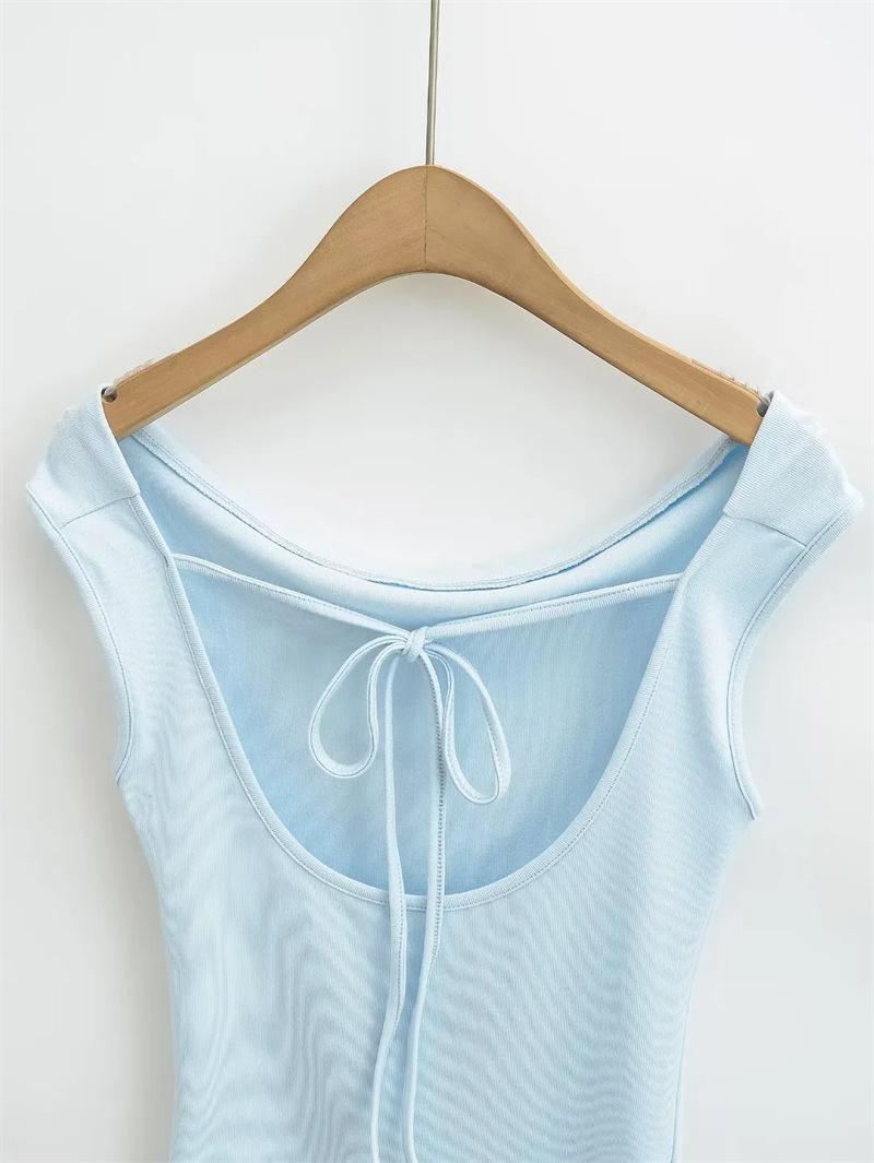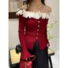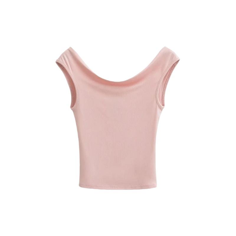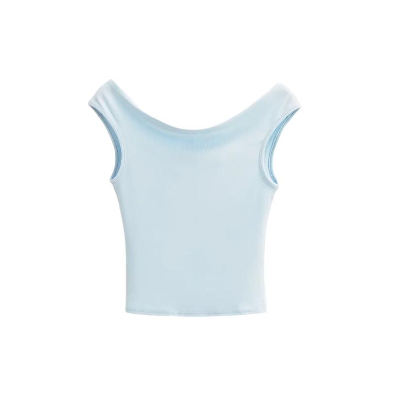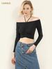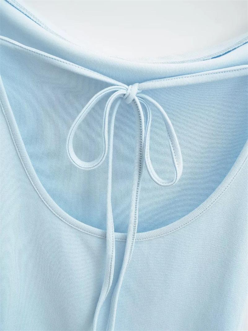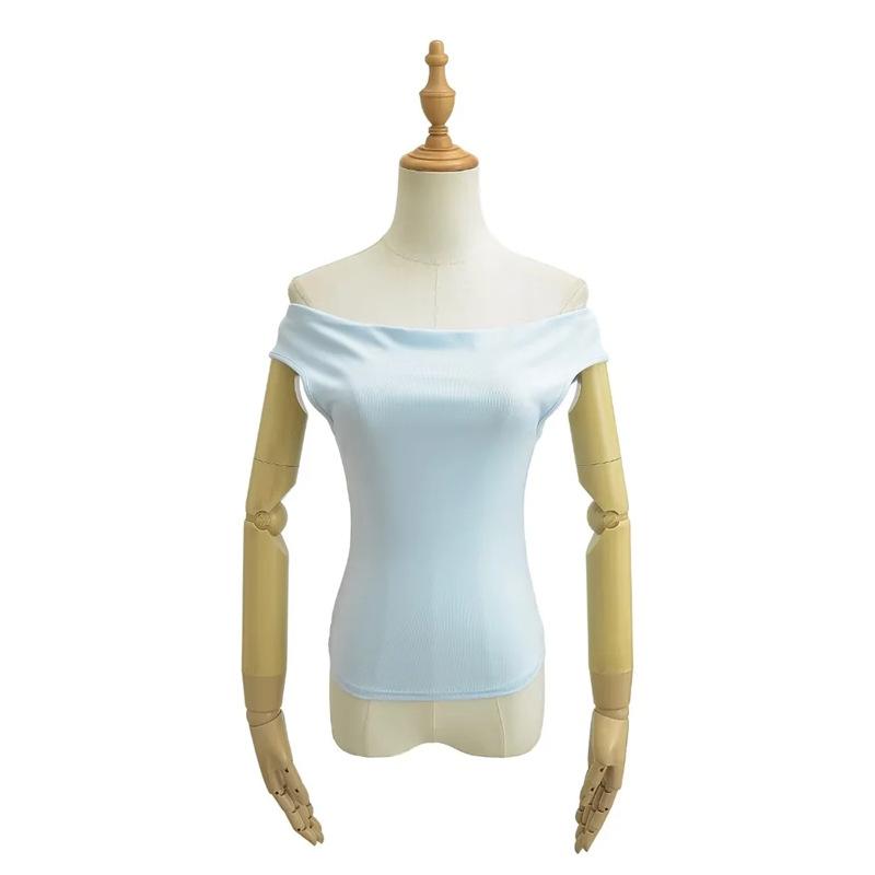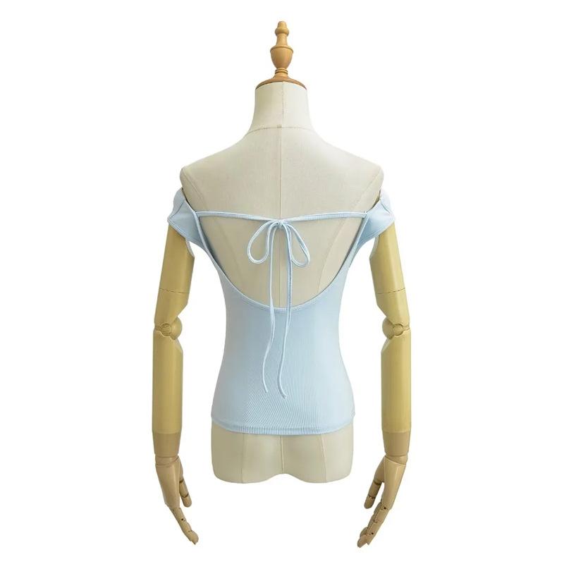 Playera de Hombro Descubierto Sexy Retro Francés de Manga Corta para Mujer con Encaje Puro en la Espalda y Top Corto con Cordones