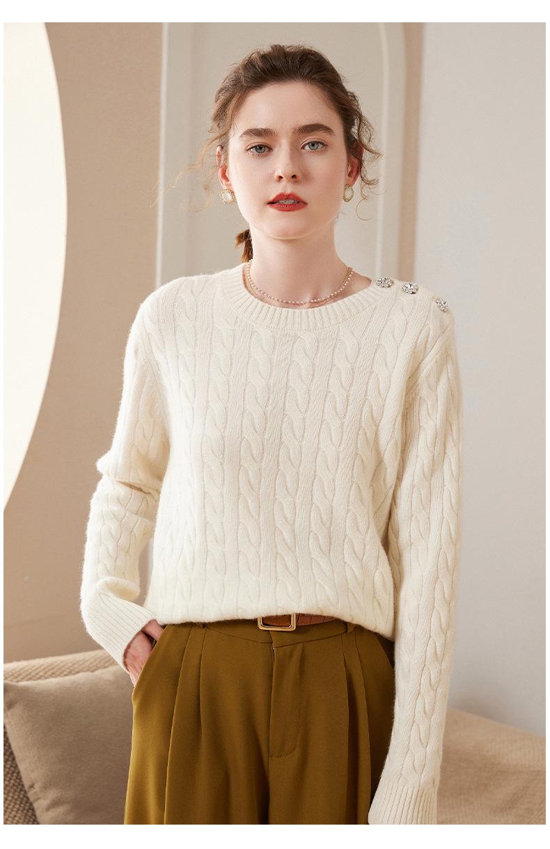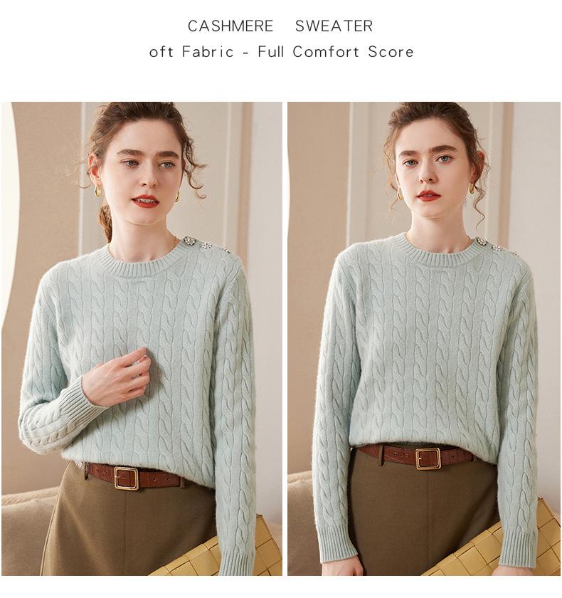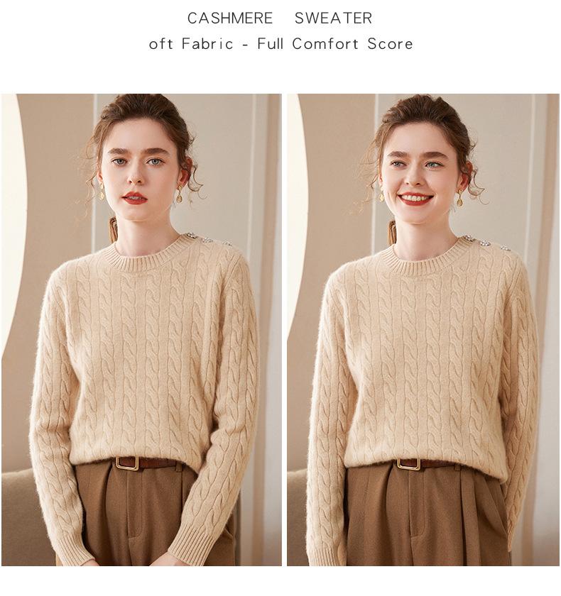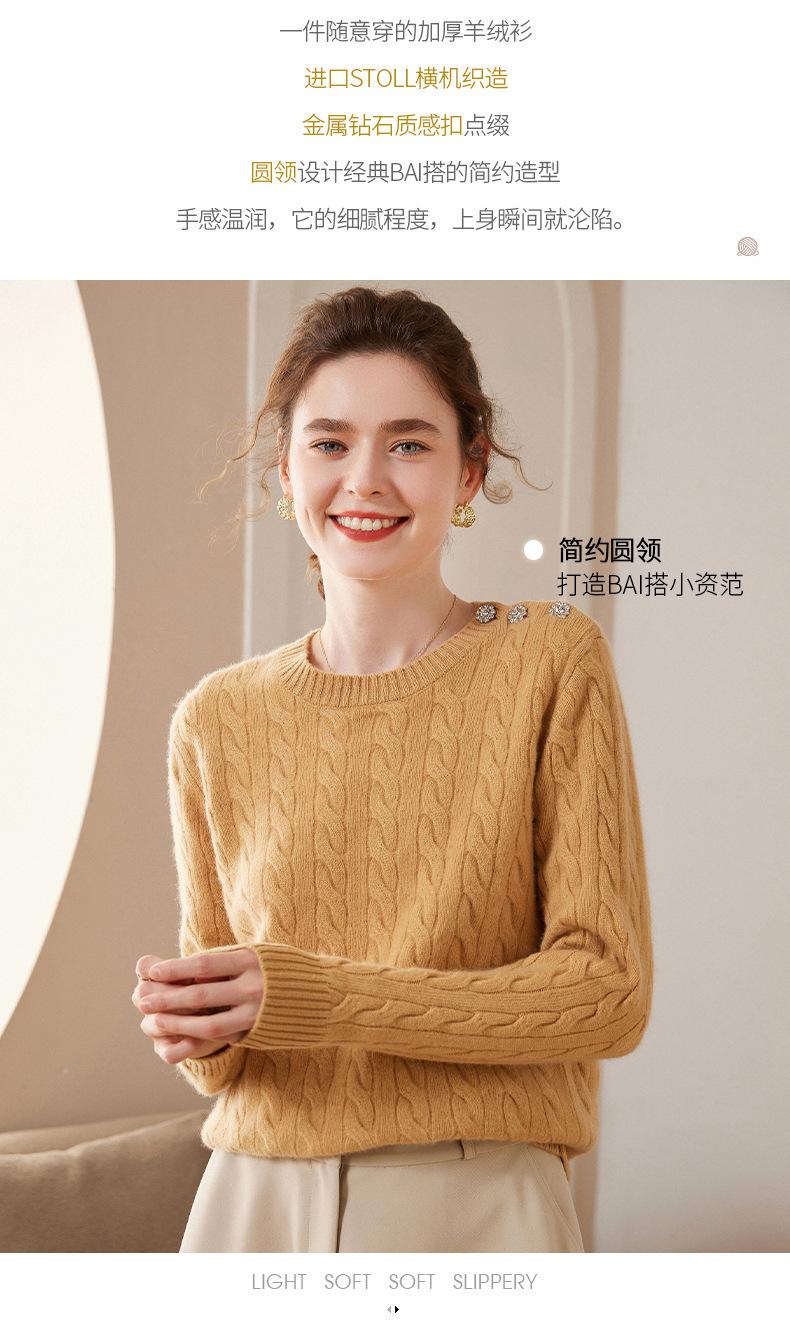 Otoño e Invierno Nuevo Suéter de Cachemira Grueso de Cuello Redondo para Mujer Suéter Cálido Casual Suelto para Mujer Talla Grande Combinable Camisa Básica de Punto