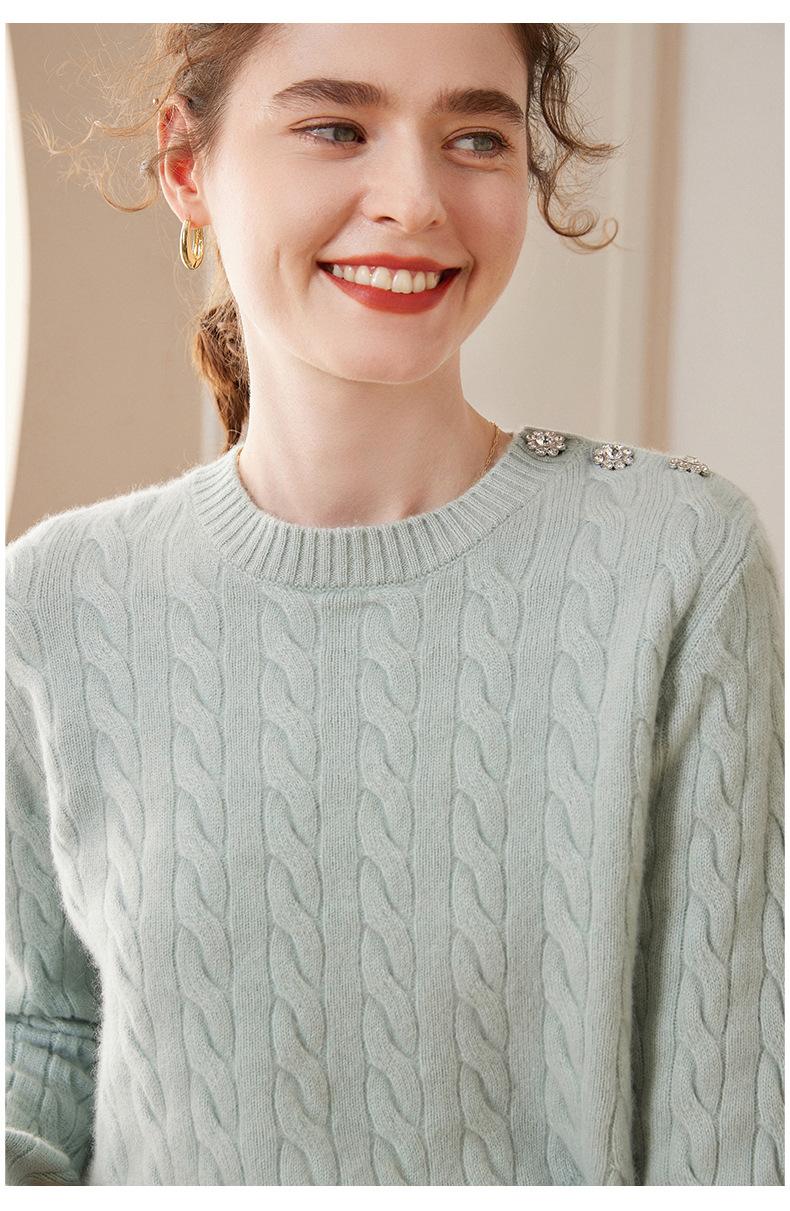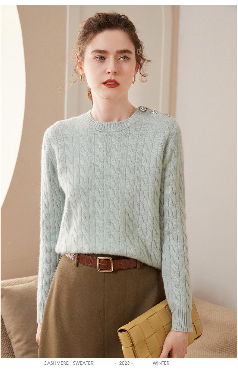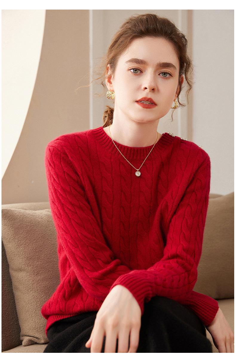 Otoño e Invierno Nuevo Suéter de Cachemira Grueso de Cuello Redondo para Mujer Suéter Cálido Casual Suelto para Mujer Talla Grande Combinable Camisa Básica de Punto