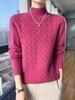 Otoño e invierno nuevo suéter jacquard de primera línea de cuello semi-alto para mujer, jersey holgado grueso de punto trenzado, camisa básica