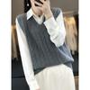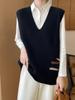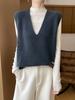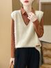 Otoño e Invierno Cuello en V Color Sólido Chaleco Exterior para Mujer Lana Pura Tejido Jersey Chaleco Apilado Moda Interior Chaleco