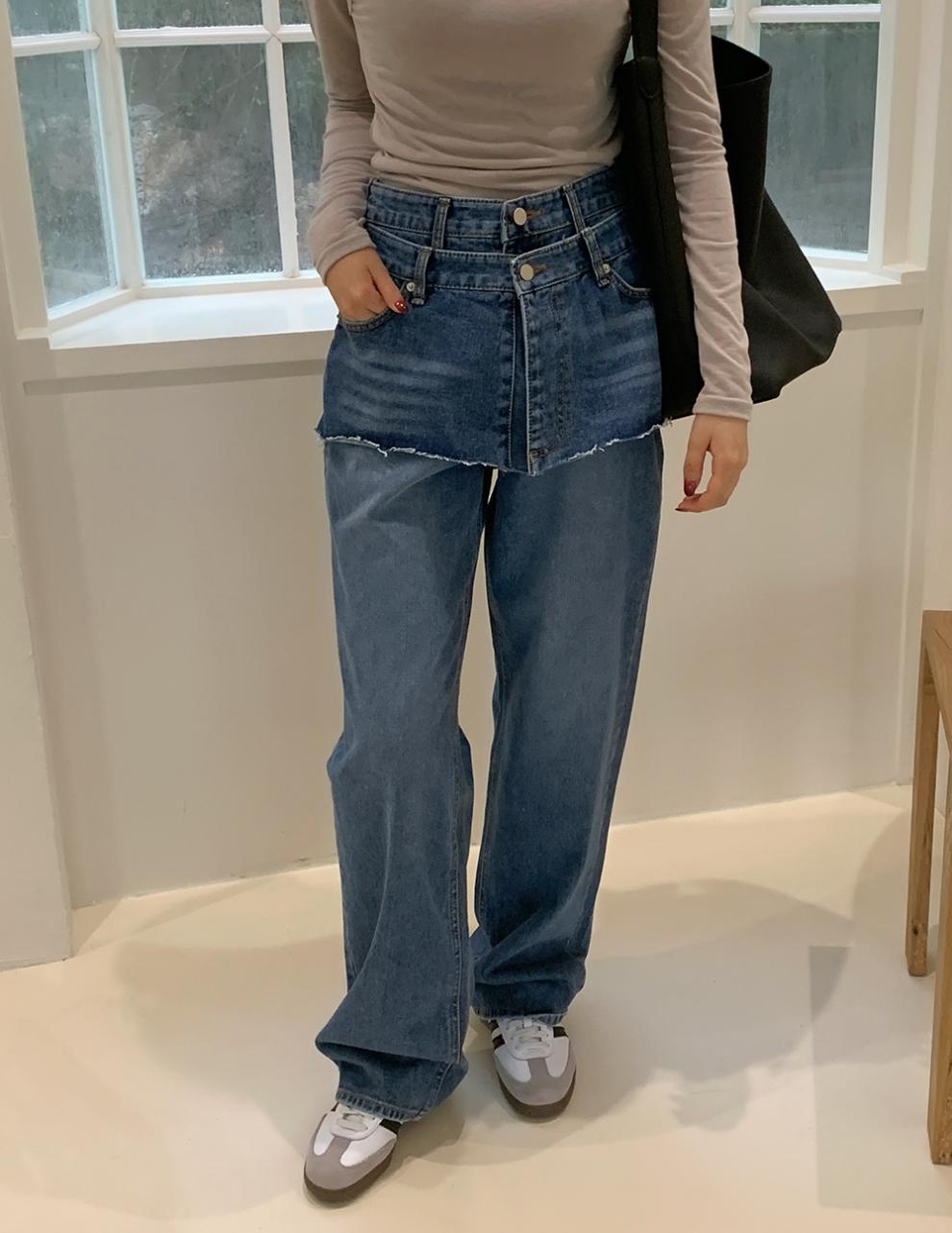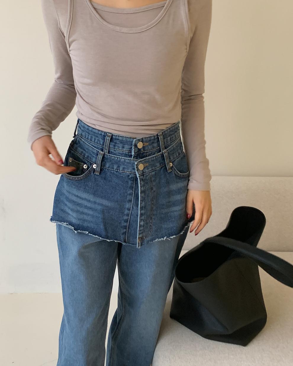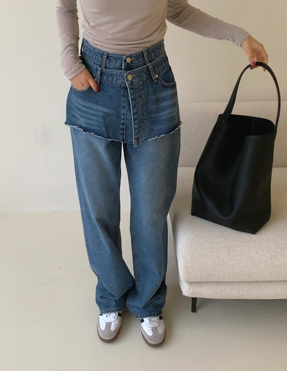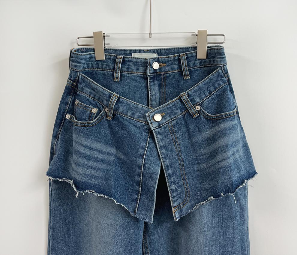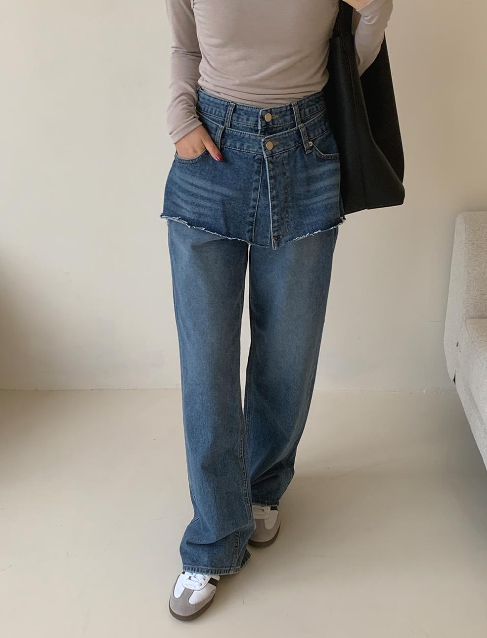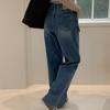 Pantalones vaqueros versátiles casuales de talle alto para mujer Dongdaemun de pierna ancha de dos piezas falsas