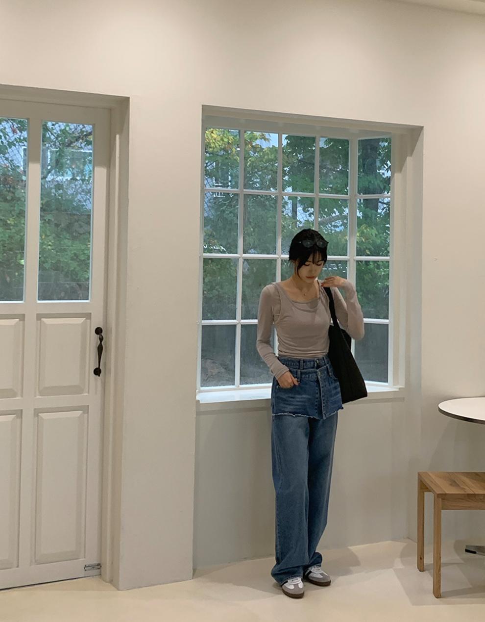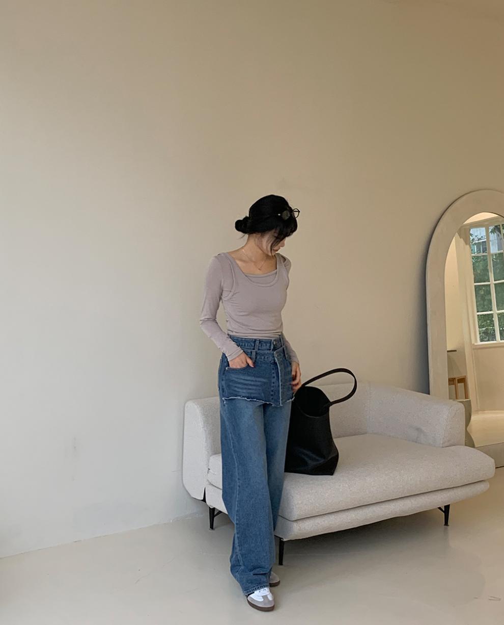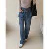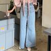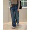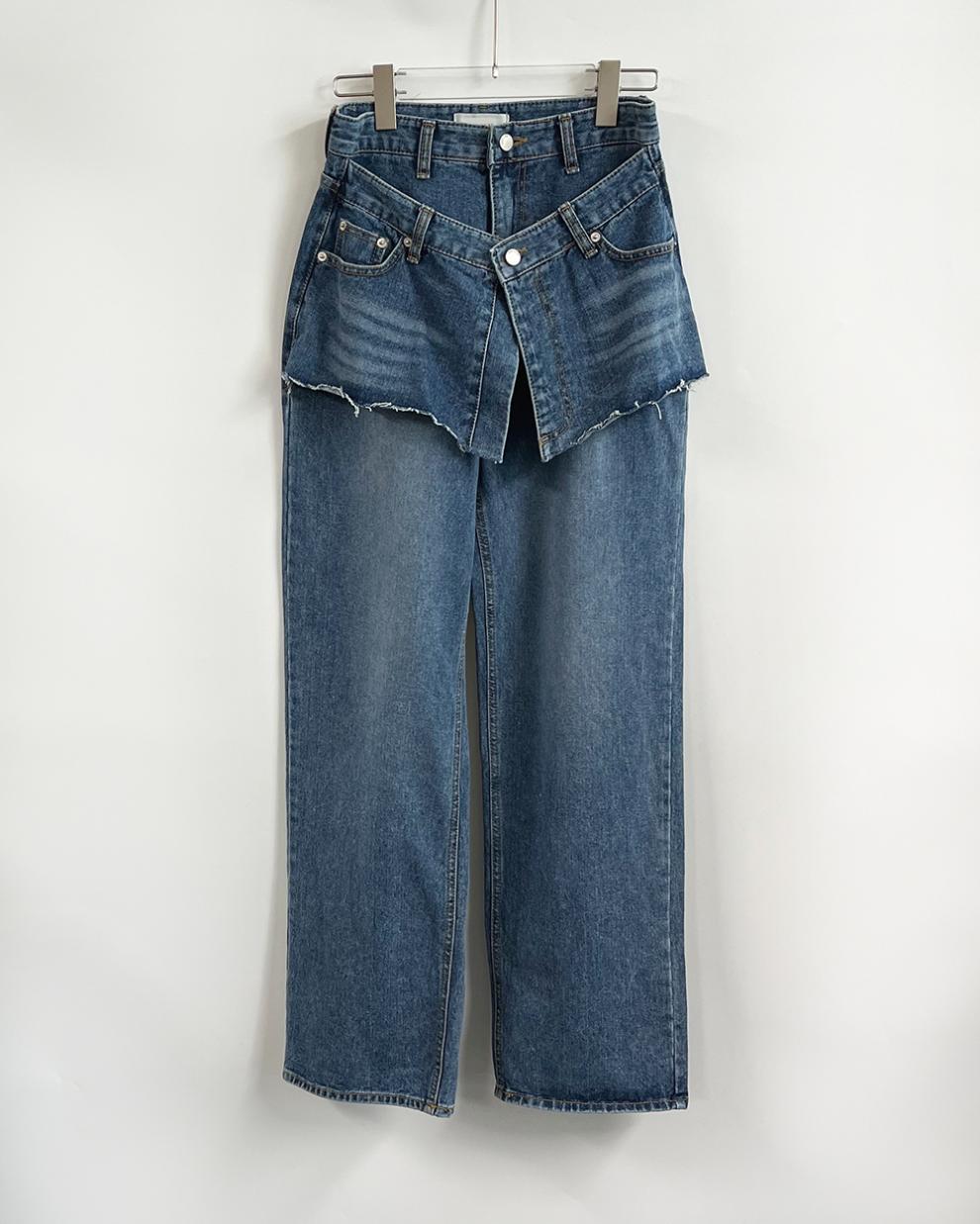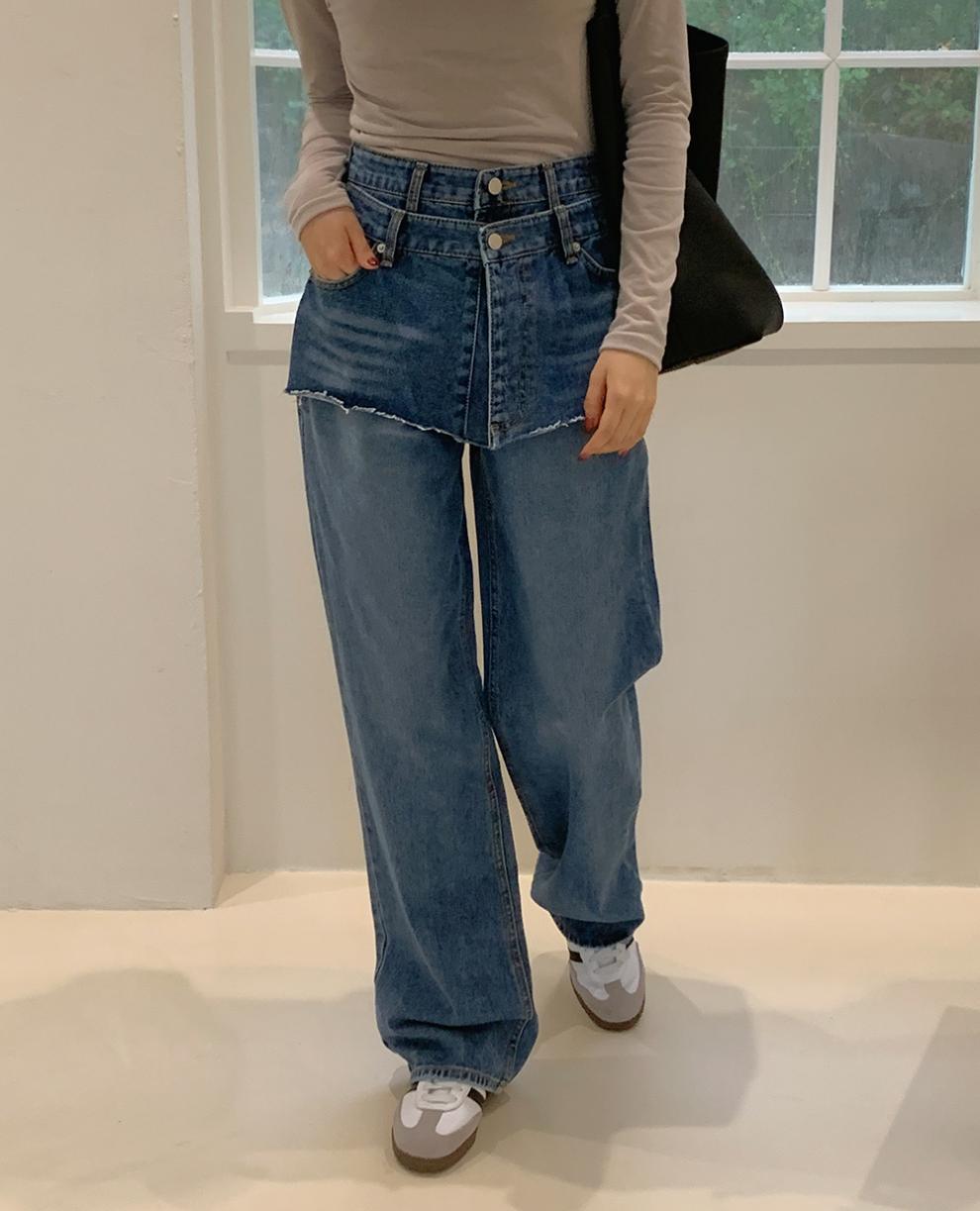 Pantalones vaqueros versátiles casuales de talle alto para mujer Dongdaemun de pierna ancha de dos piezas falsas