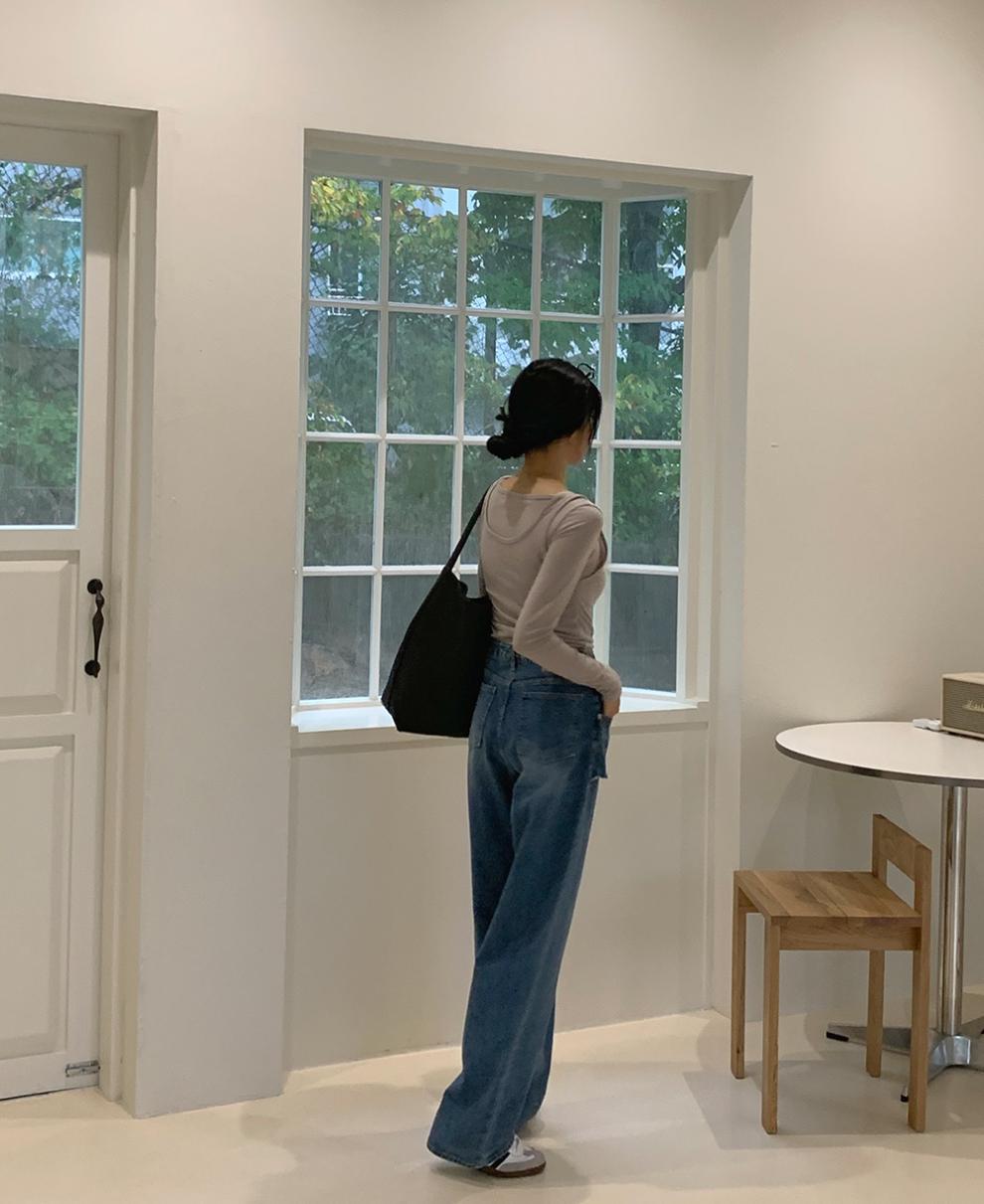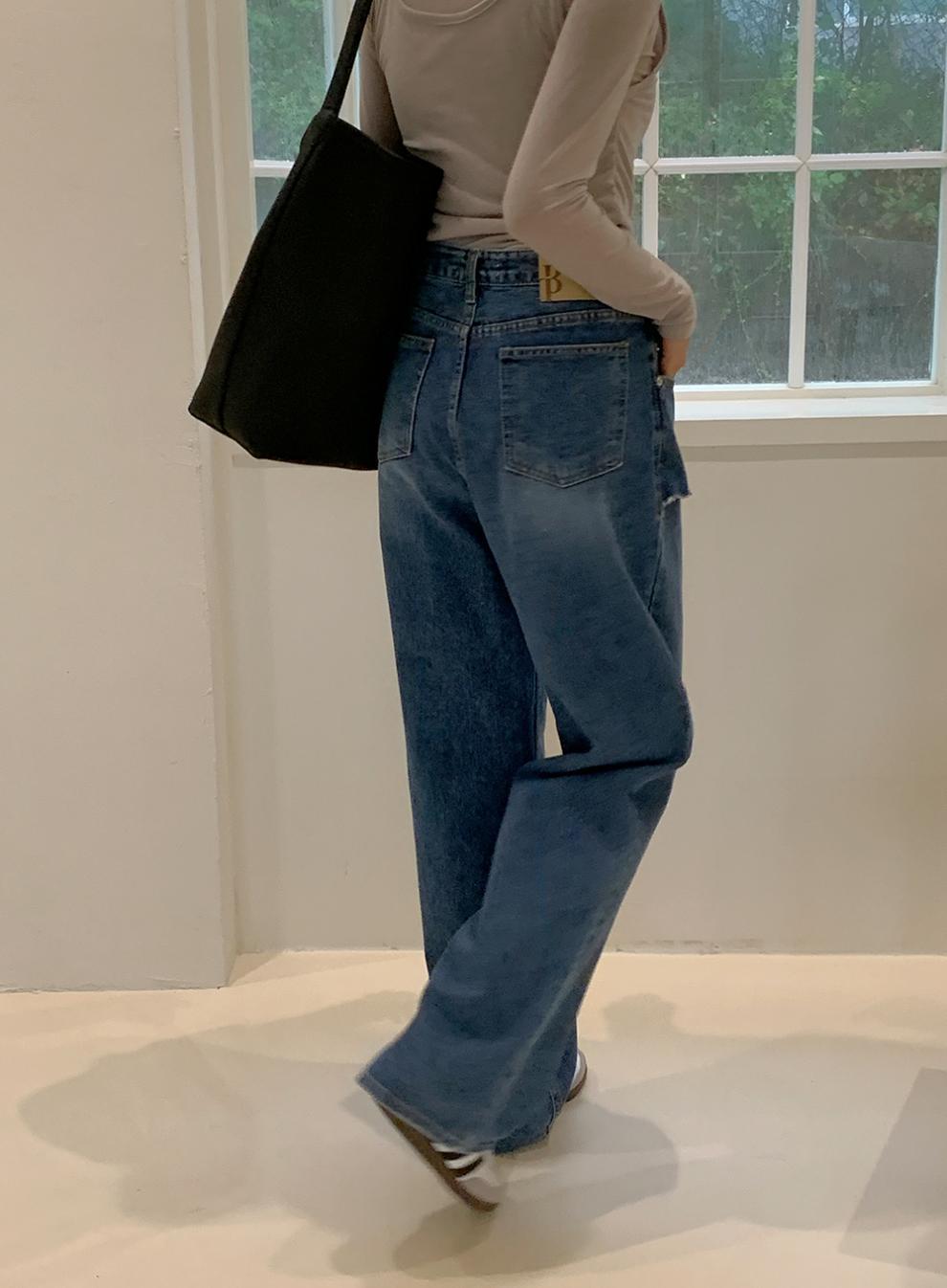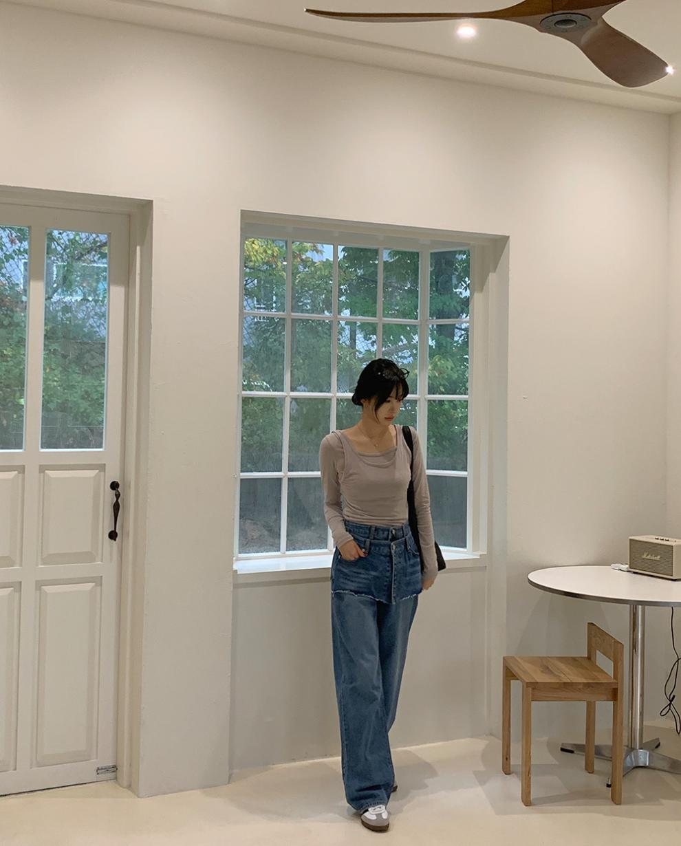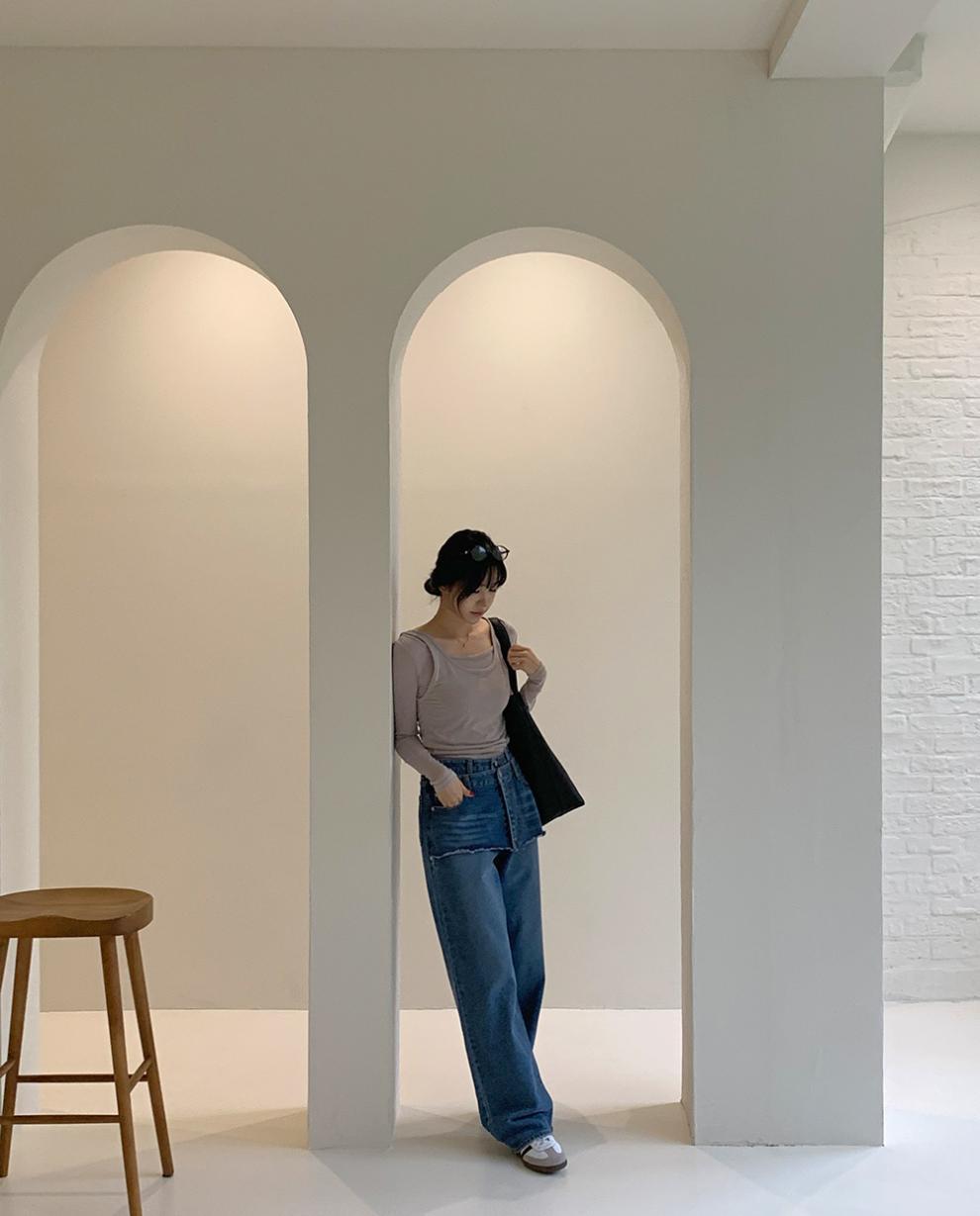 Pantalones vaqueros versátiles casuales de talle alto para mujer Dongdaemun de pierna ancha de dos piezas falsas
