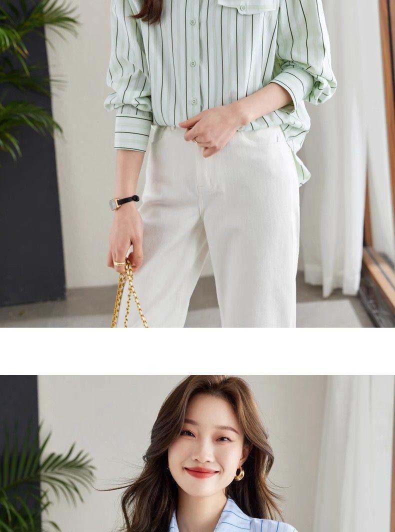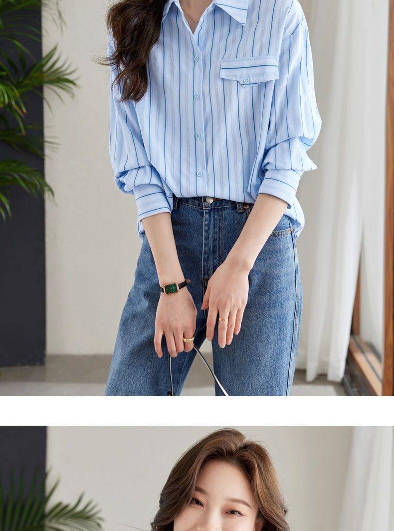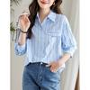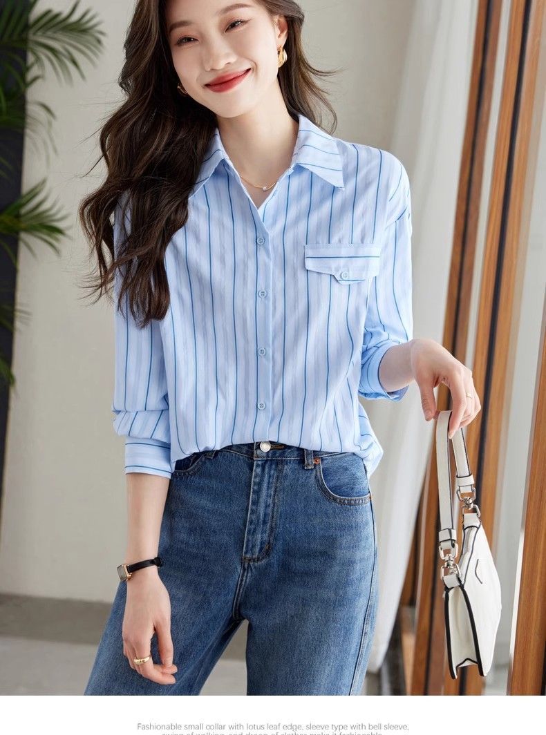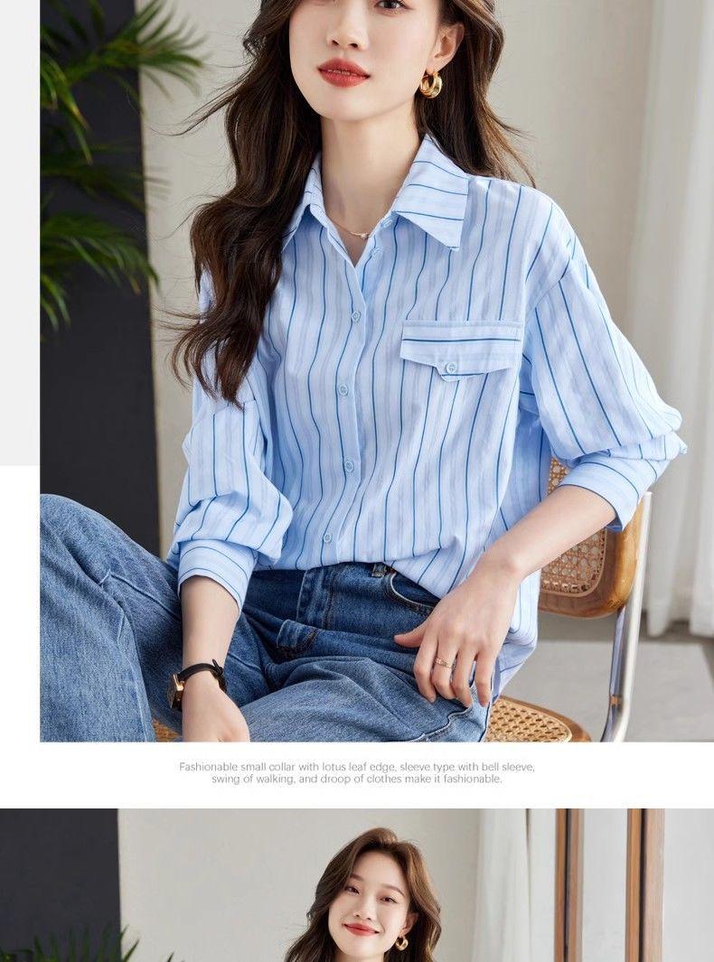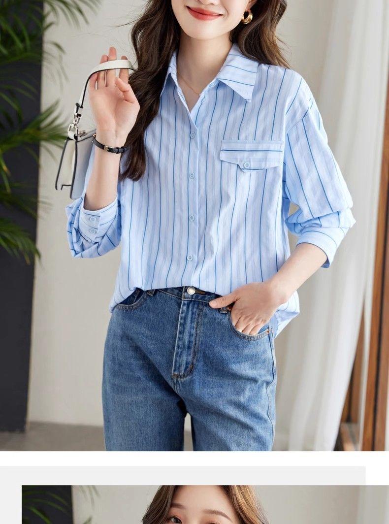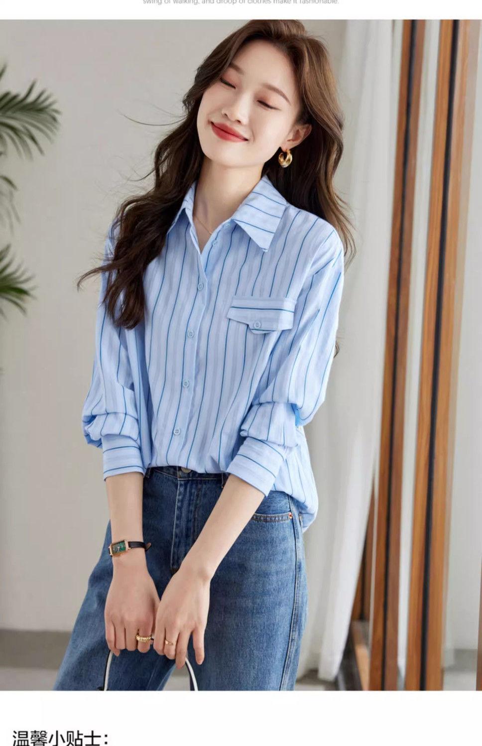 Camisa de diseño de manga larga a rayas 2024, nueva camisa de estilo occidental, holgada, informal y adelgazante.